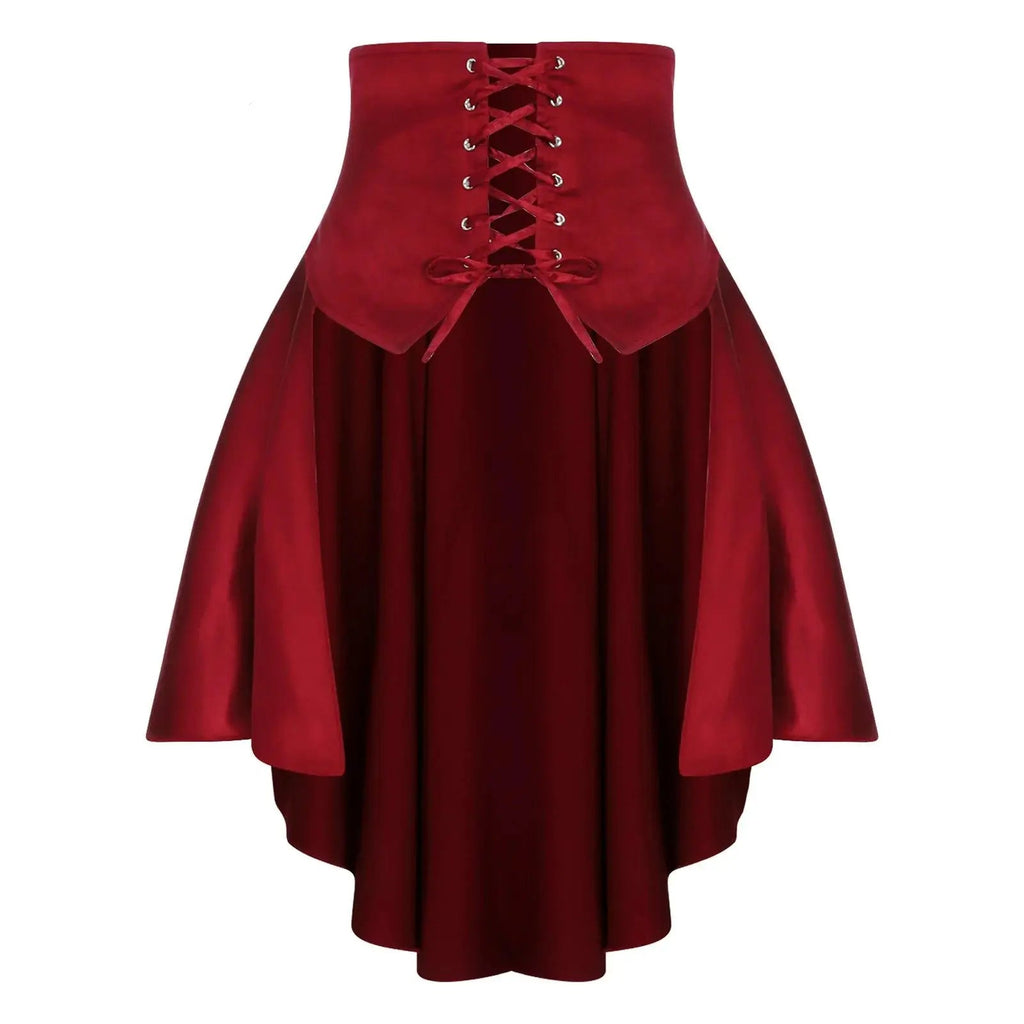 Gothic Steampunk Satiny Pirate Skirt Front Lace-up Tiered Irregular Hem Skirt Waist Belt Medieval Costume