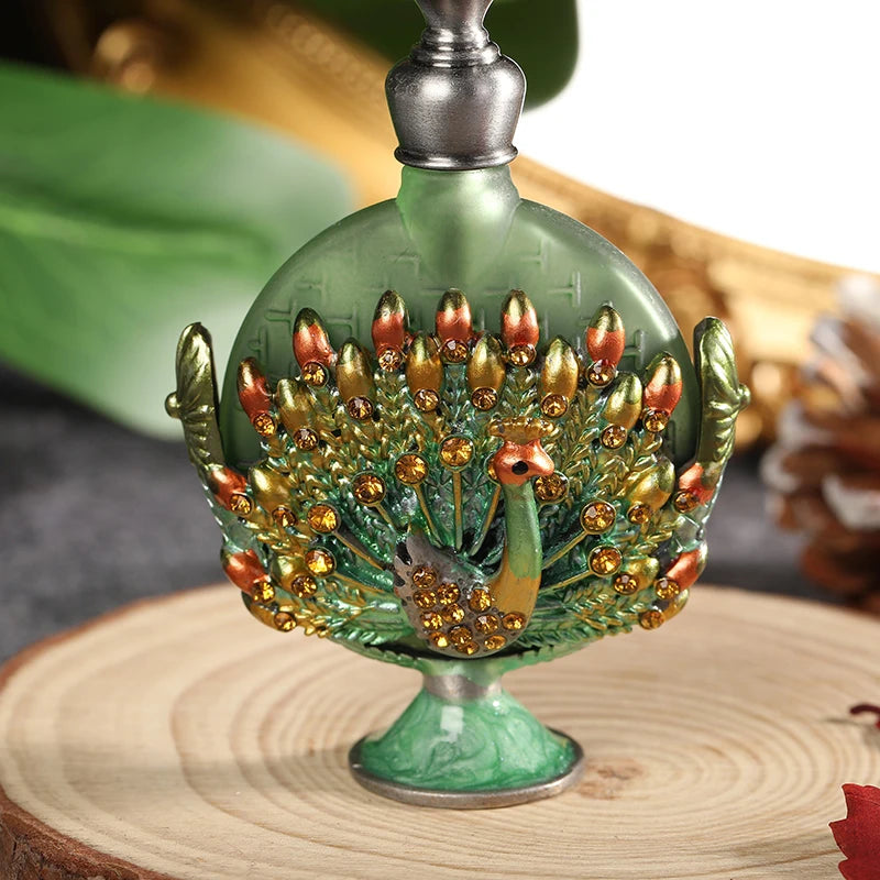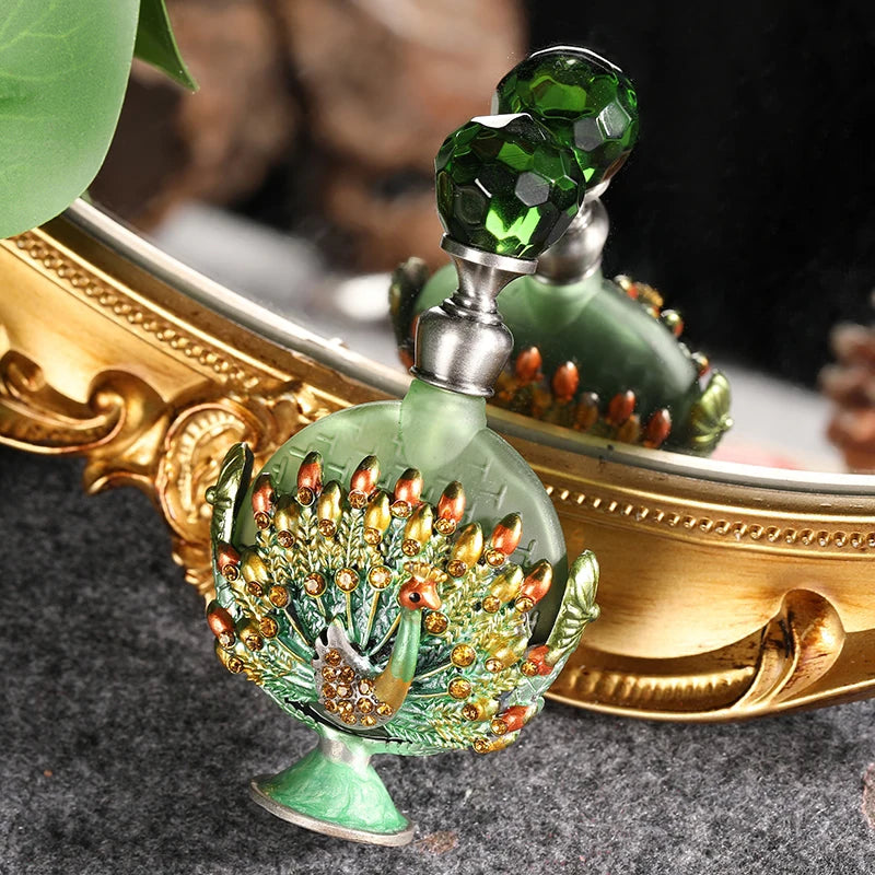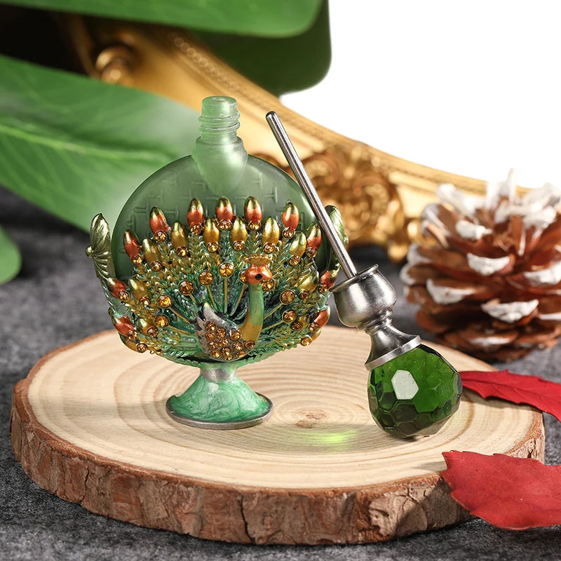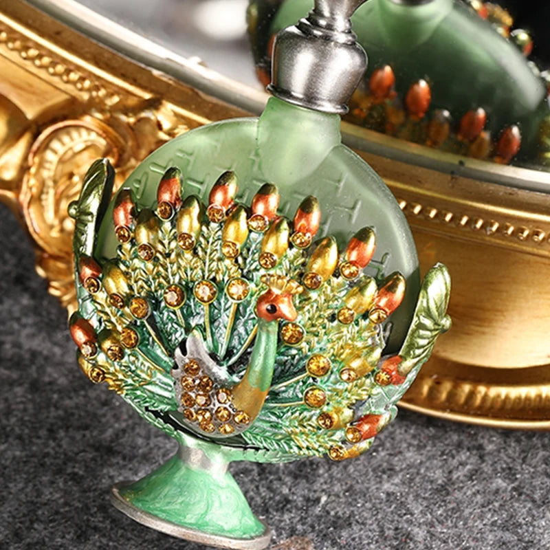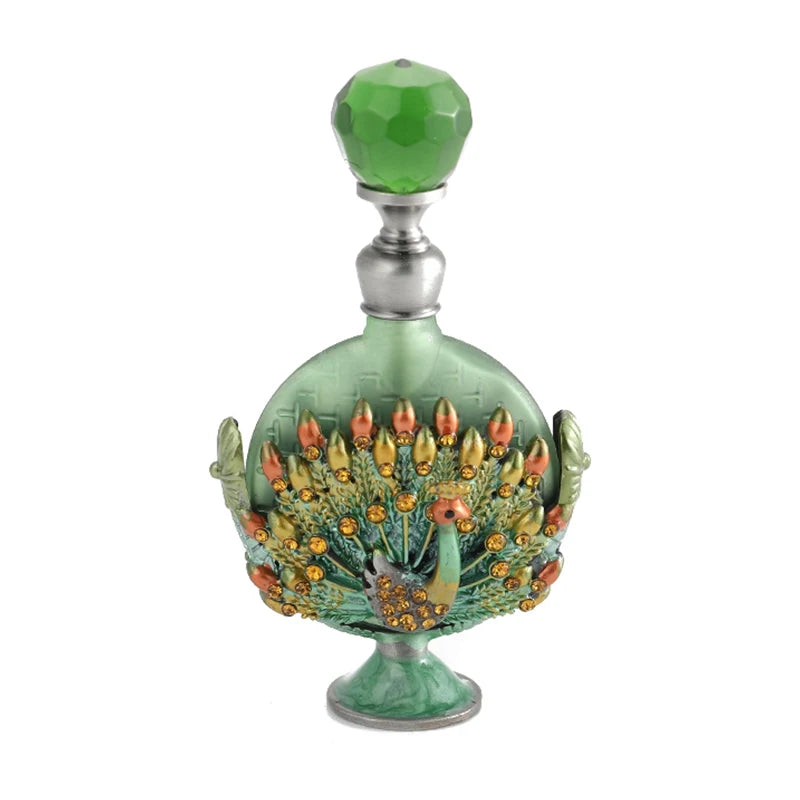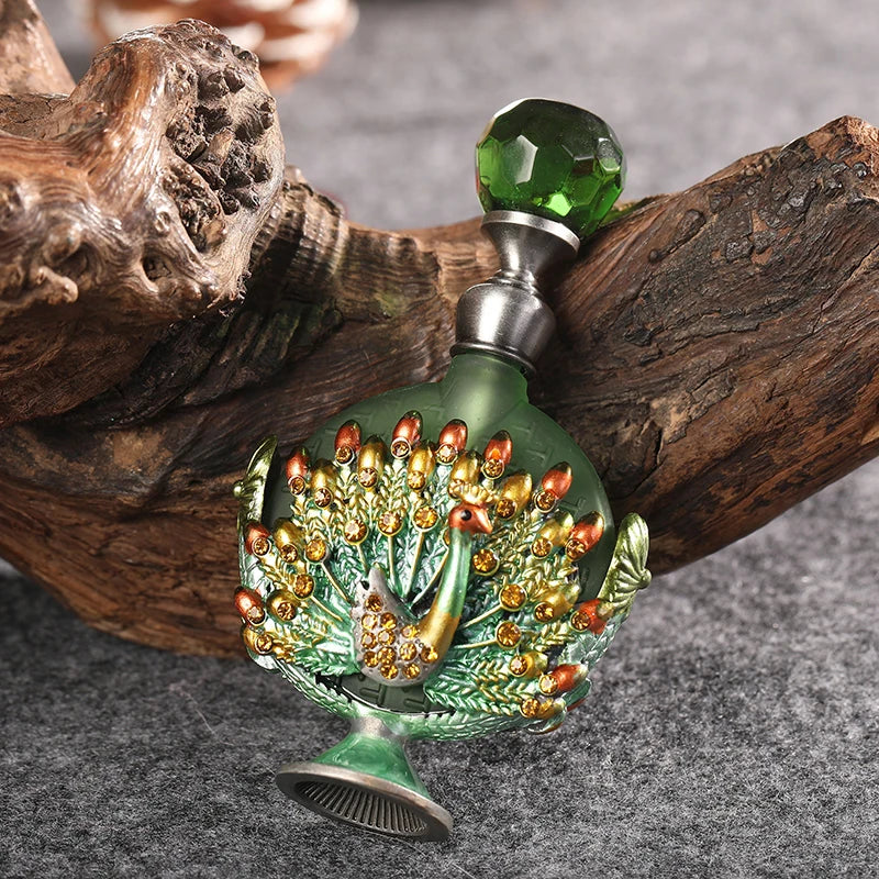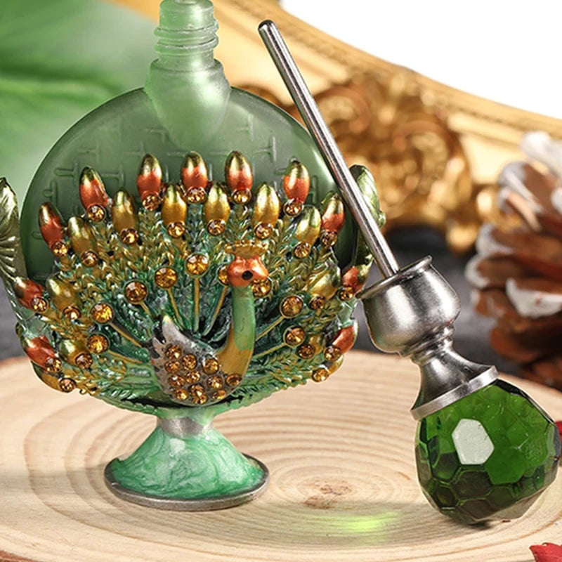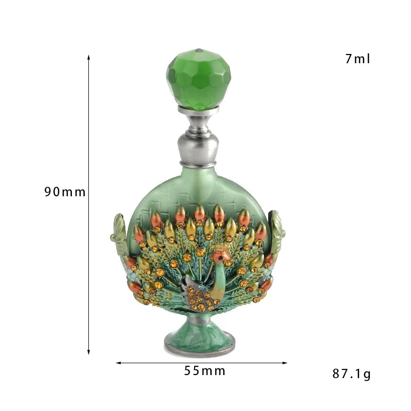 7ml Peacock Refillable Empty Perfume Bottle Metal Enamel Emerald Green Glass Cap Dripper