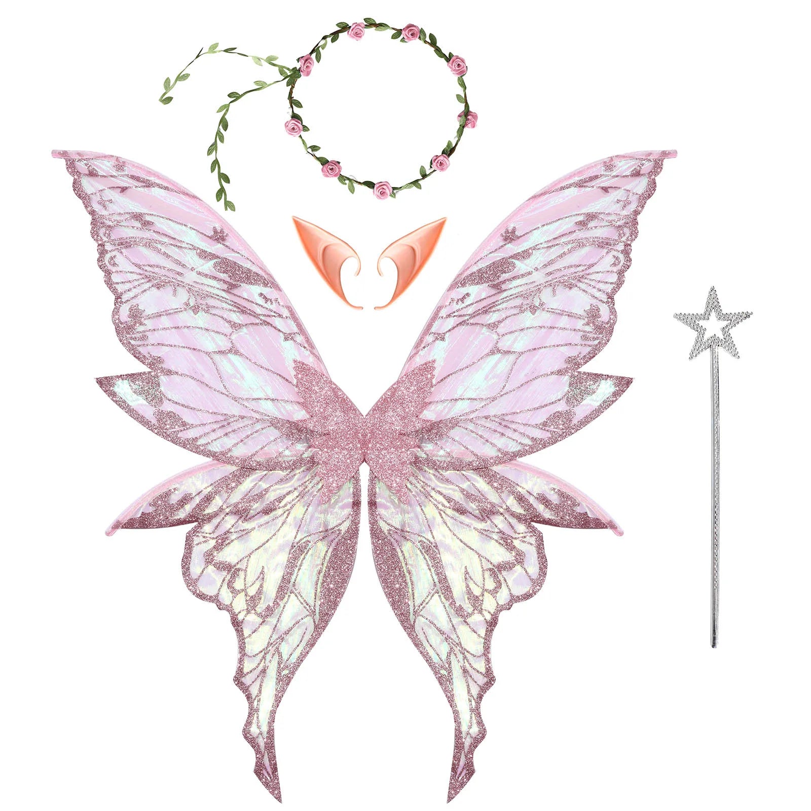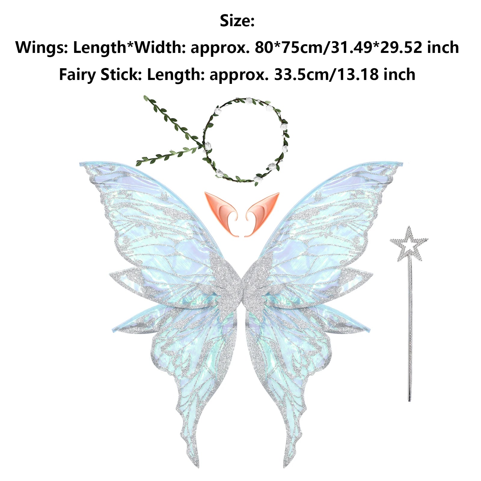 Set Includes: 1Pc Wings, 1Pair Elf Ears, 1Pc Fairy Stick, 1Pc Hair Garland
