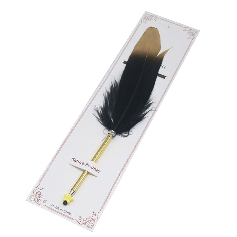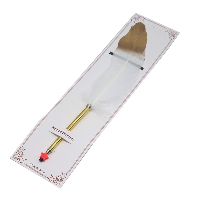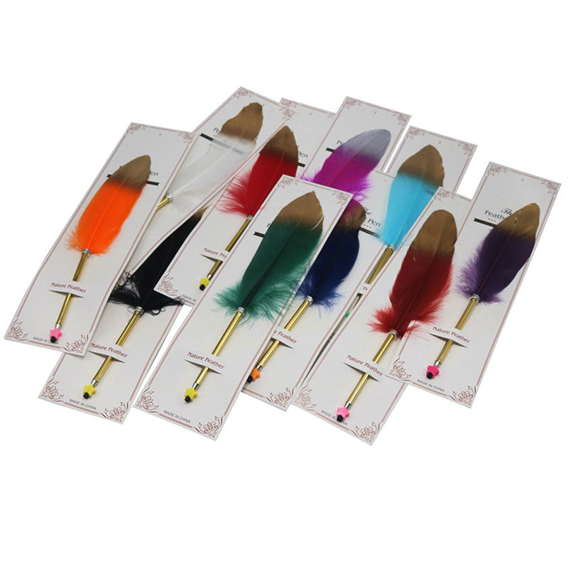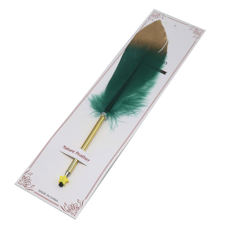 These pens are surprisingly made by pixie warriors! They usually make poisoned arrows out of the feathers they find in the woodlands, but they've gone and turned all PC, and have been signing treaties left, right and centre lately. So they've gone into the pen making business instead. Sigh. I was hoping for some poisoned arrows, but I got talked into trading for these pens instead. Want one?