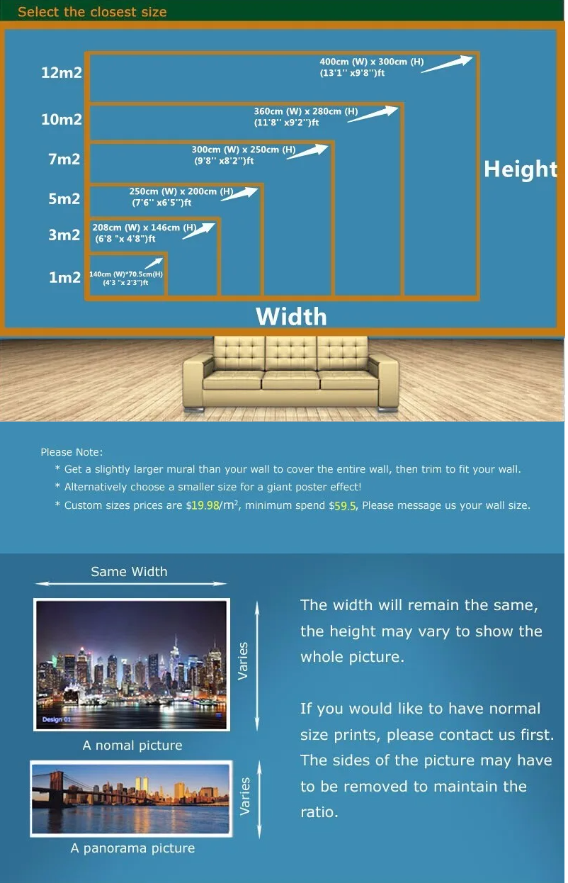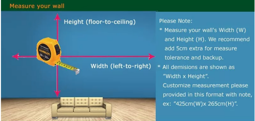 Quantity: 15 square meter= 500cm(W) x 300cm(H) (16'5'' x 9'10'') ft