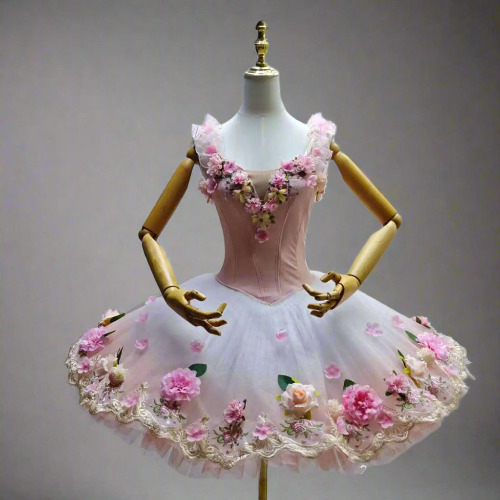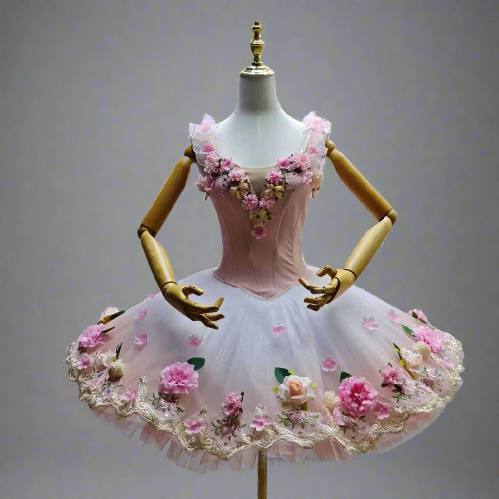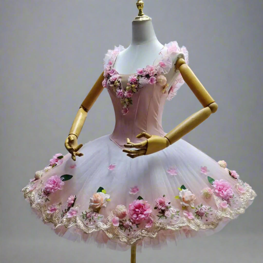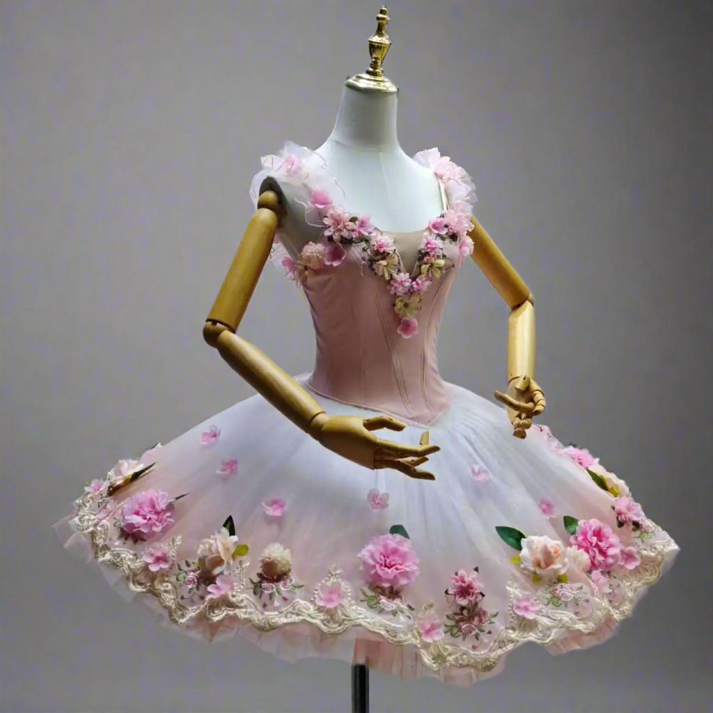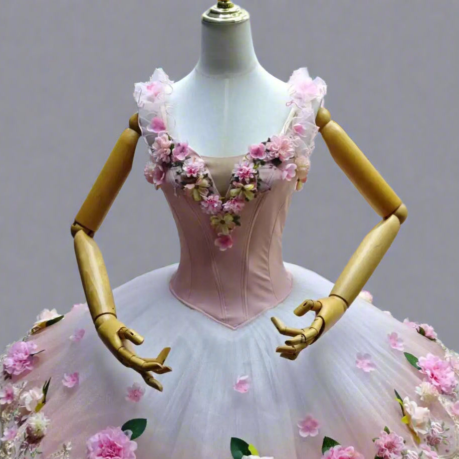 The skirt has 9 layers, and 3D decals and lace adornments.