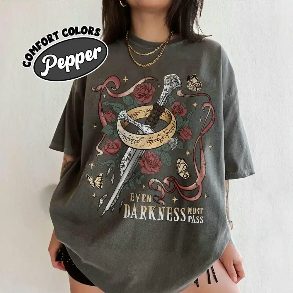 LOTR Even Darkness Must Pass 2 Sided Print T-Shirt Unisex Cotton Tee