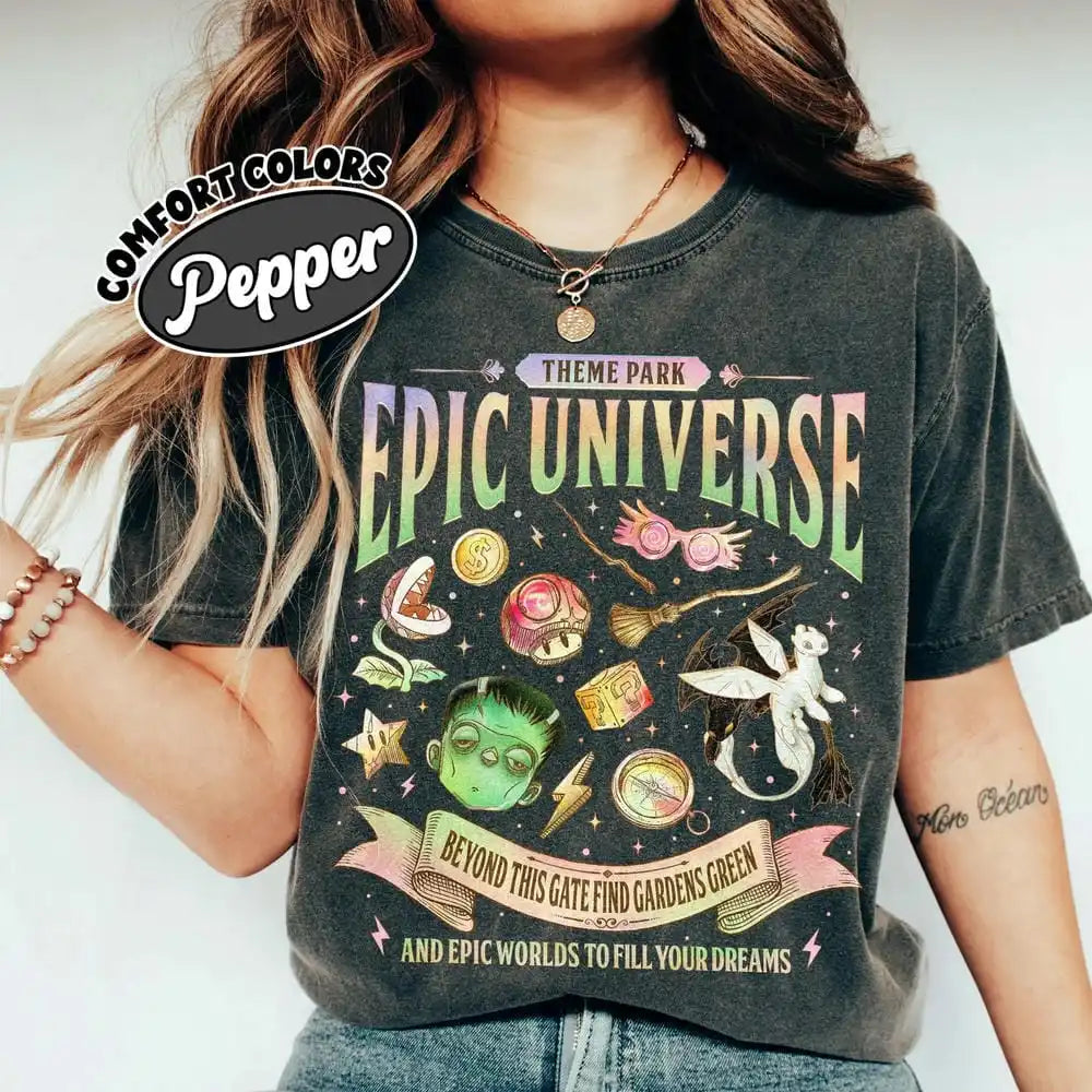 Epic Universe Unisex Tee Cotton T-Shirt Fantasy Family Theme Park Trip Orlando Park