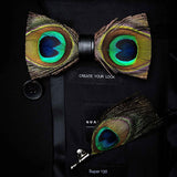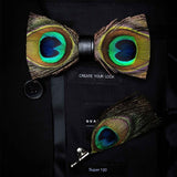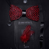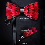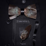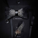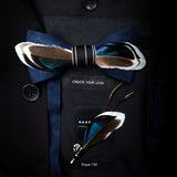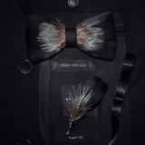 Natural Feather Handmade Bow Tie & Lapel Pin Gift Box Set For Men