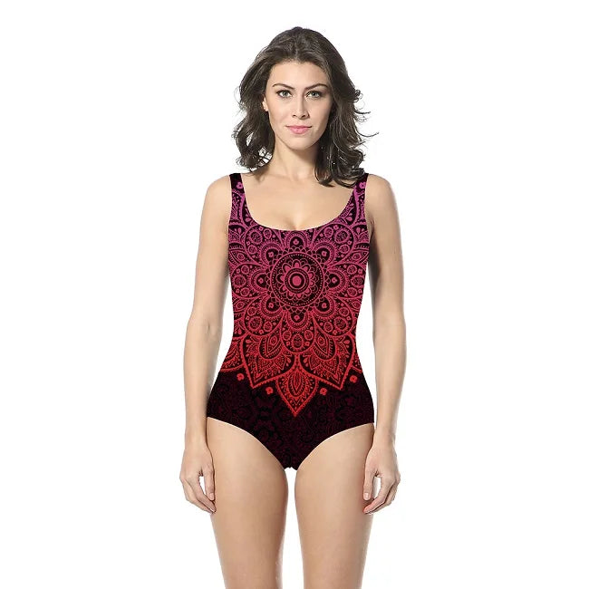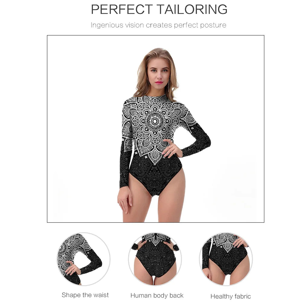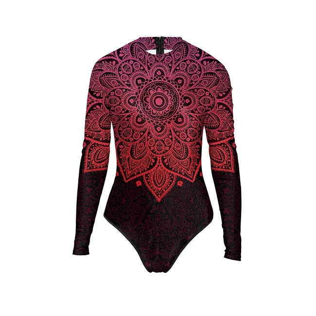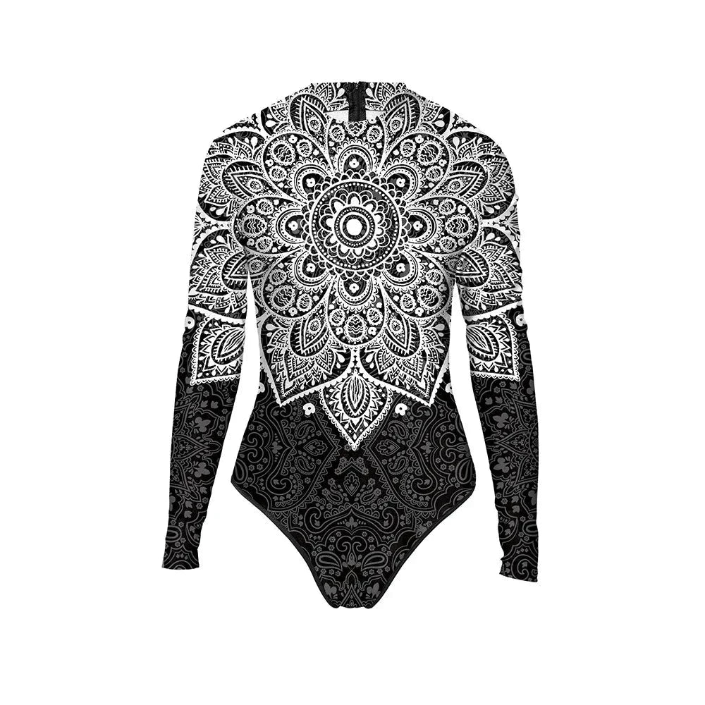 Mandala Printed Long Sleeve Swimwear One-piece Surfing Swimsuit