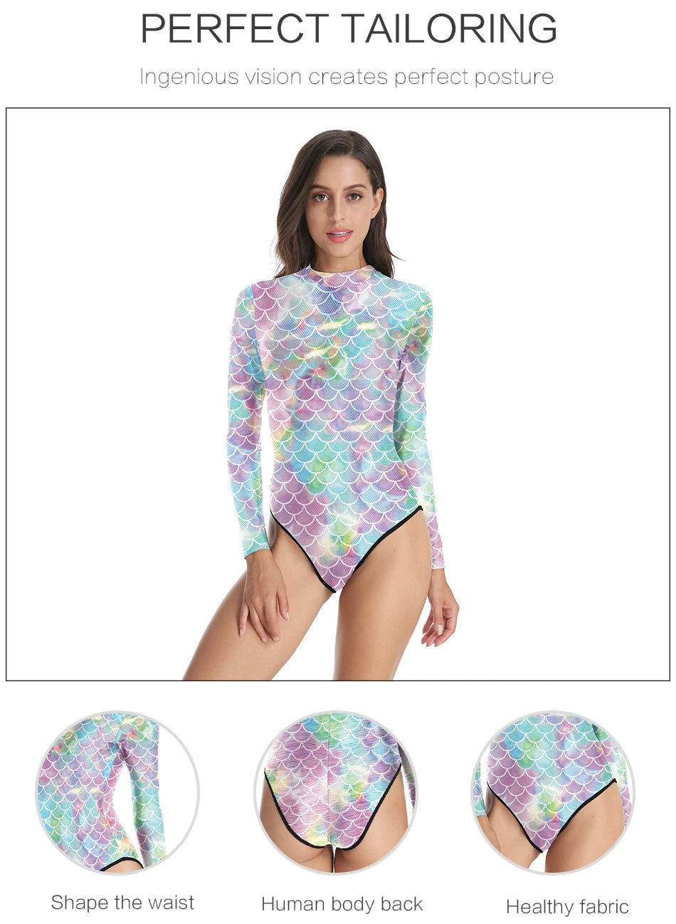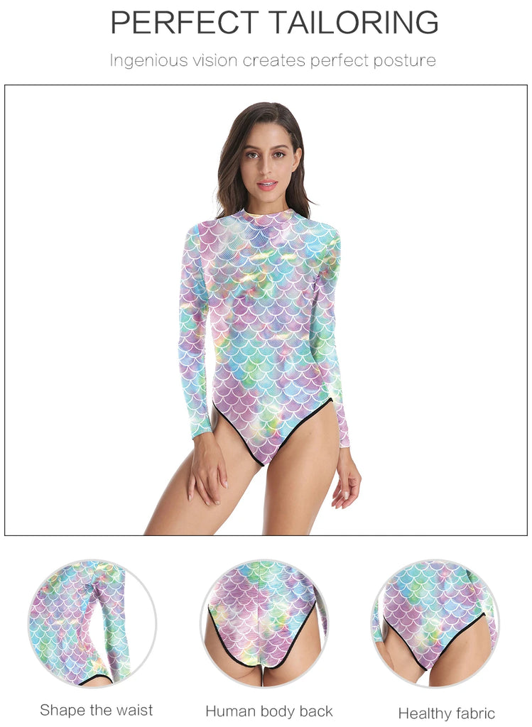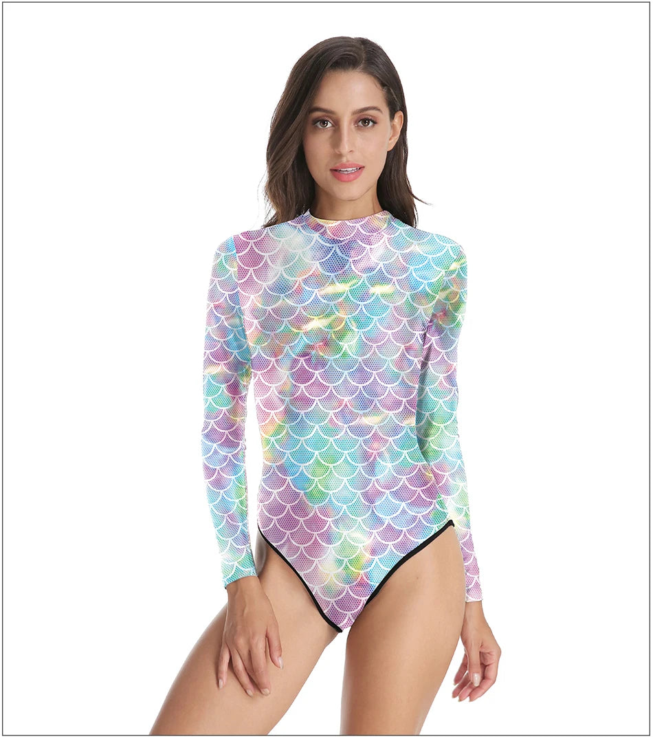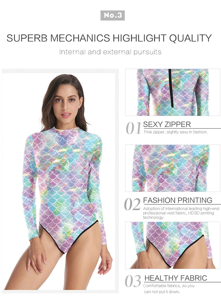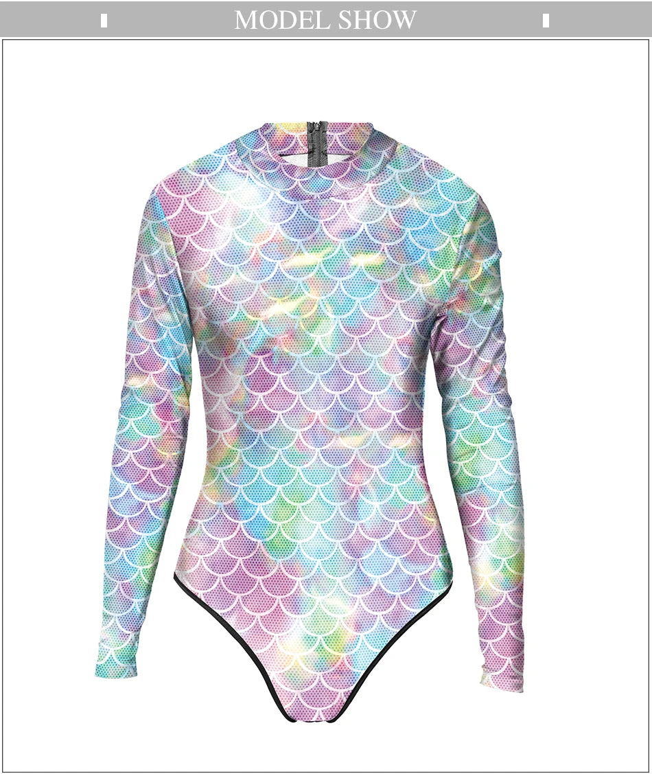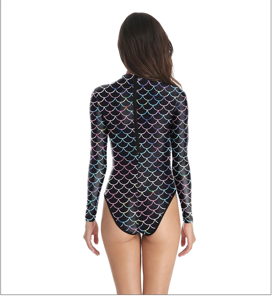Mermaid Scales Printed Long Sleeve Swimwear One-piece Surfing Swimsuit