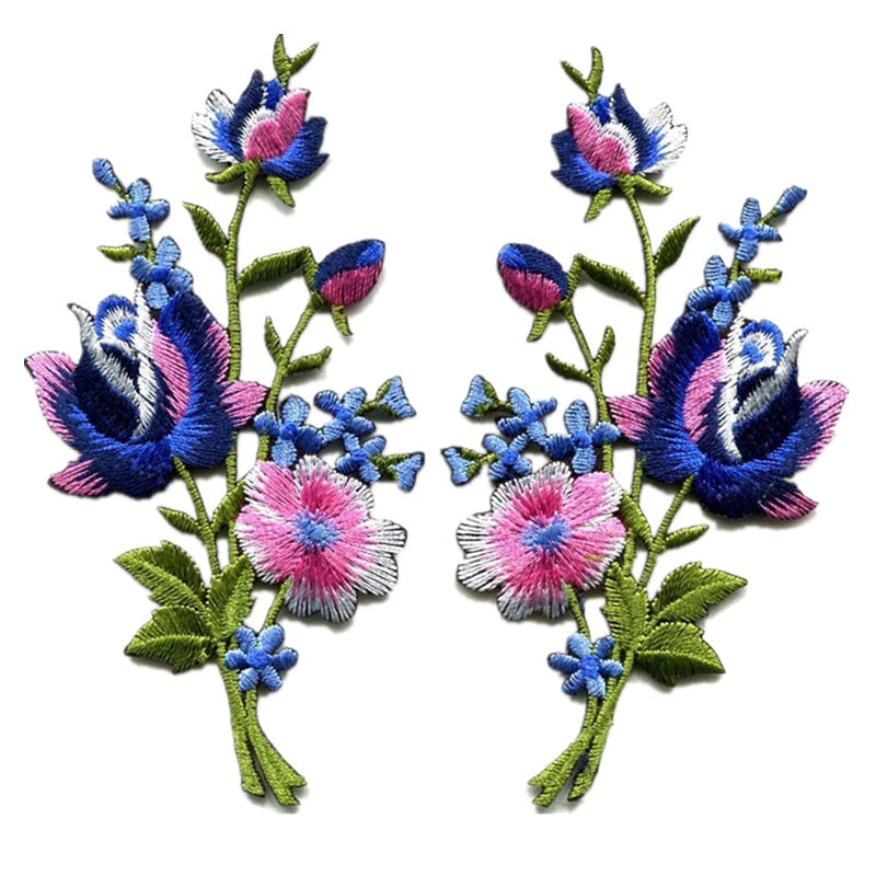2PCS Flowers Embroidery Appliqués Patches Sew Iron On DIY Craft