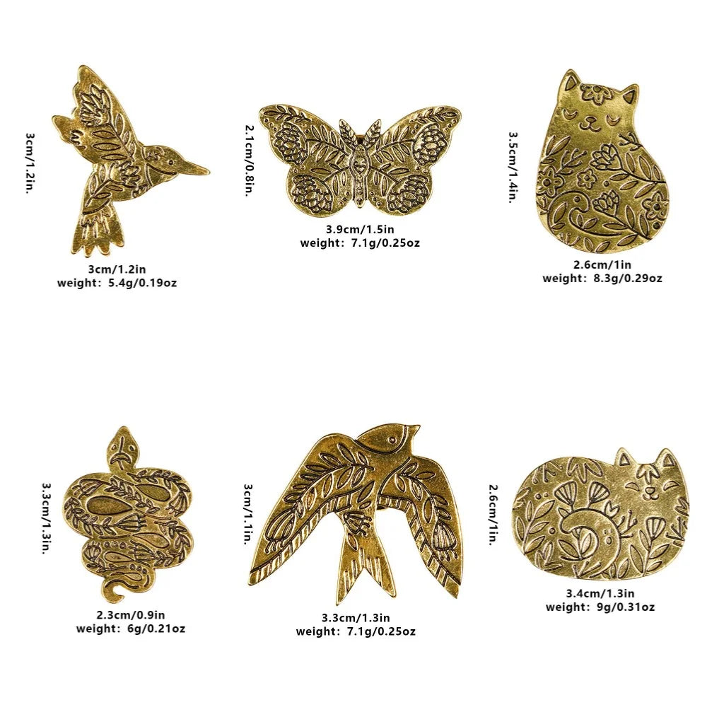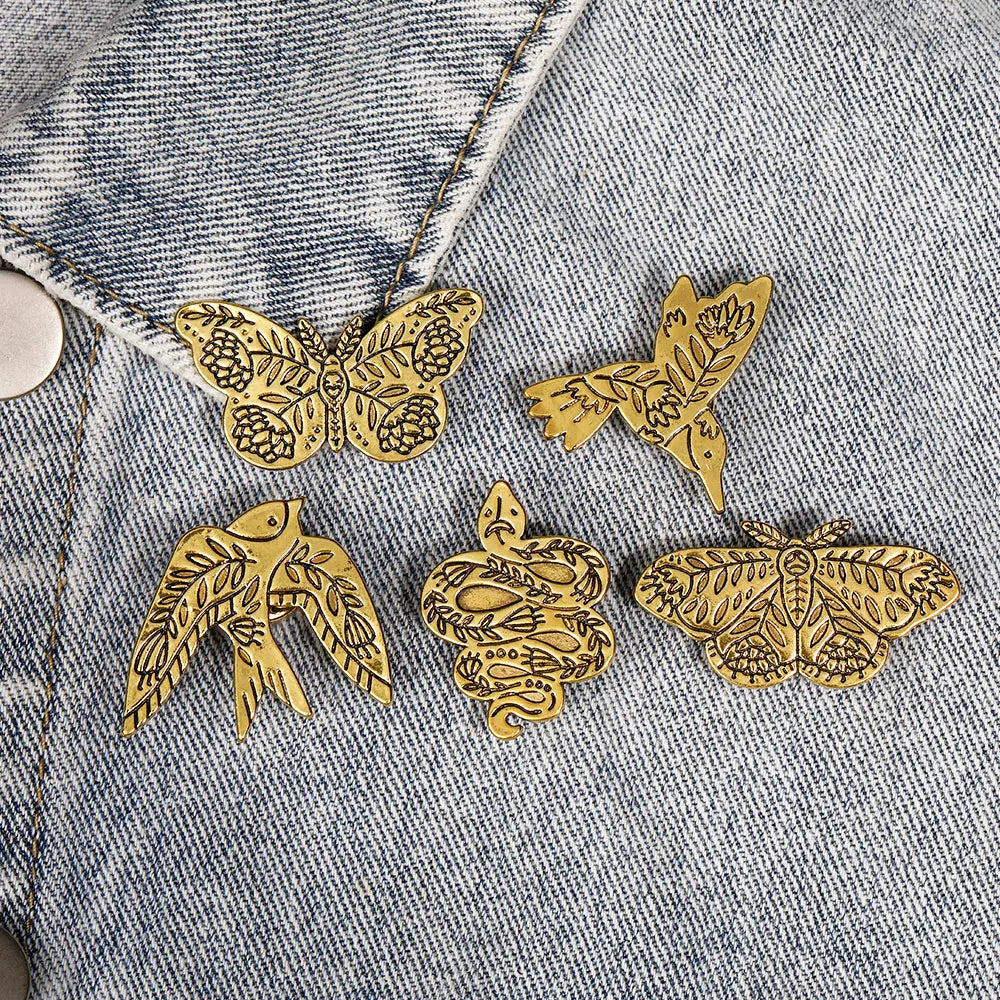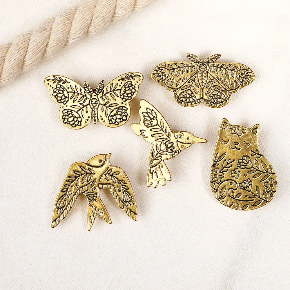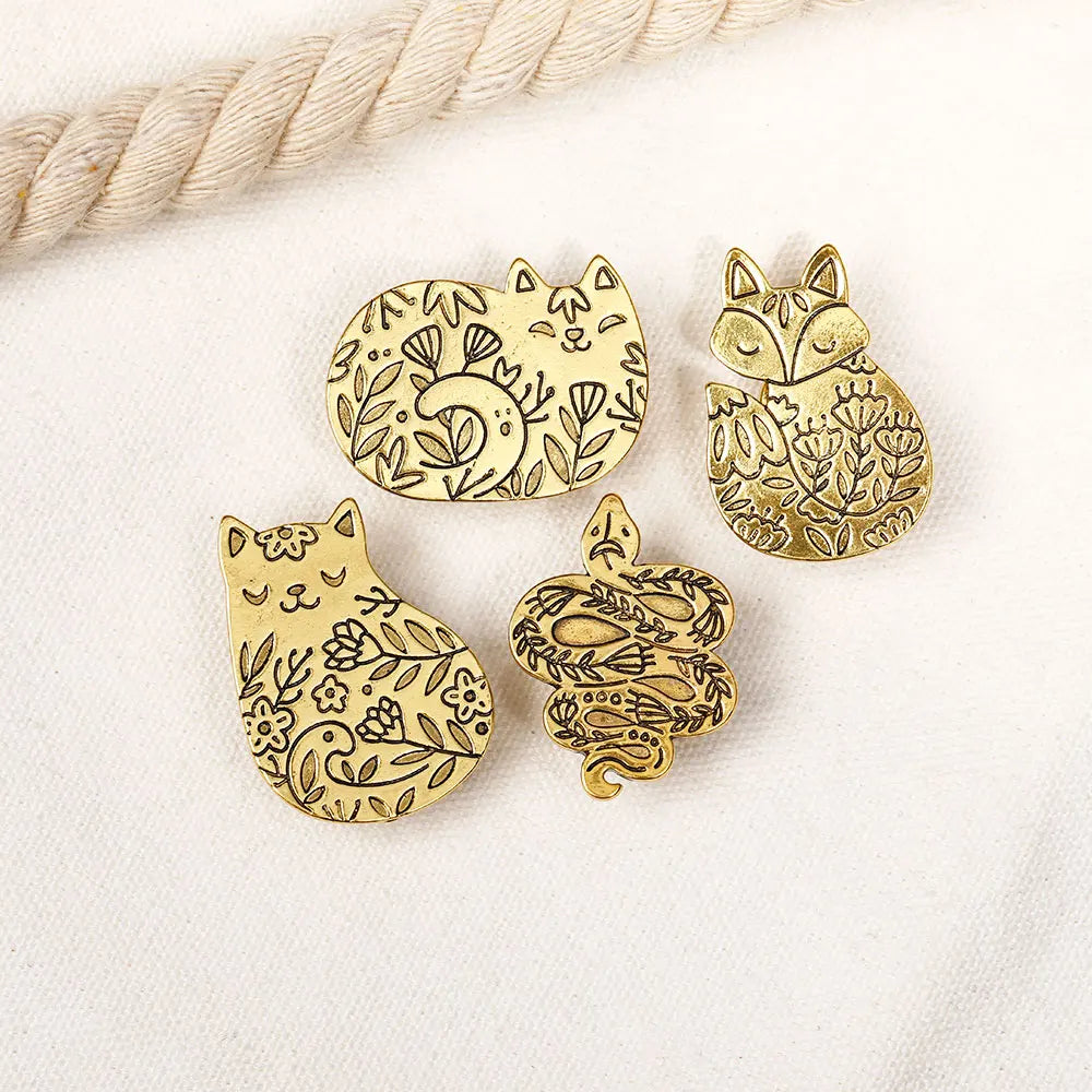 Golden Garden Animals Collection Lapel Pins Butterfly Swallow Bird Fox Cat Snake Brooches For Nature Lovers
