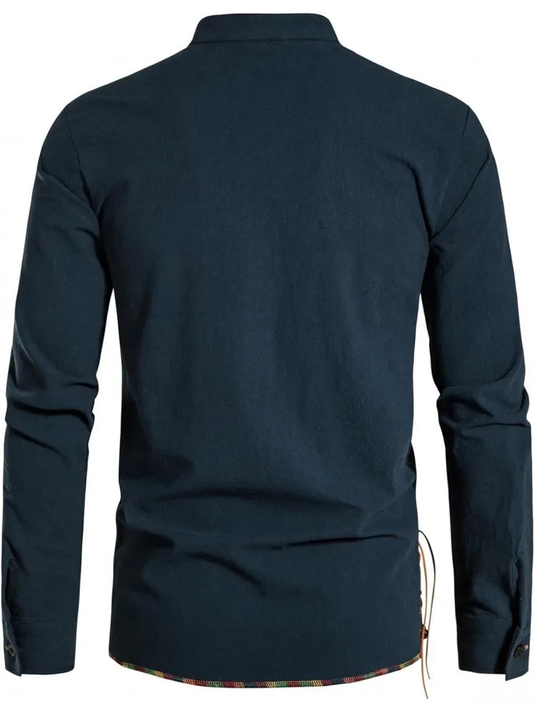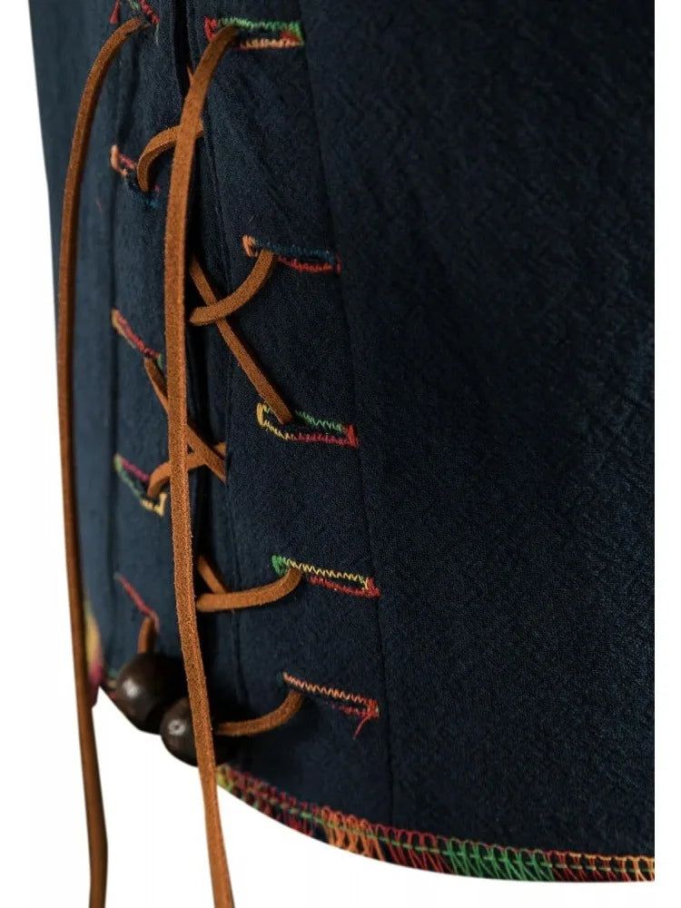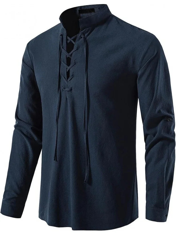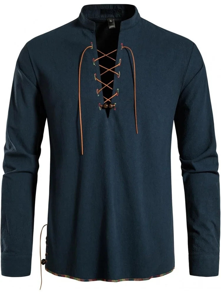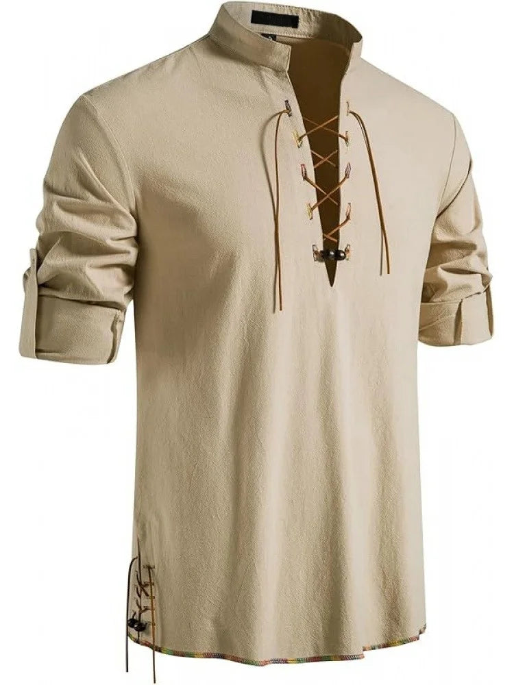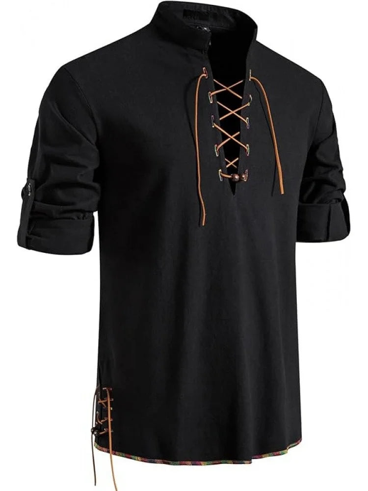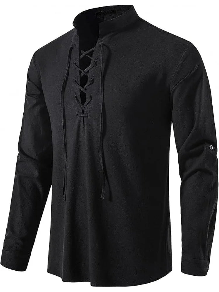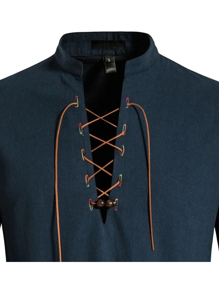 Men's Pure Cotton Medieval Lace Up Shirts Renaissance Pirate Viking T-shirt