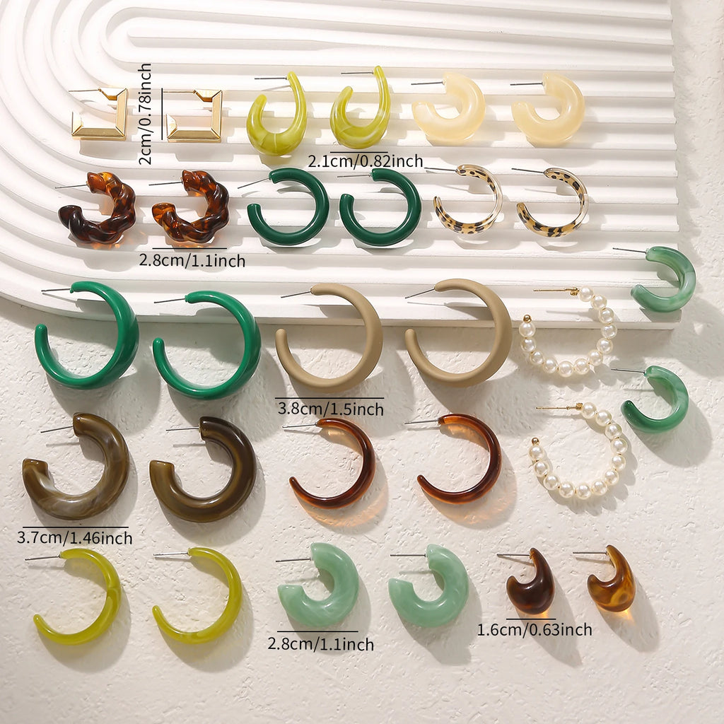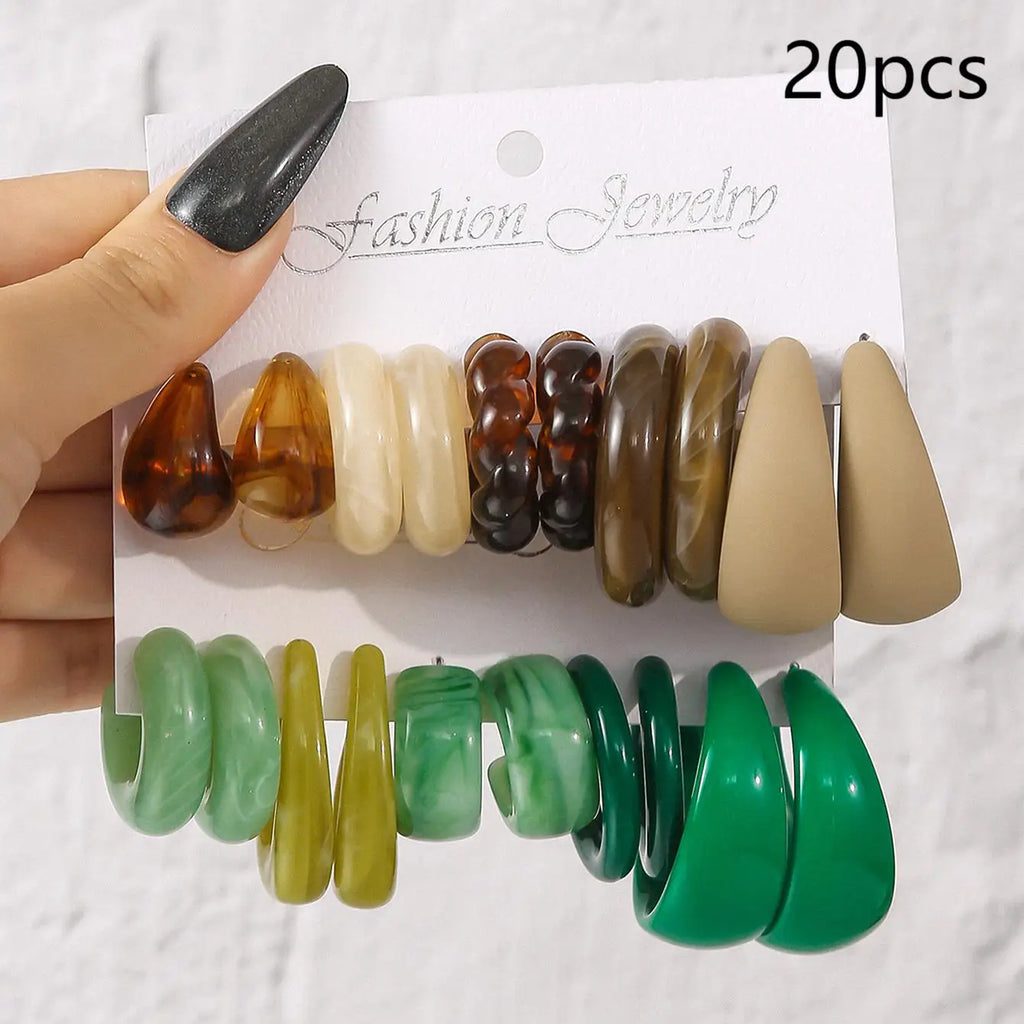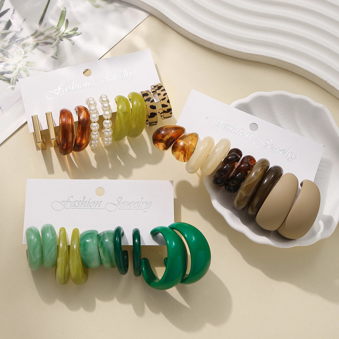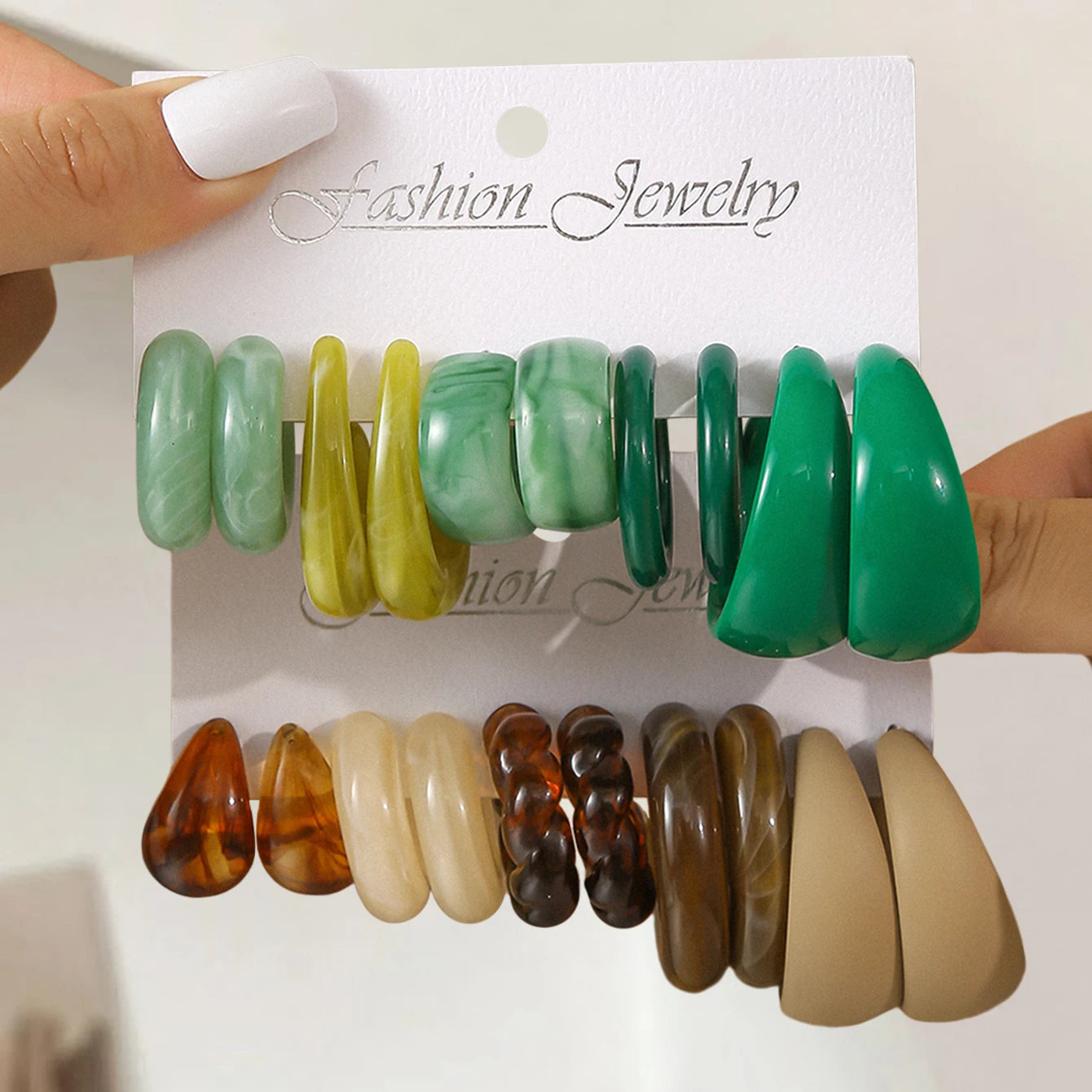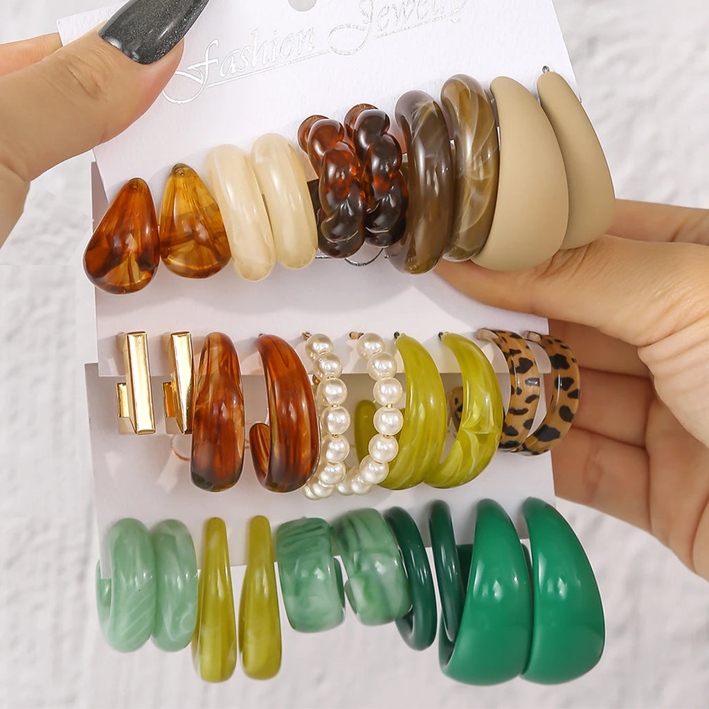 Sets of Vintage Style Multi-colour Hoop Earrings Set Water Drop C-shaped Designs