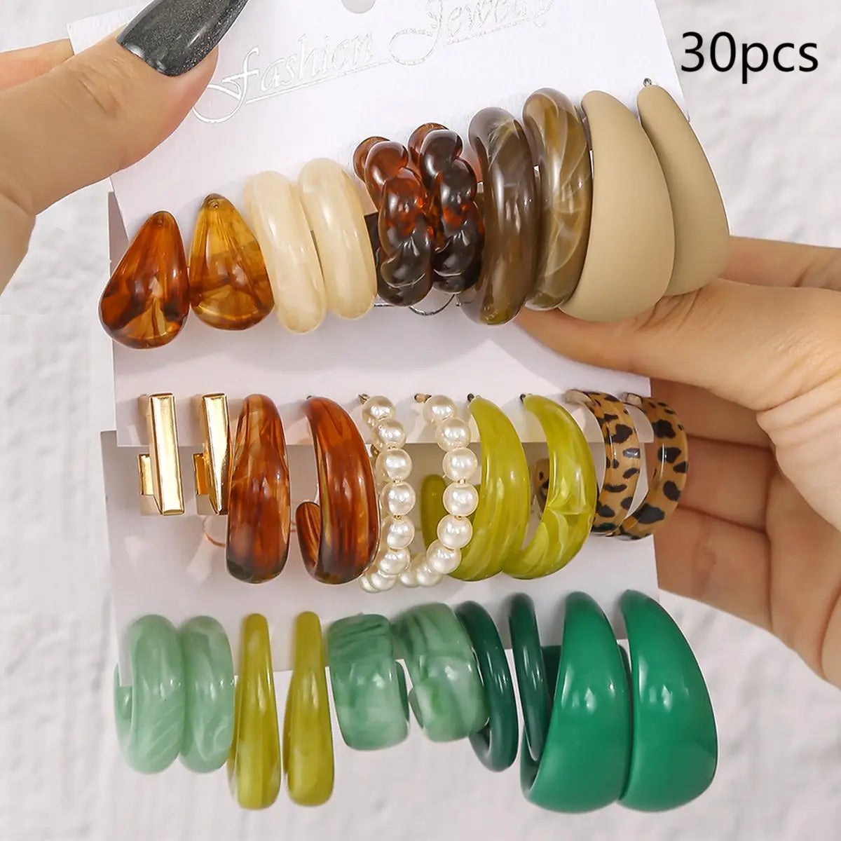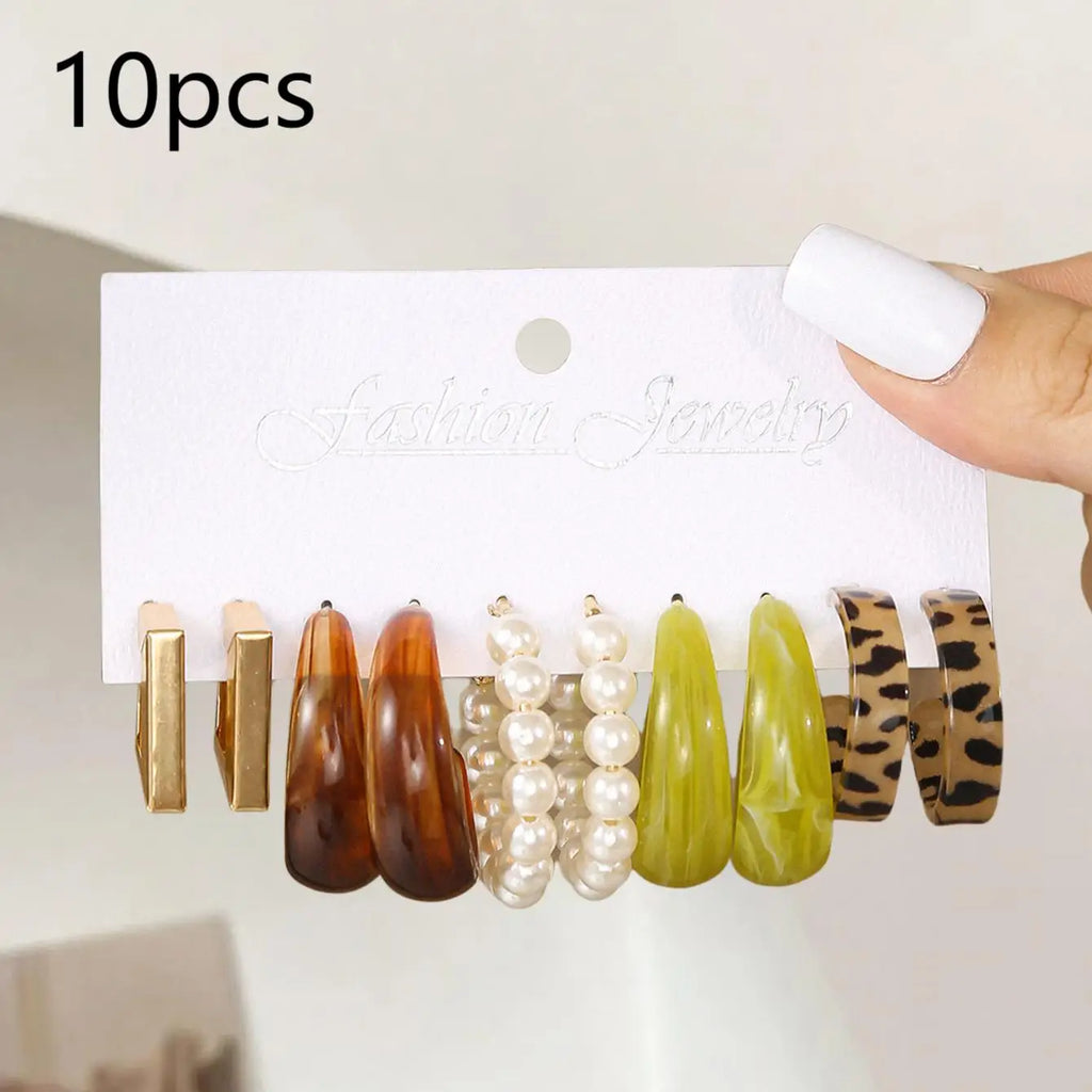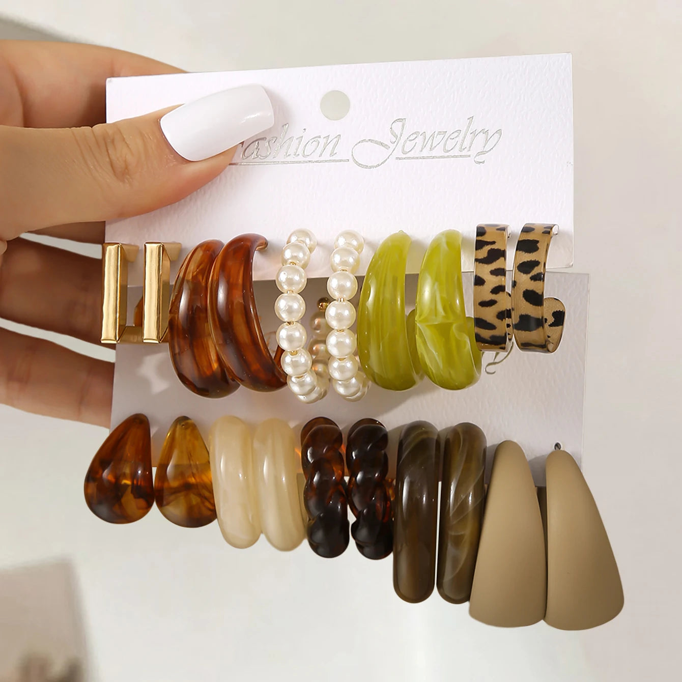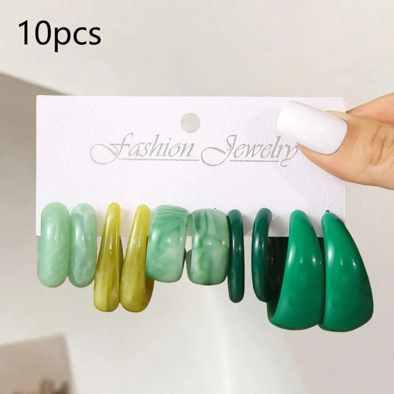Sets of Vintage Style Multi-colour Hoop Earrings Set Water Drop C-shaped Designs