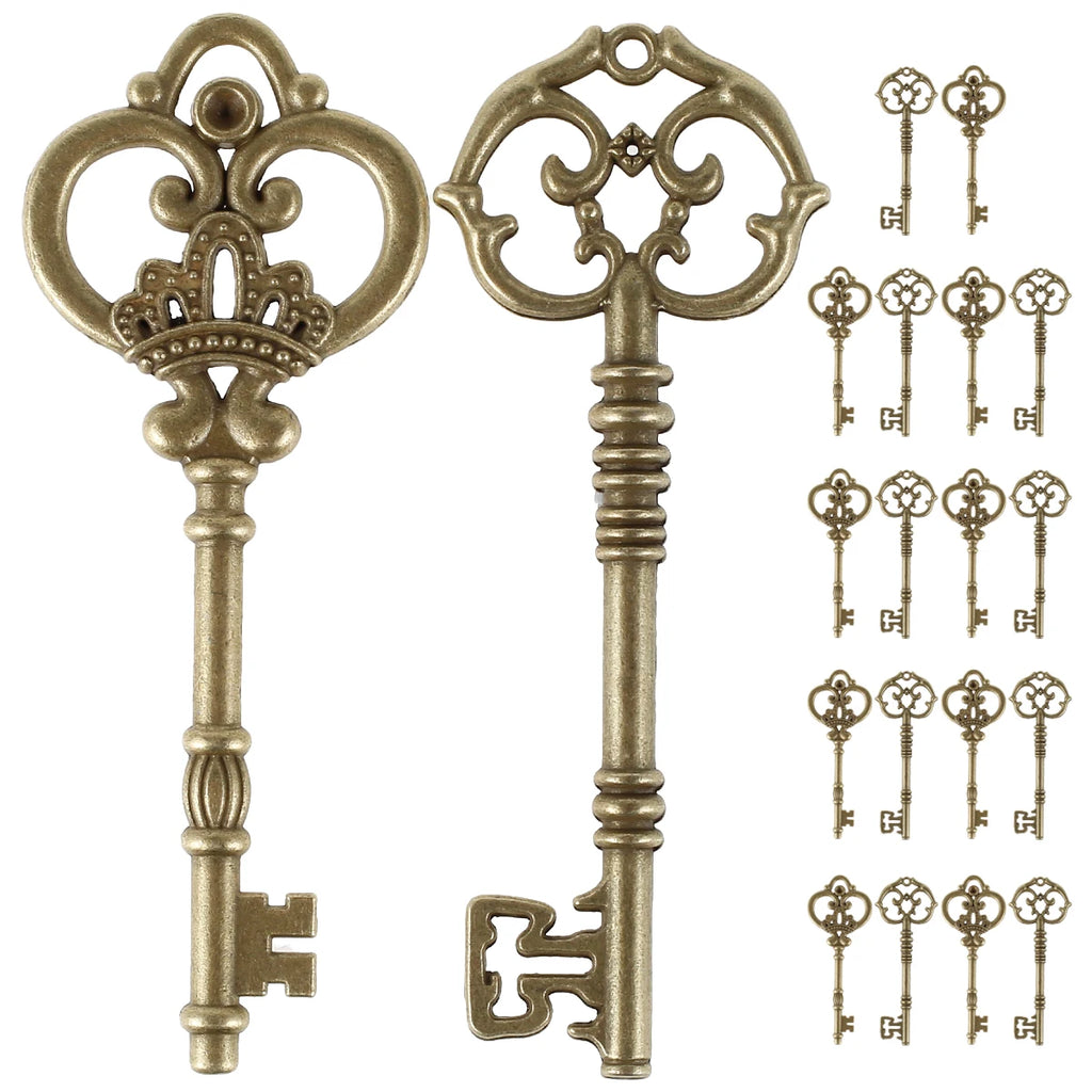 Twenty Large Skeleton Keys Antique Bronze Vintage Key Charms DIY Handmade Craft