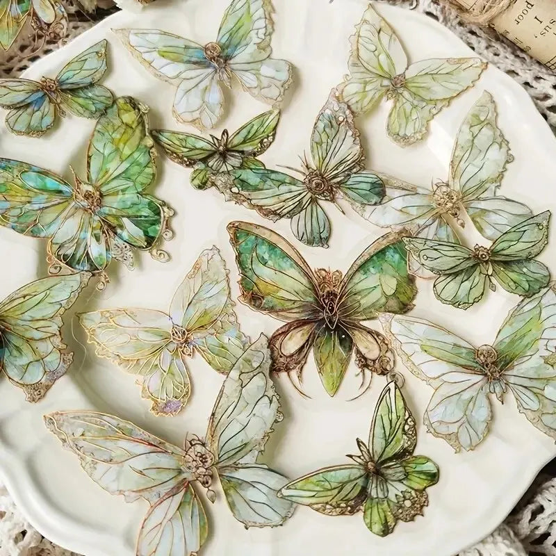 20pcs Ice Crystal Laser Butterfly PET Stickers DIY Scrapbooking Junk Journaling