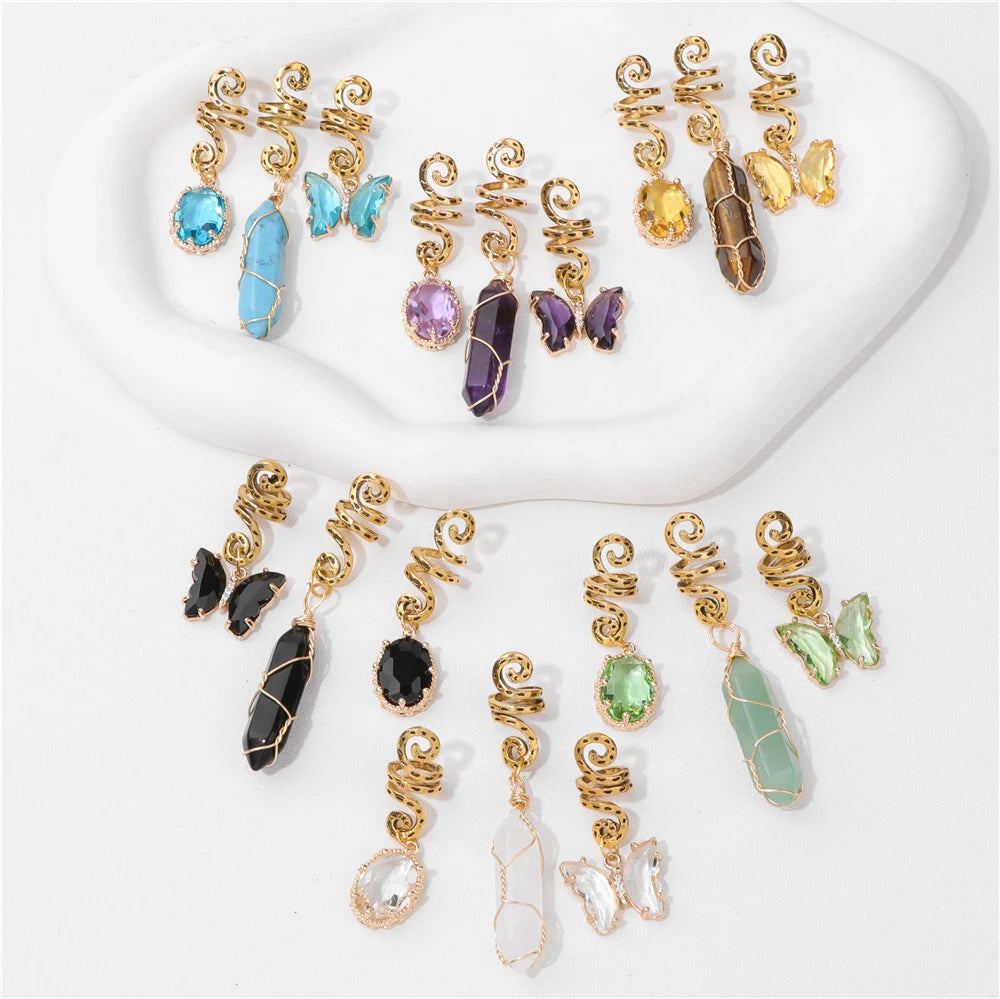 Crystal Braid Jewellery Hair Clips 3pcs/Set Natural Stones