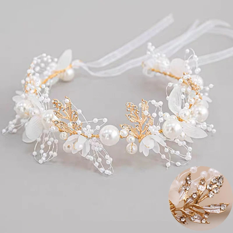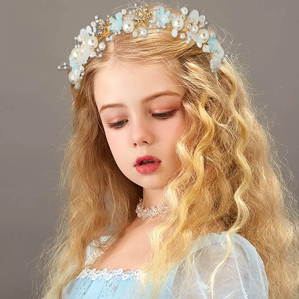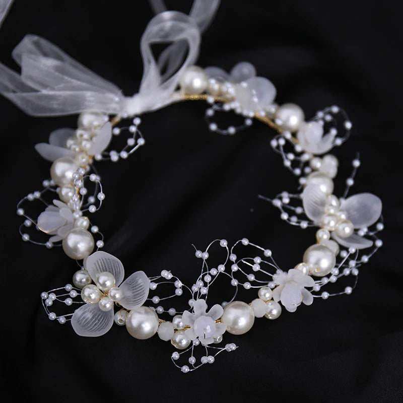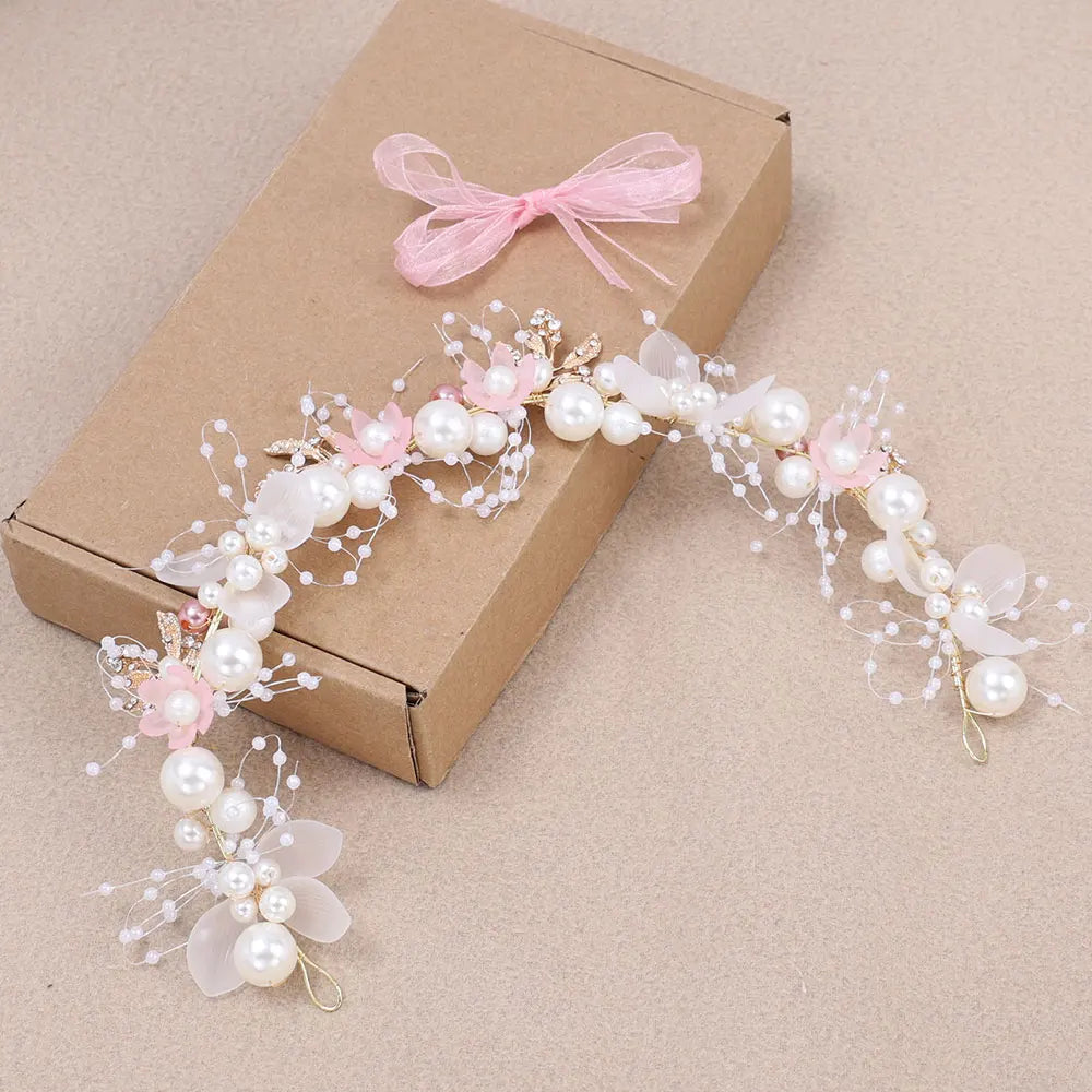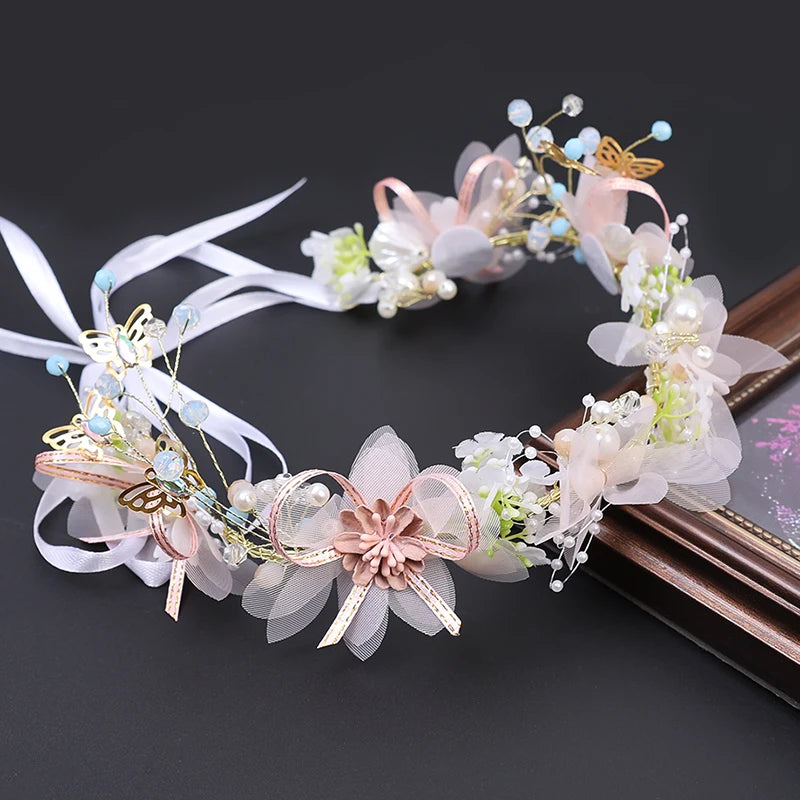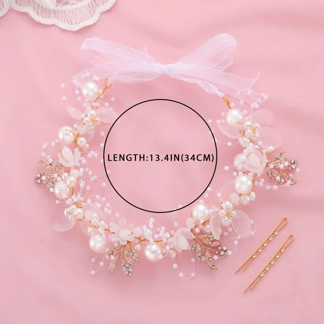 Girls Pearl Flower Wreath Floral Garland Head Hoop