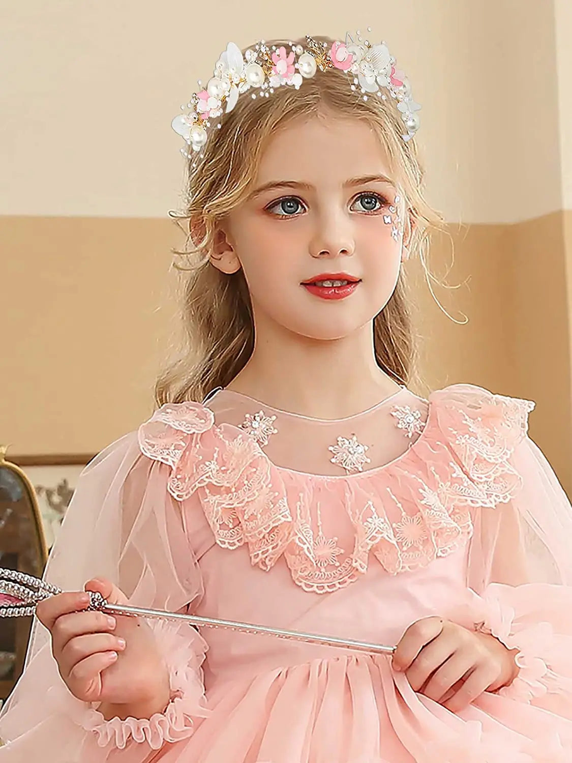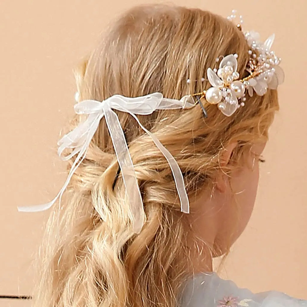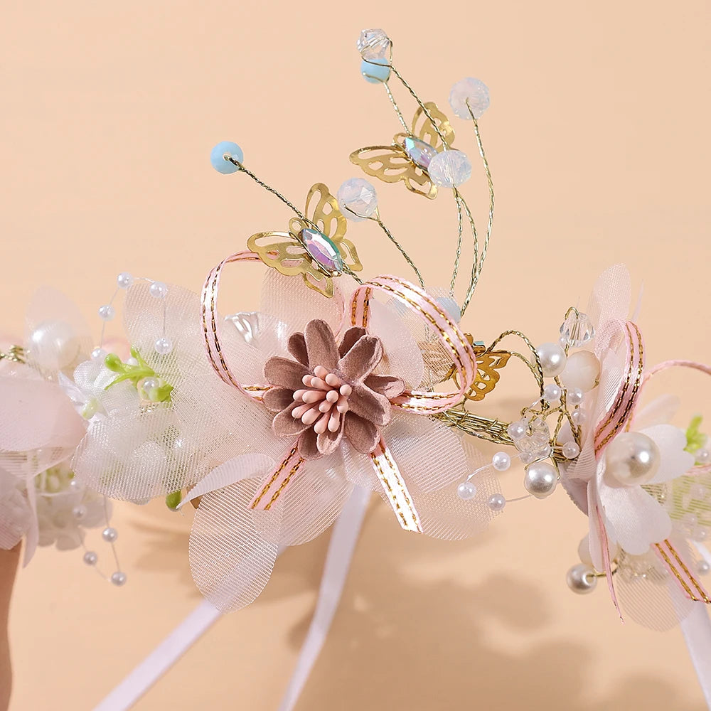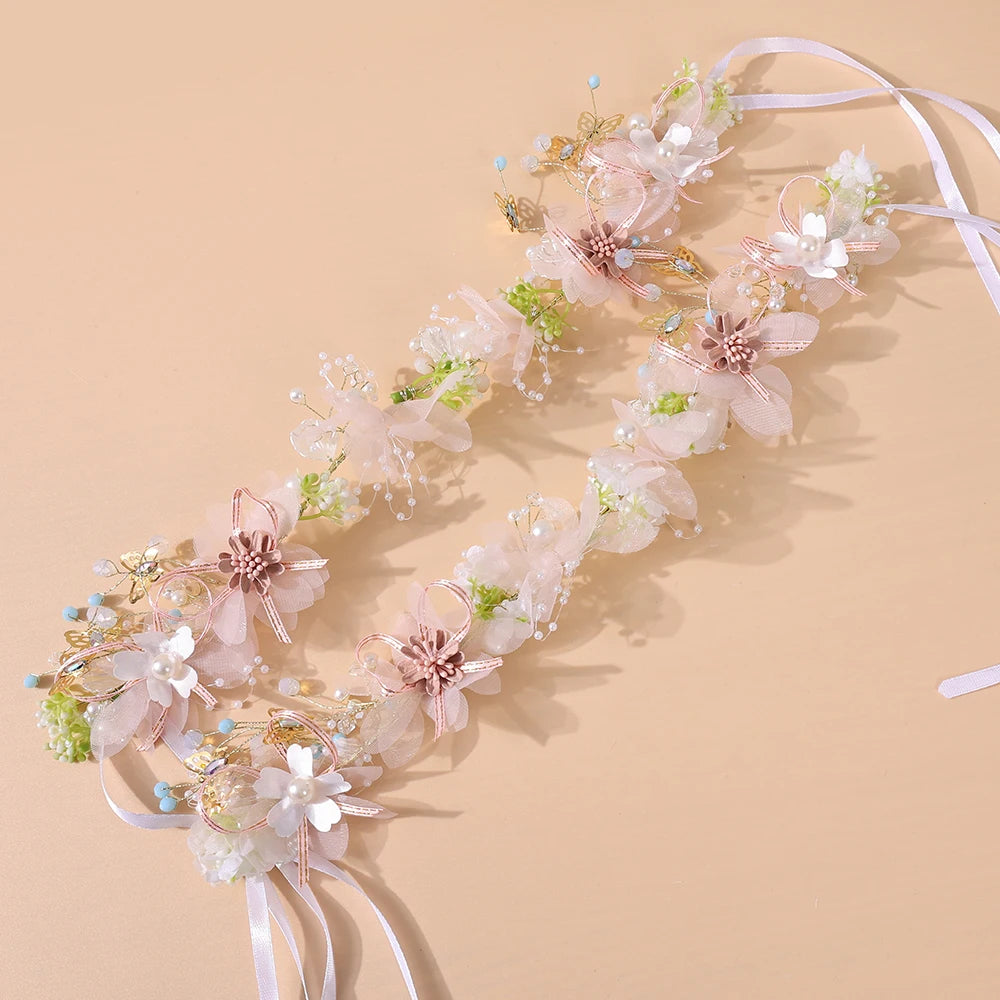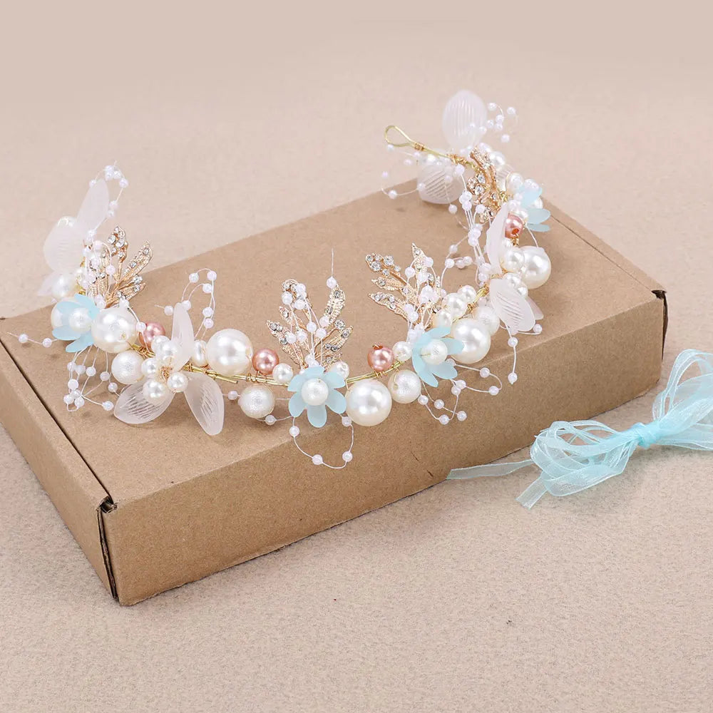 Girls Pearl Flower Wreath Floral Garland Head Hoop