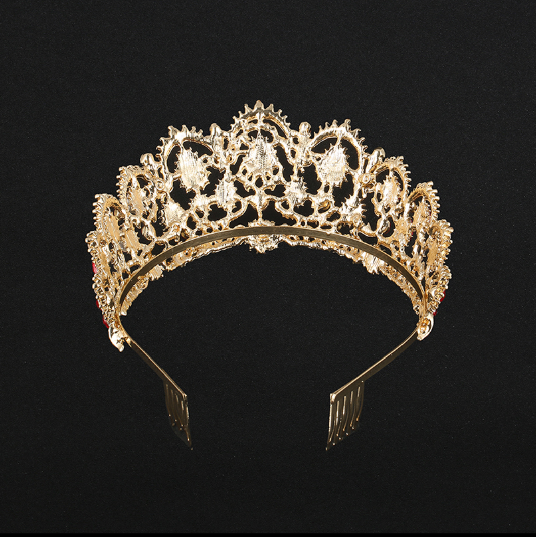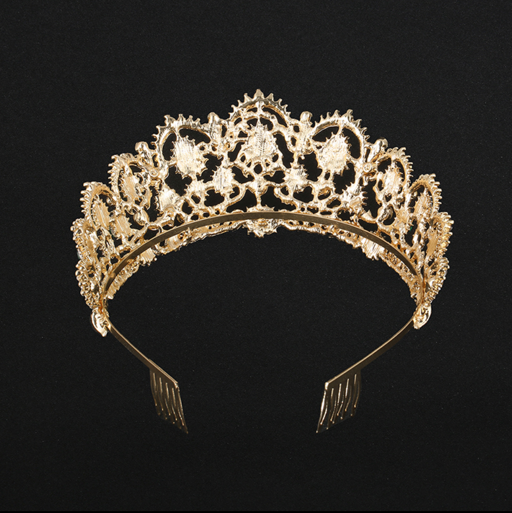 This is a crown that commands an audience.  Made by the burly babushka wives of gnome miners who dig for the treasures deep at the base of the Woodland's mountain ranges, these crowns are designed for the woman who holds her head up high.