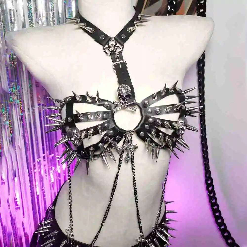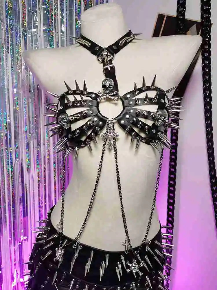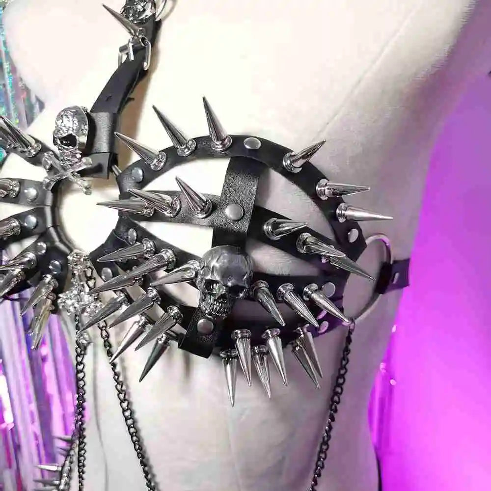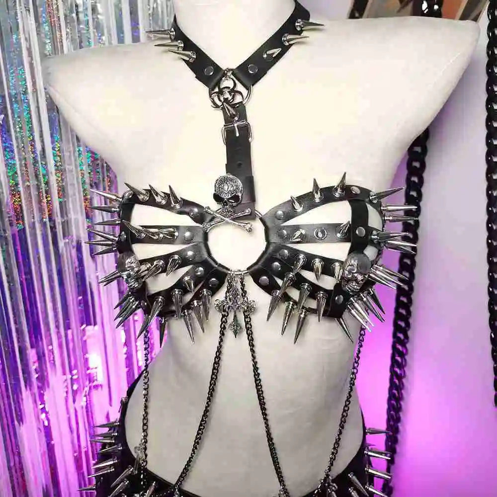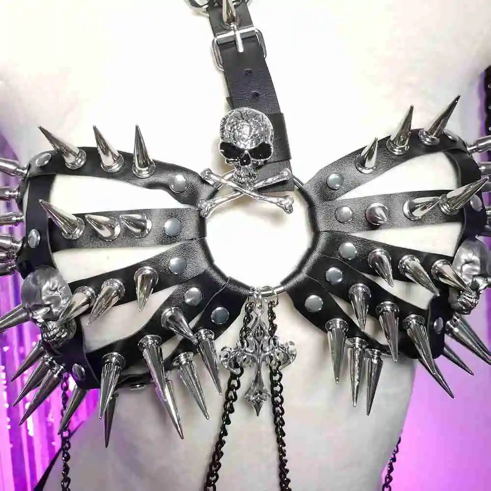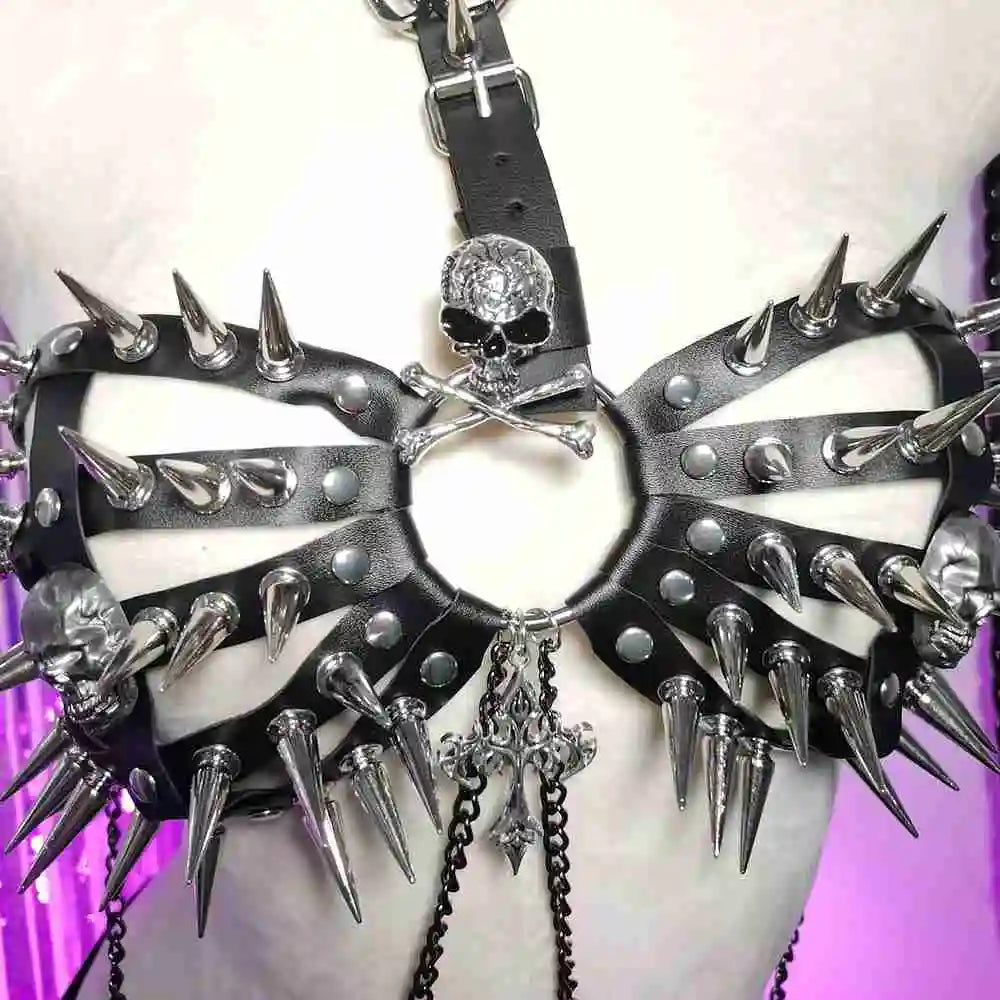 Spike Rivet Studded Goth Punk Rock Grunge Revival Skull Chest Harness