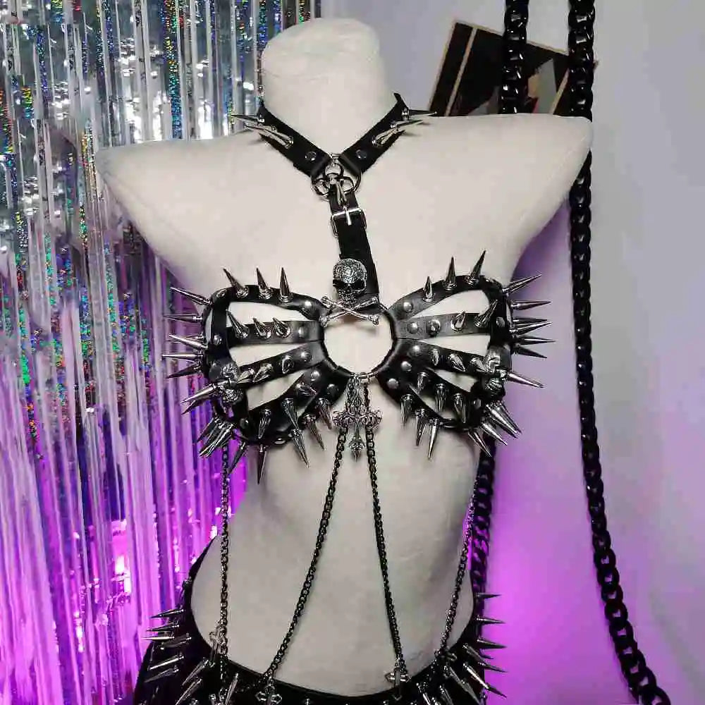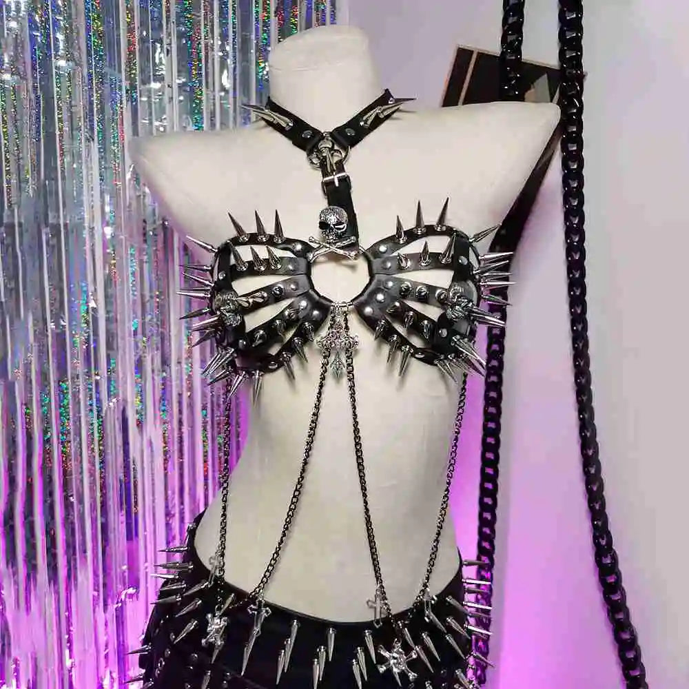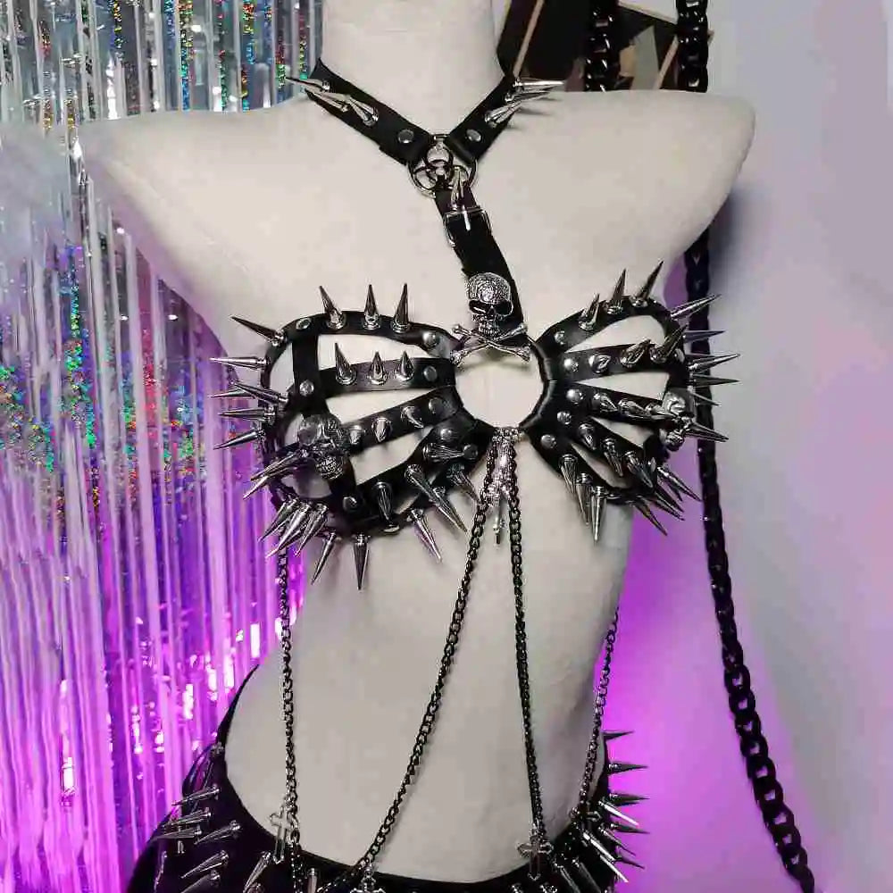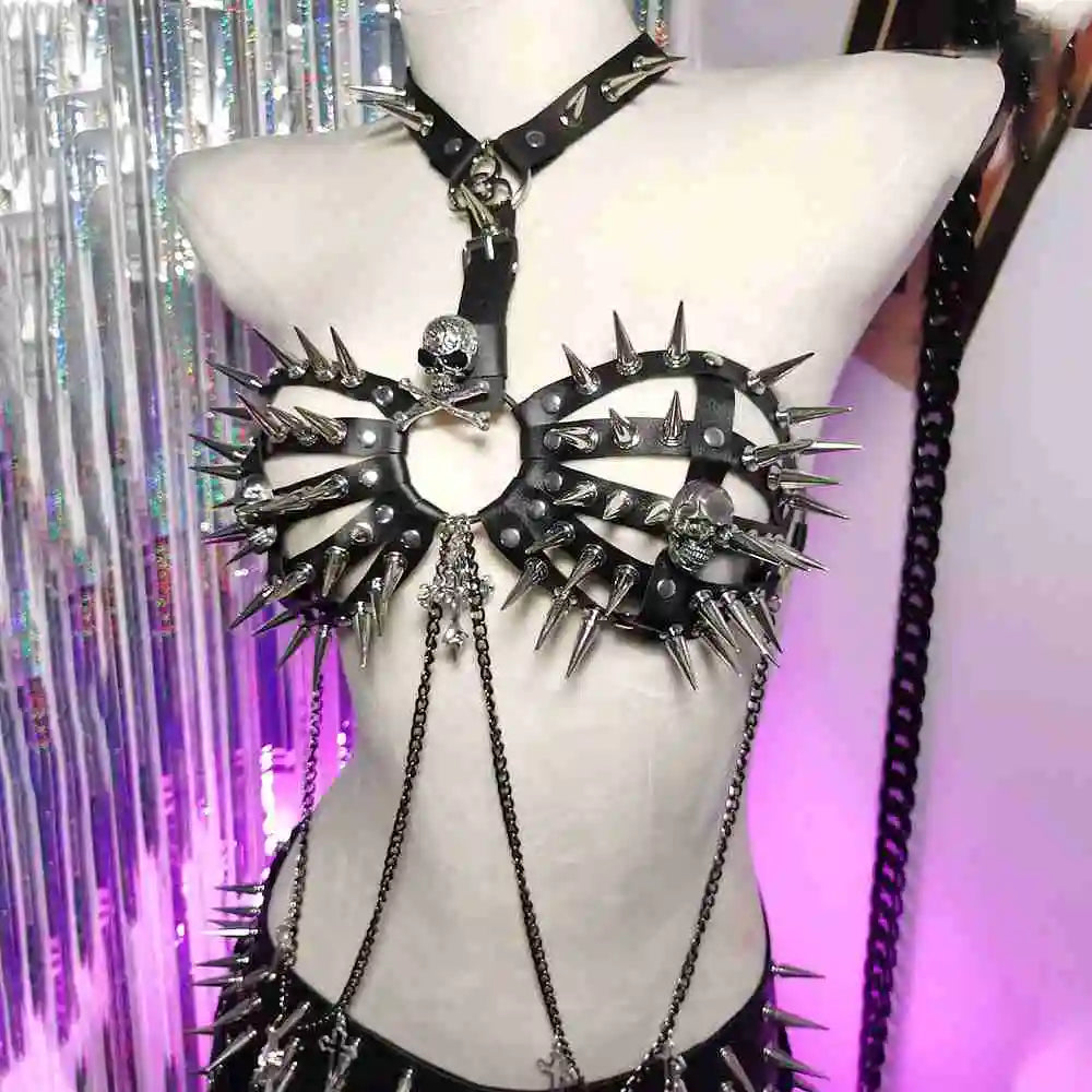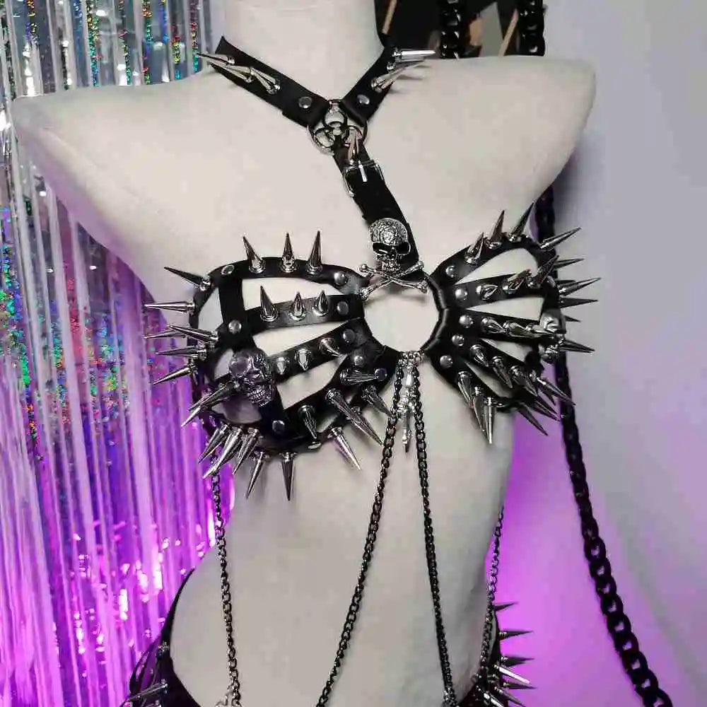 Spike Rivet Studded Goth Punk Rock Grunge Revival Skull Chest Harness