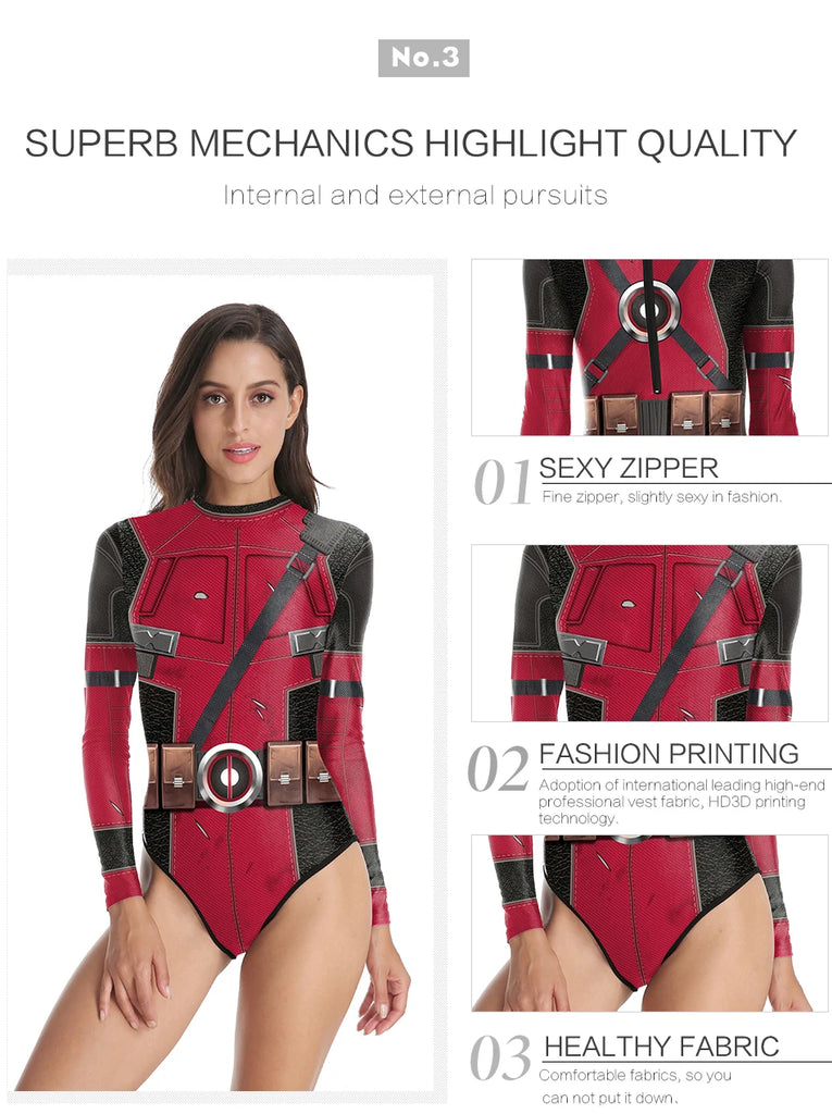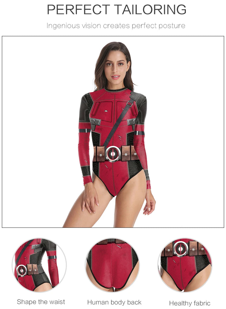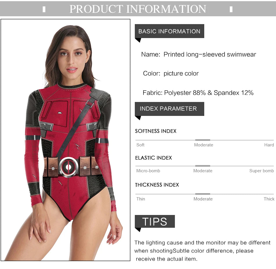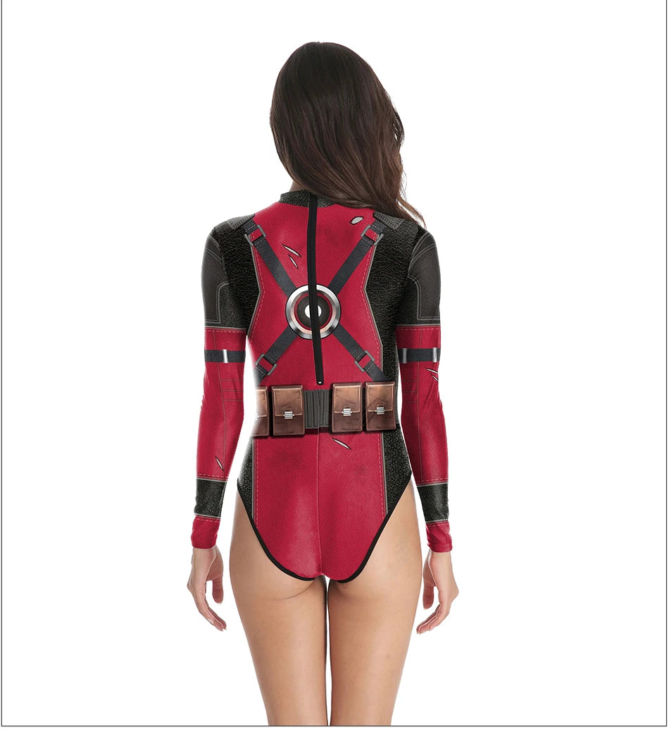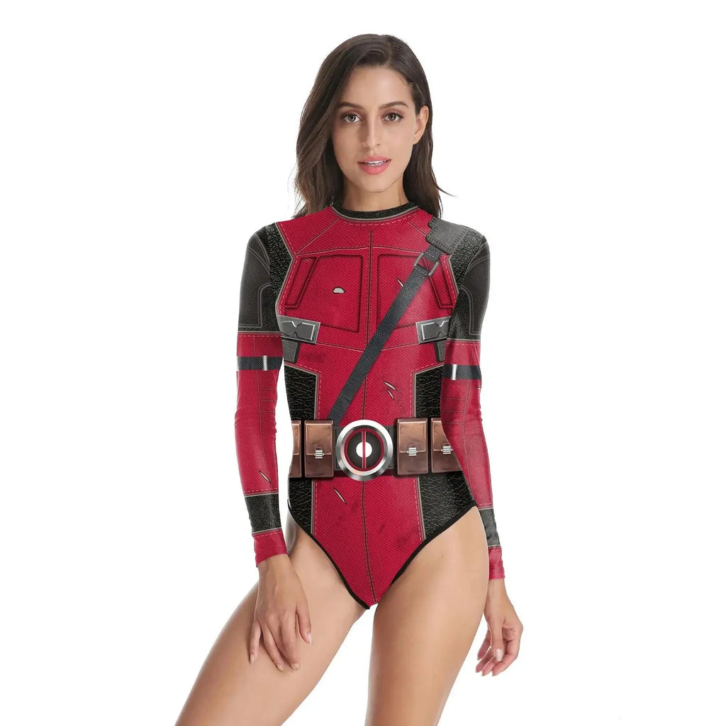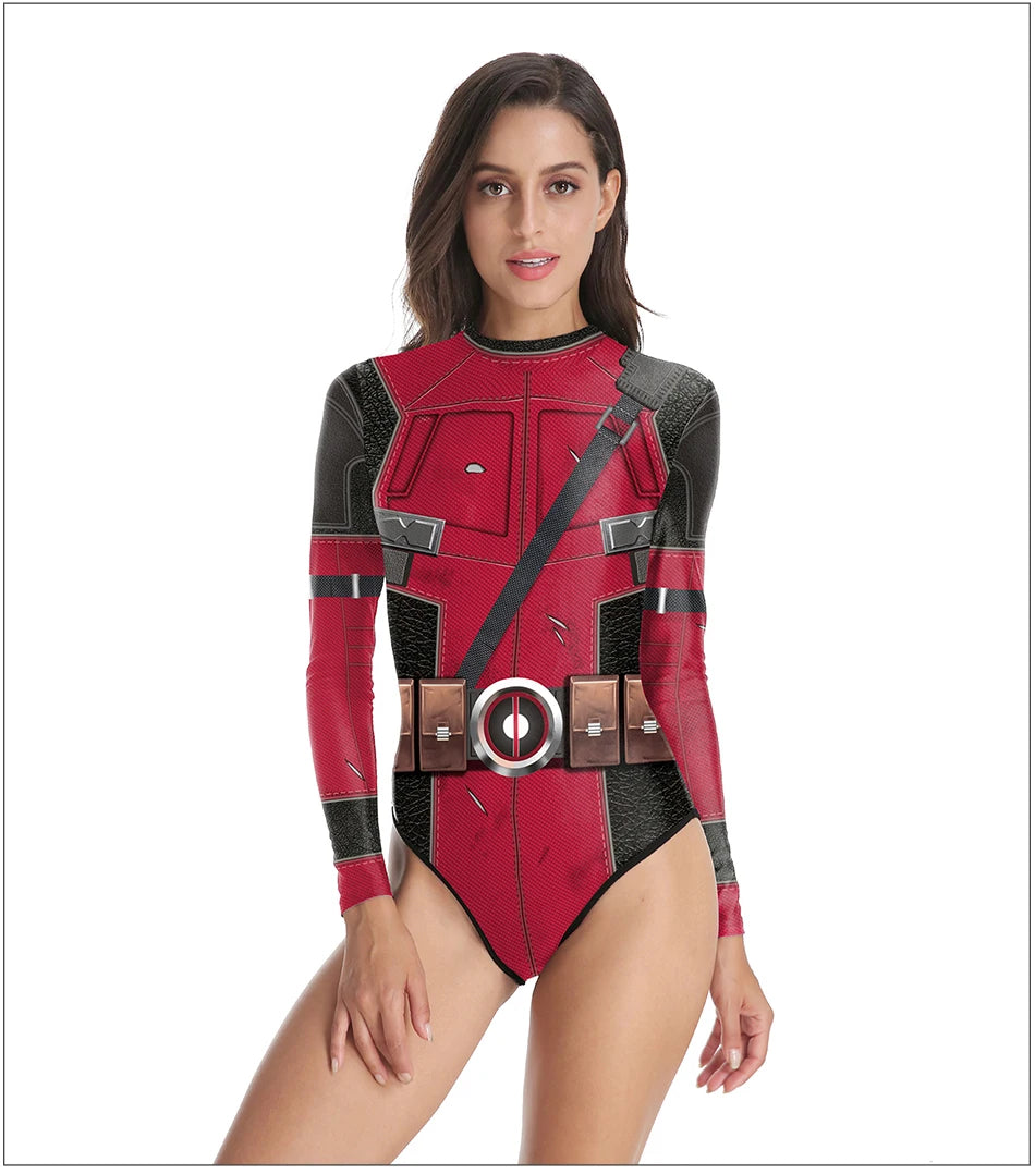 Superheroes Printed Long Sleeve Swimwear One-piece Surfing Swimsuit