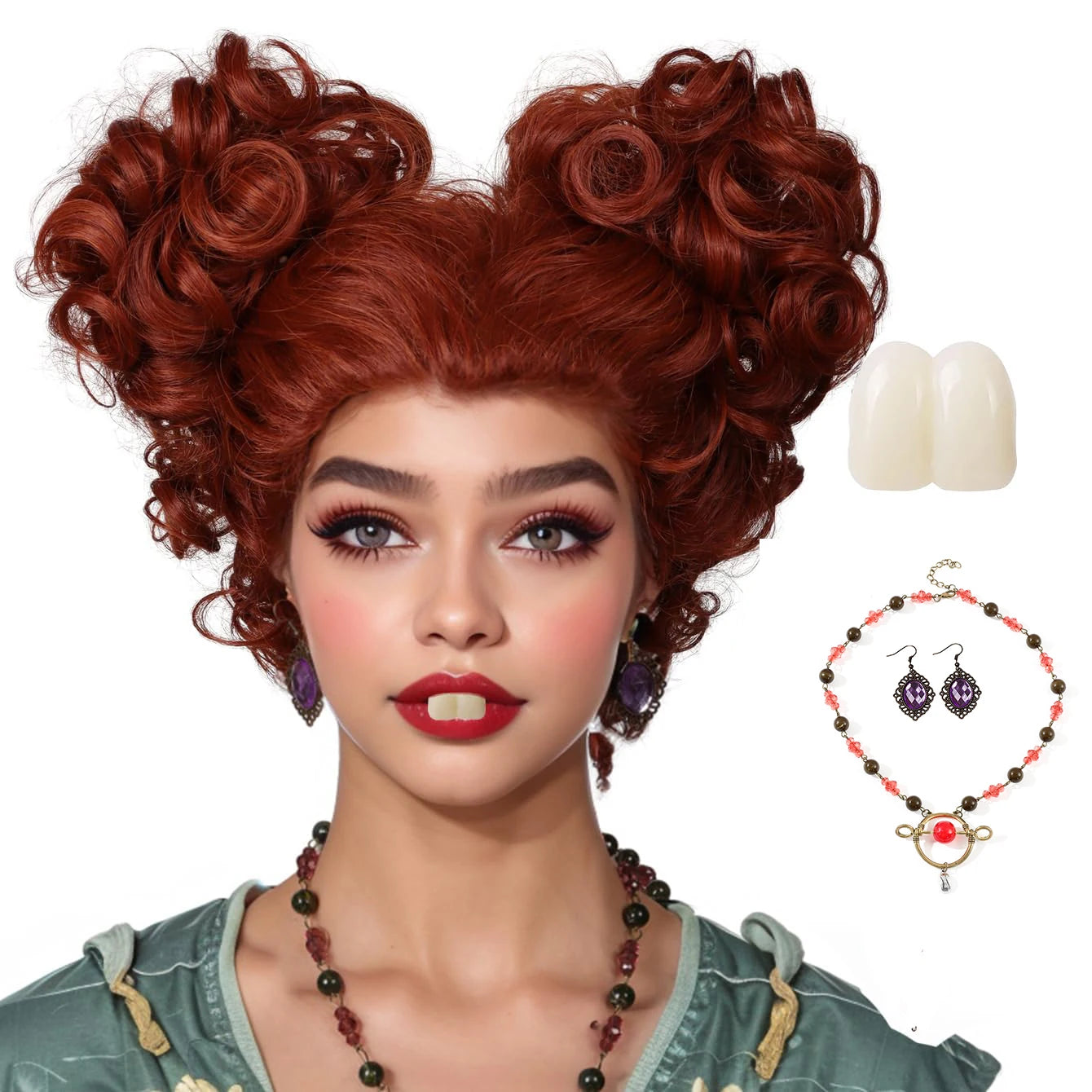 Winifred Sanderson Hocus Pocus Witch Cosplay Wig Earrings Necklace and Tooth Cap Set Cosplay Accessories Halloween