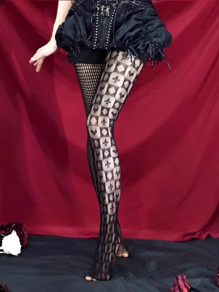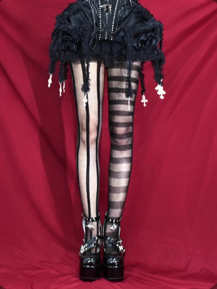Gothic Dark Punk Pantyhose Goth Lolita Striped AB Asymmetric Fishnet Tights