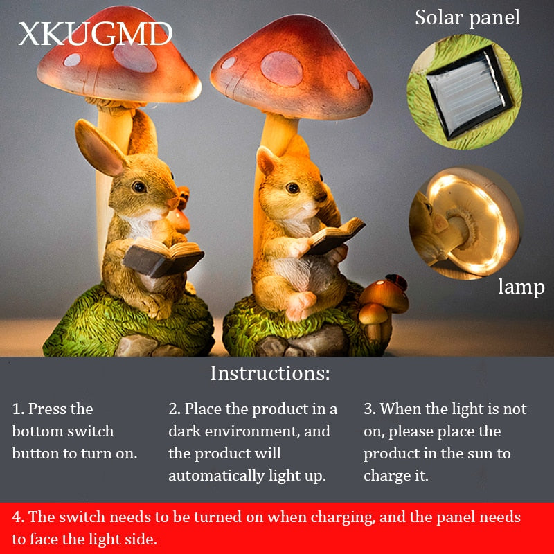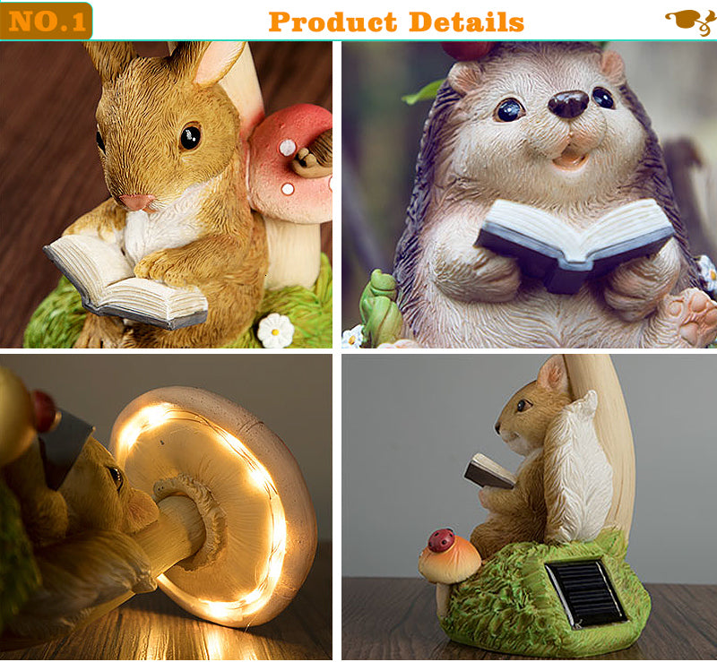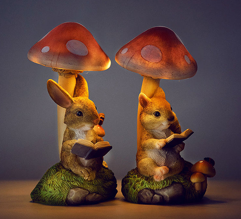 Rabbit & Hedgehog & Chipmunk Mushroom Lamps Solar Powered Night Lights