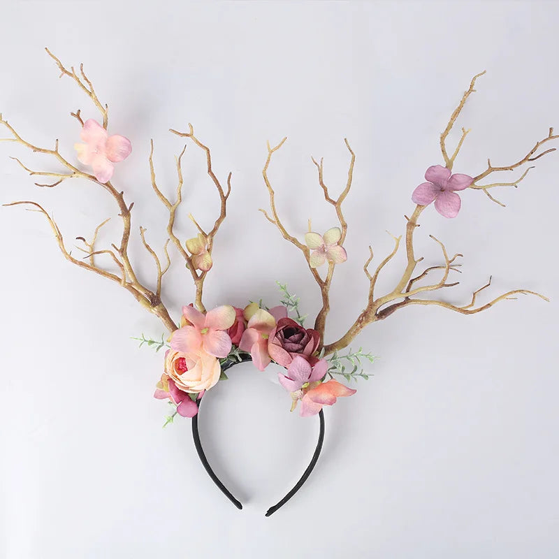 Forest Goddess Headwear Antler Deer Flower Crown Headbands Long Branches Photo Shoot Props