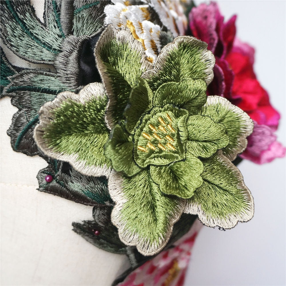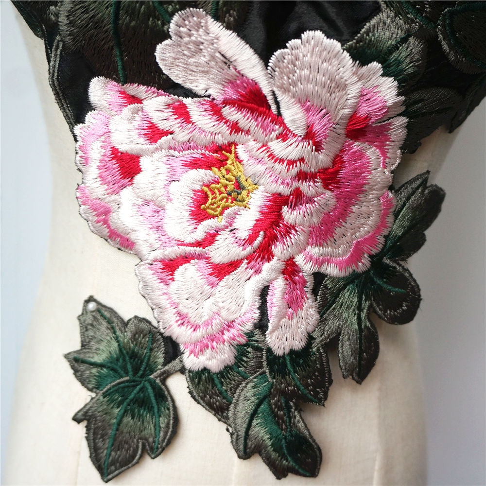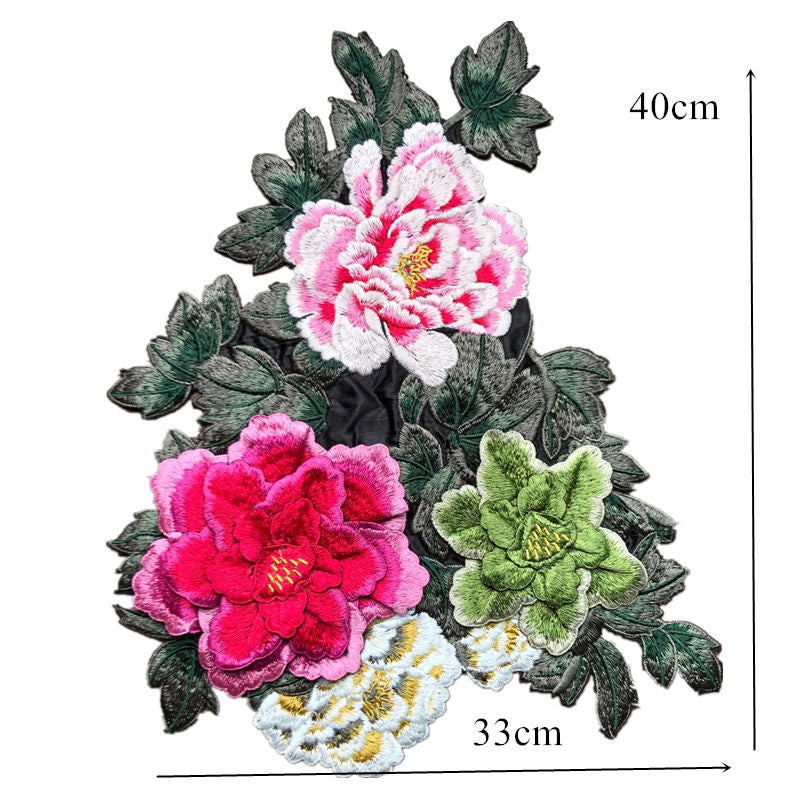 Embroidered Peony Flowers Leaves Sew On Applique Patches DIY Decoration Craft