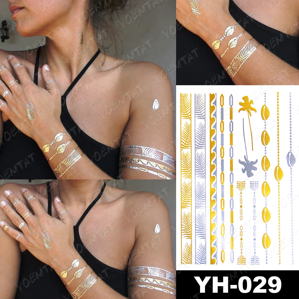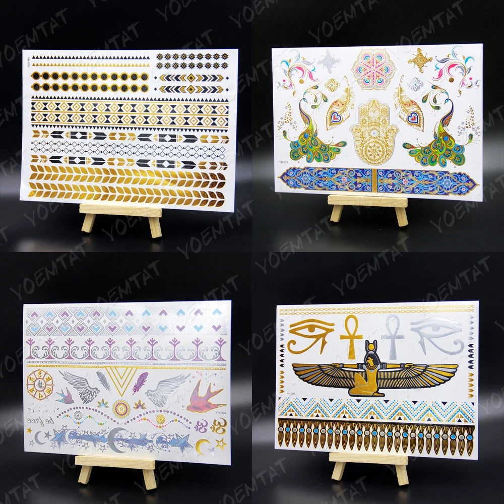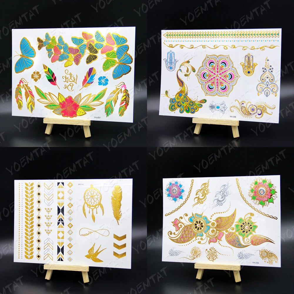 Metallic Peacock Feather Temporary Tattoos Body Art