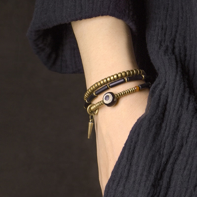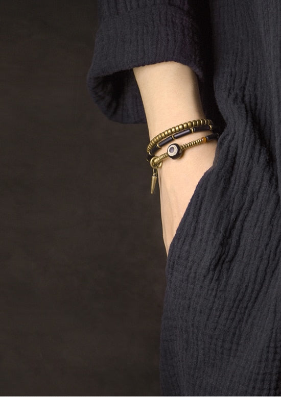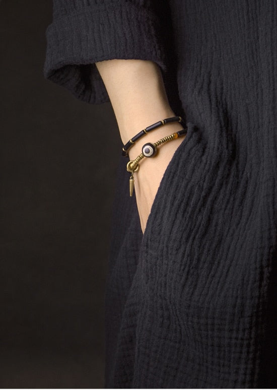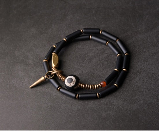 Tibetan Beads Black Onyx Bracelet Copper Healing & Protection Jewellery