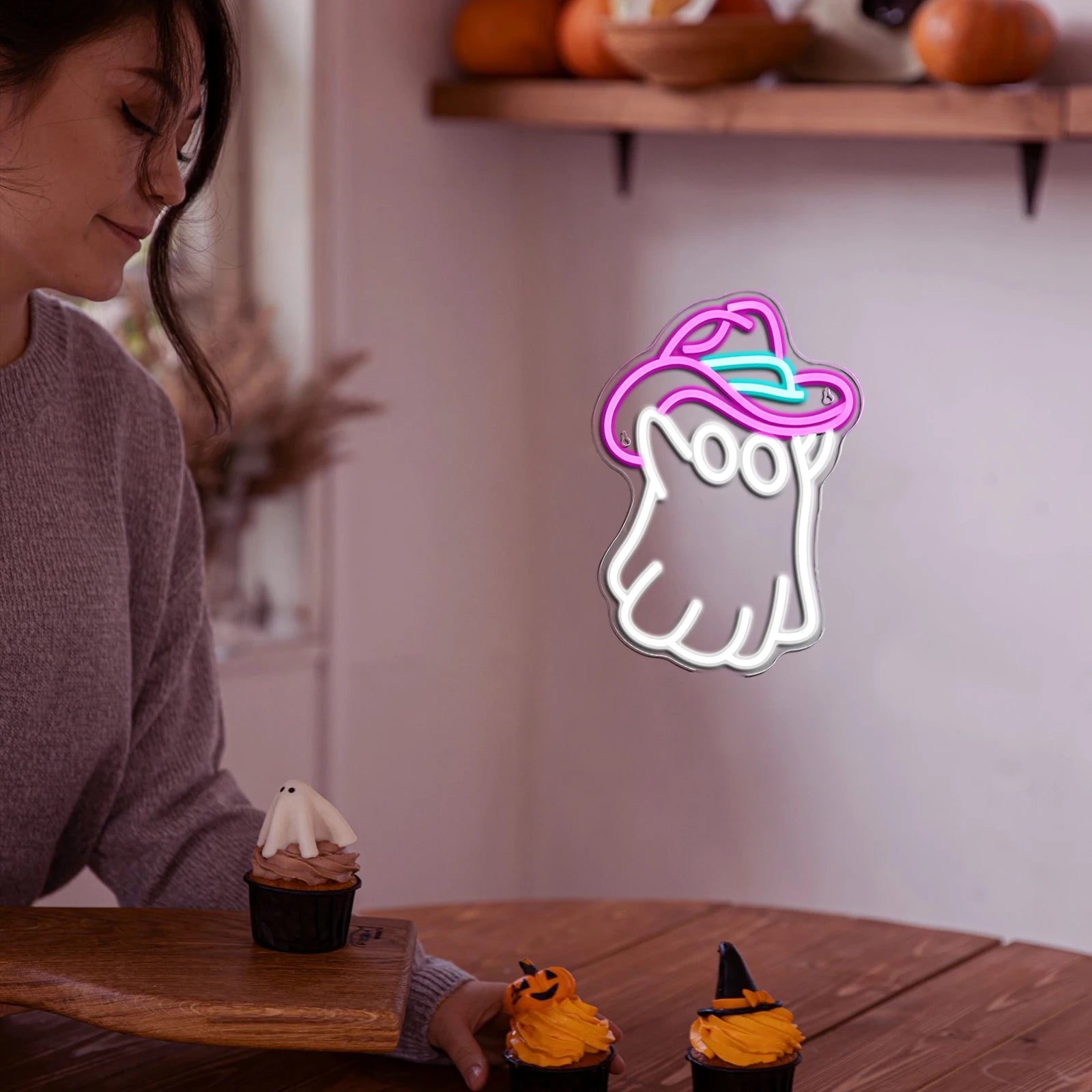 Cute Ghost Neon Sign Wall Decor Halloween Party LED Lights