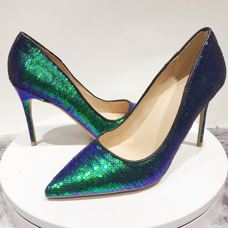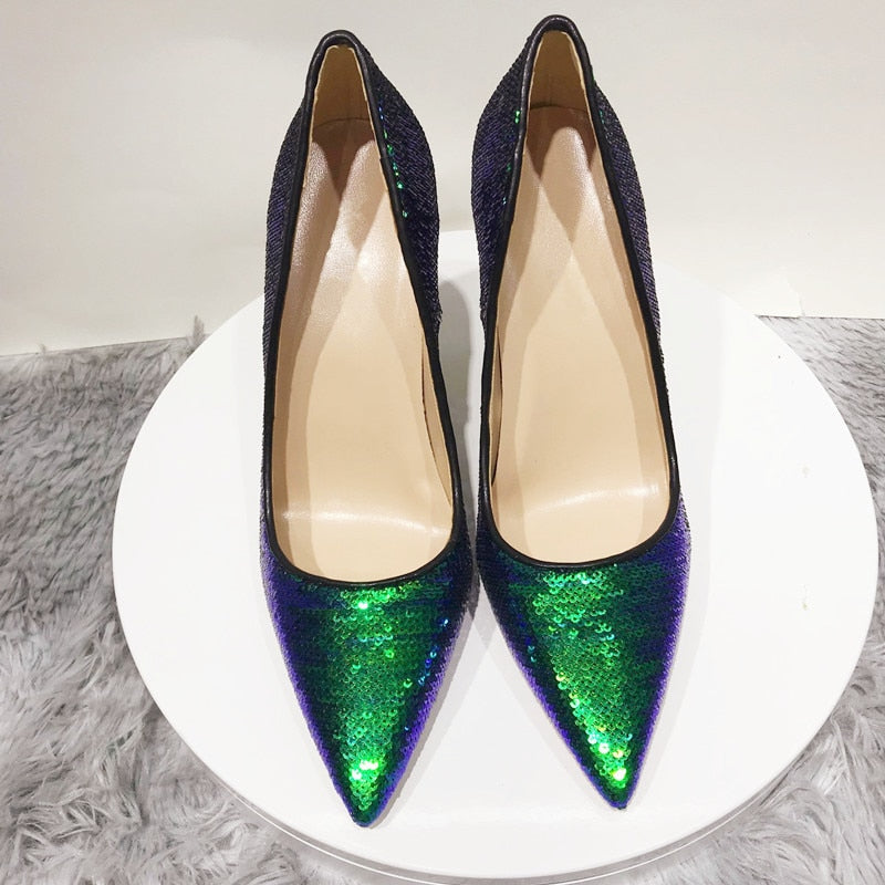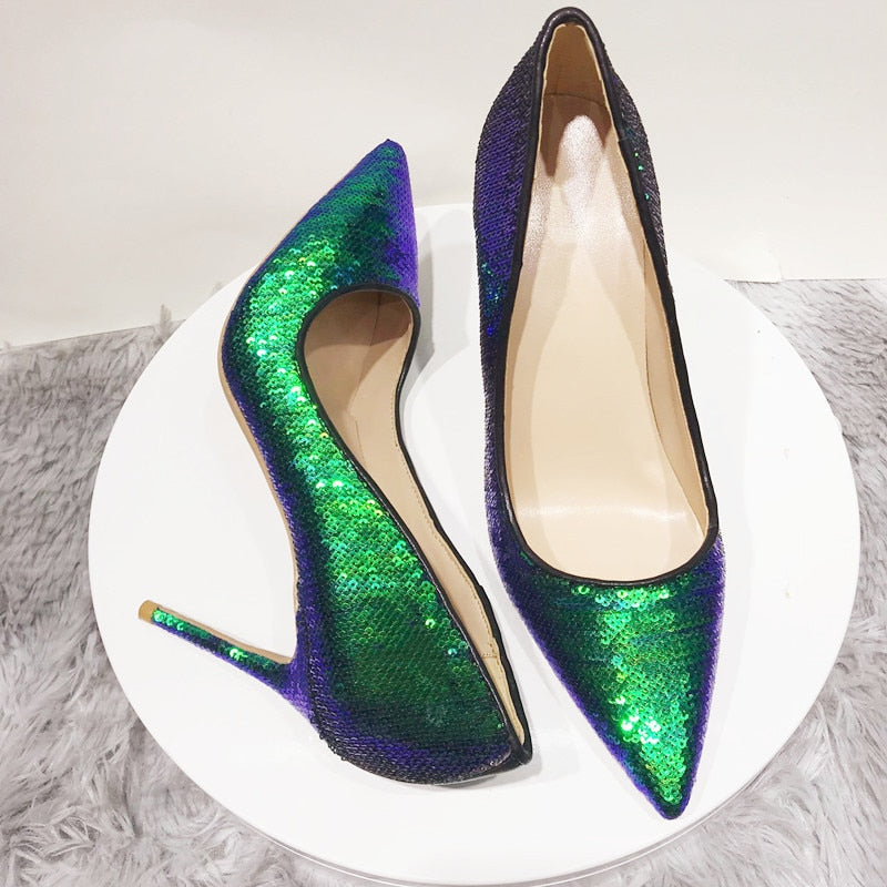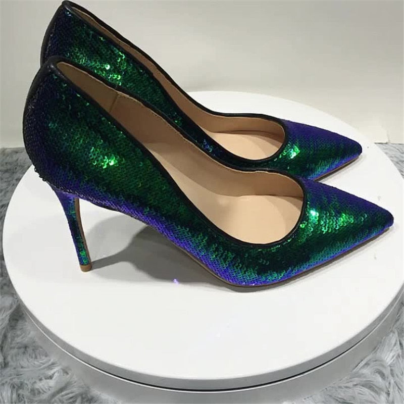 Dark Green Sparkly Sequins Stiletto Pumps High Heel Shoes Sizes 3-12