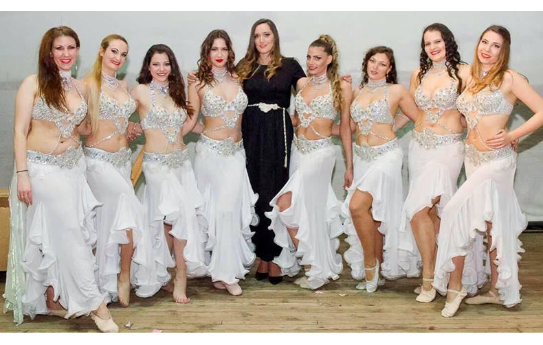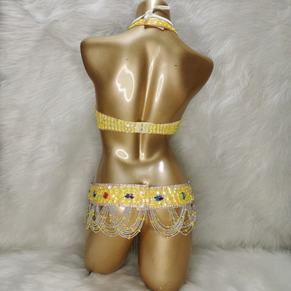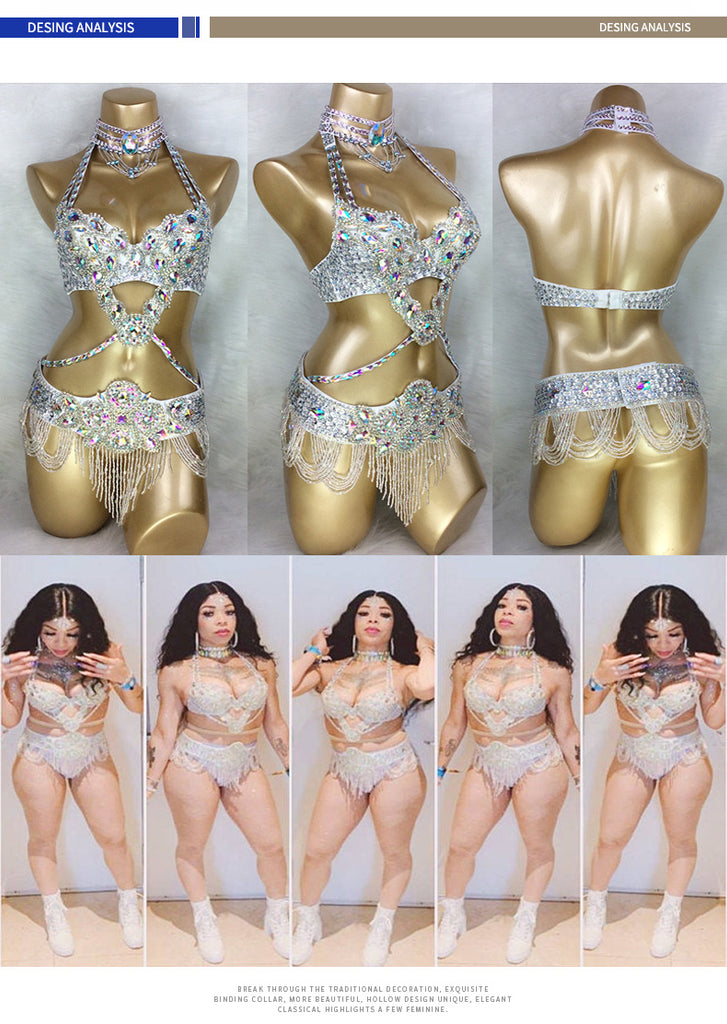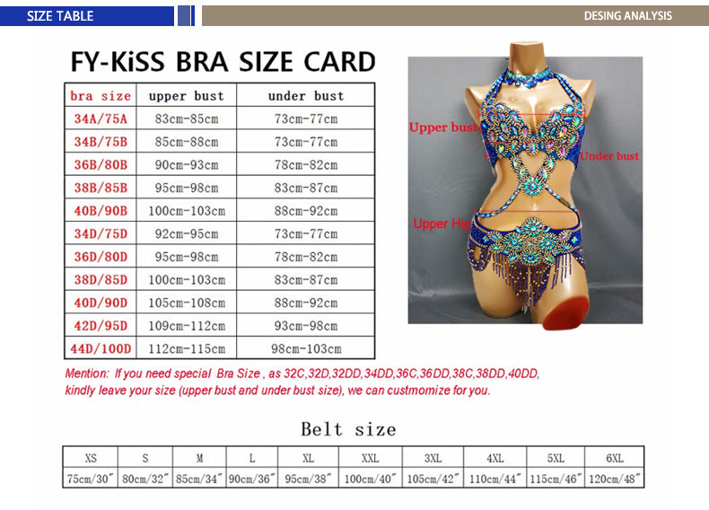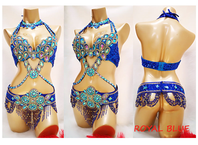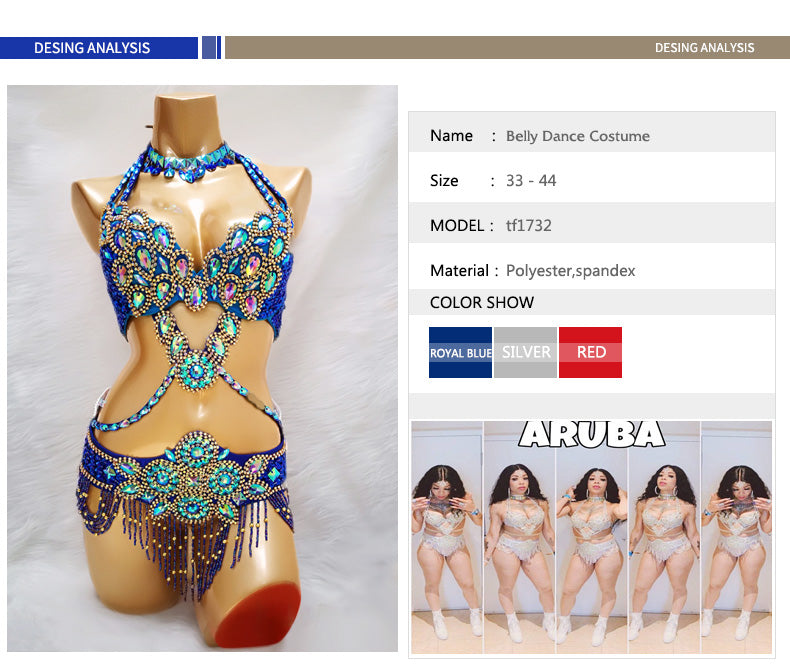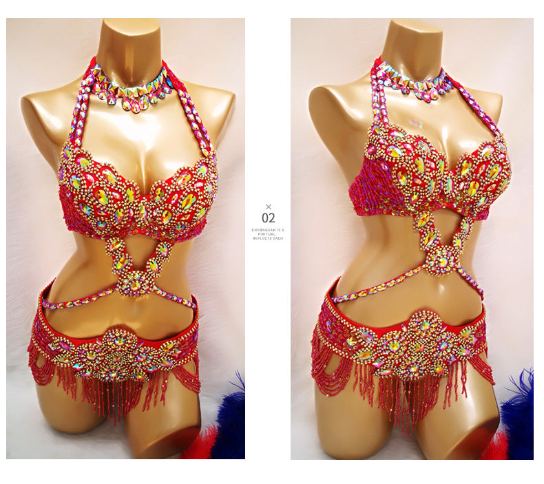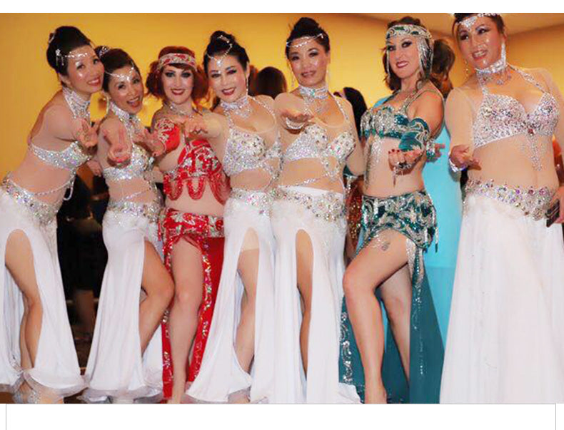 Beaded Crystal Belly Dance Costume Bra+Belt+Necklace 3pc Performance Set