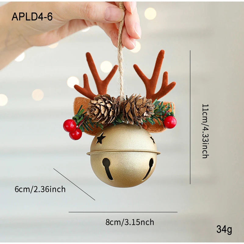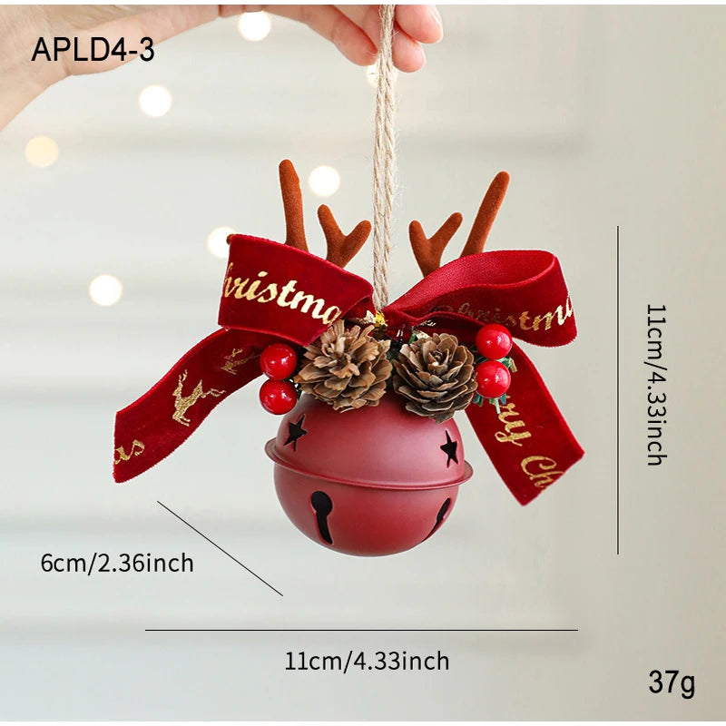 Christmas Bell Antlers Bow Pinecone Bell Christmas Hanging Decoration