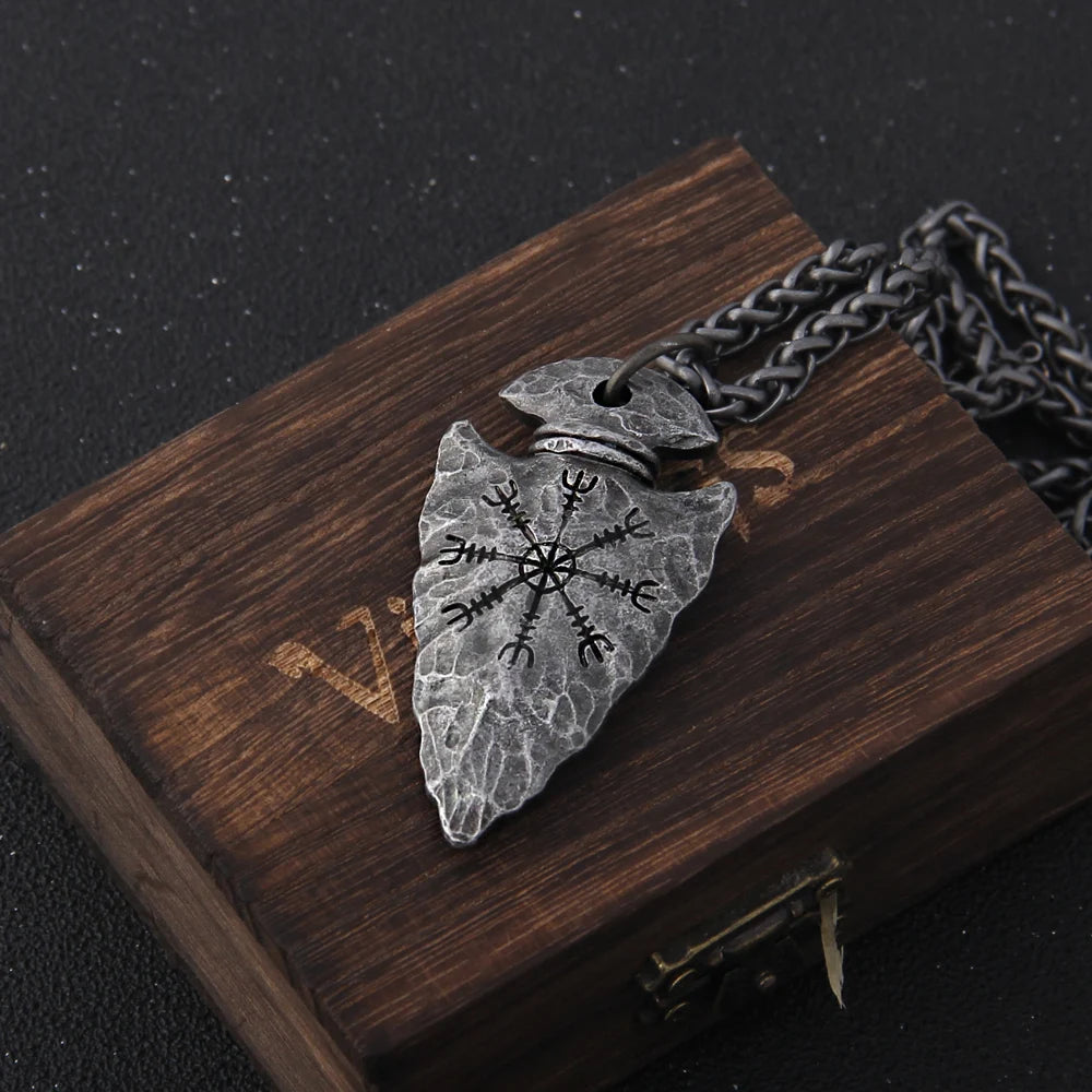 "Helm of Awe" and "Viking Vegvisir" Iron Colour Viking spear Pendant Necklace.