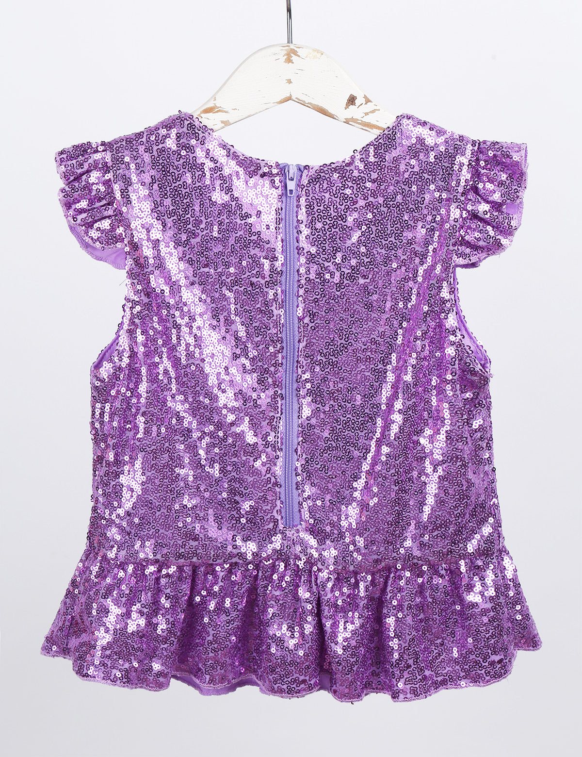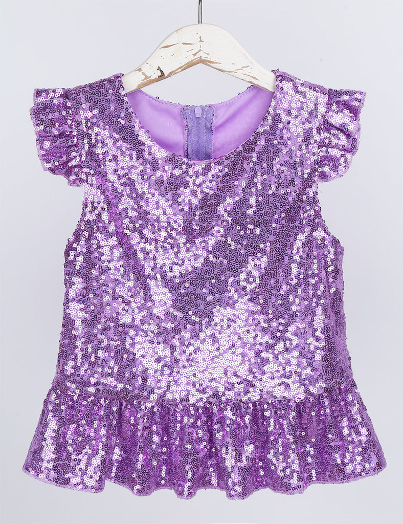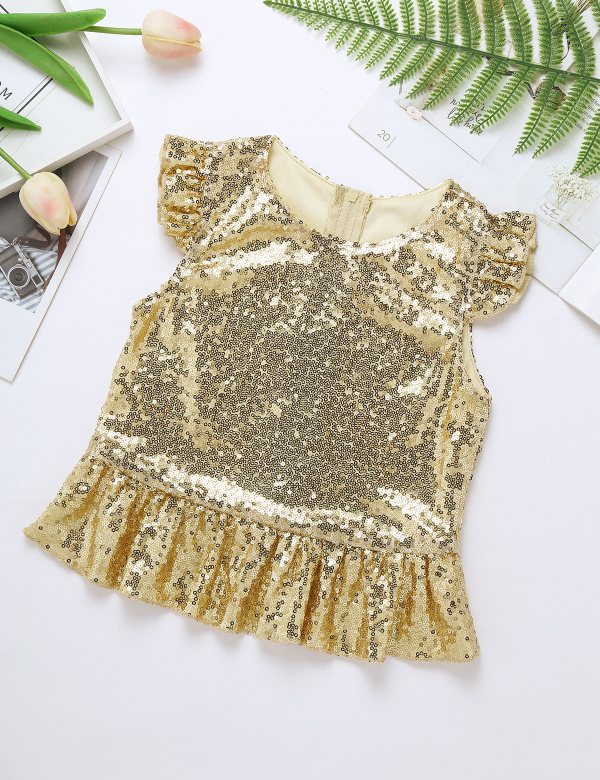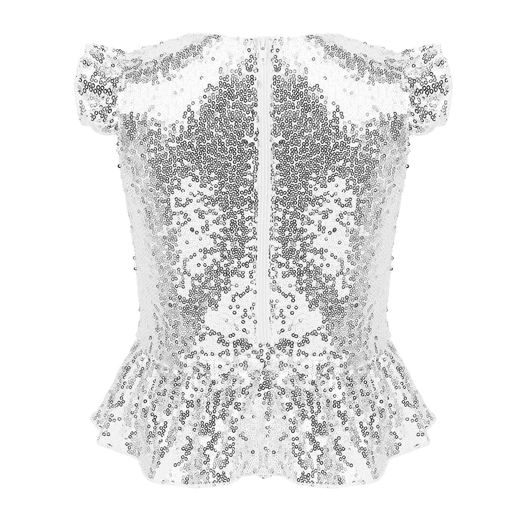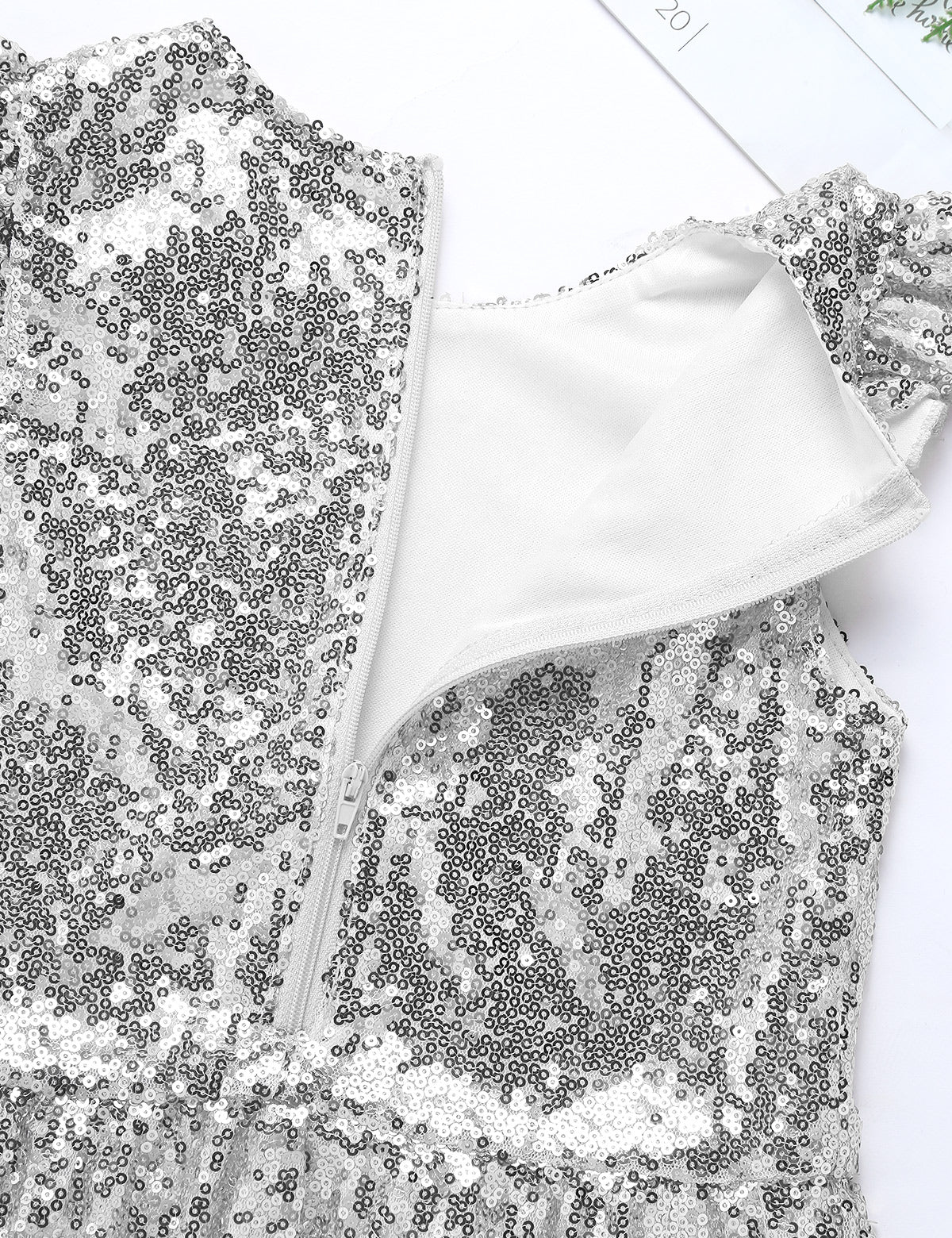 Girls Mermaid Sparkly Sequins Short Flutter Cap Sleeves Ruffle T-shirts Dance Performance Party Tops