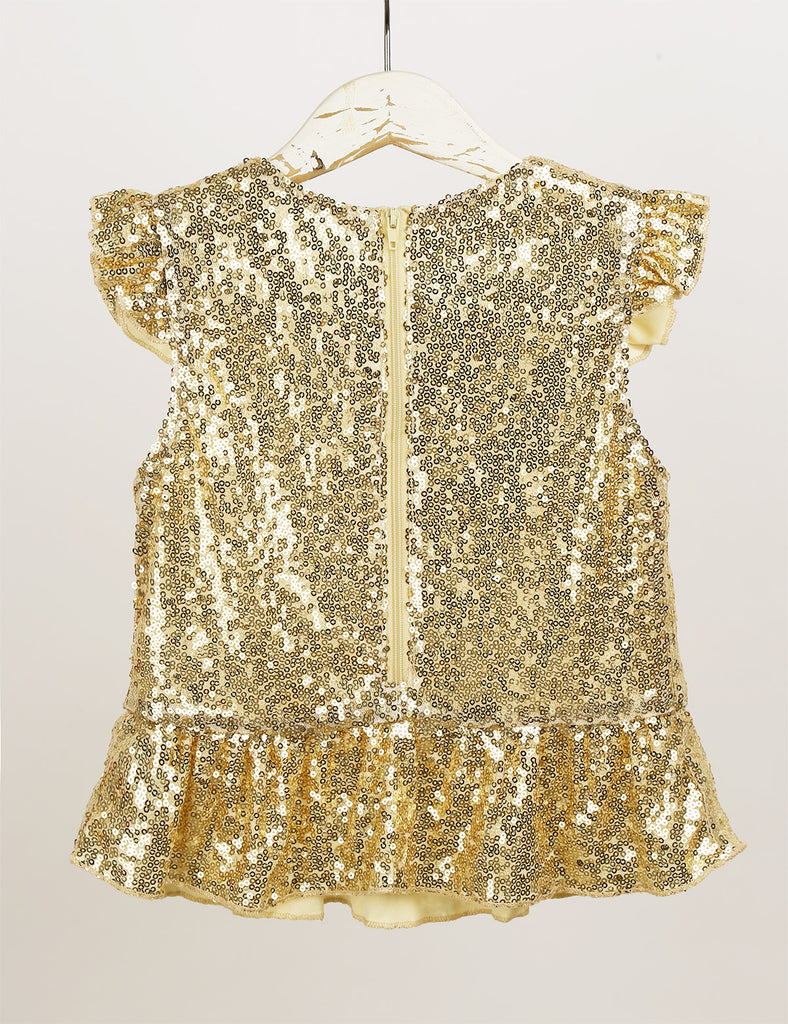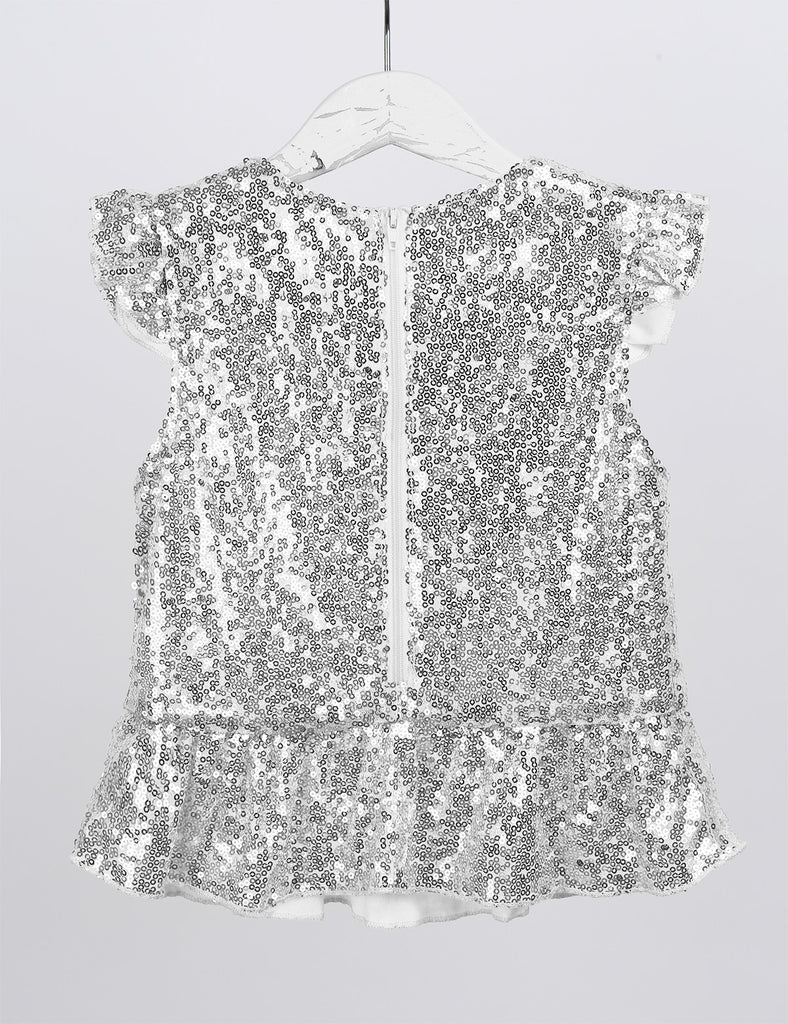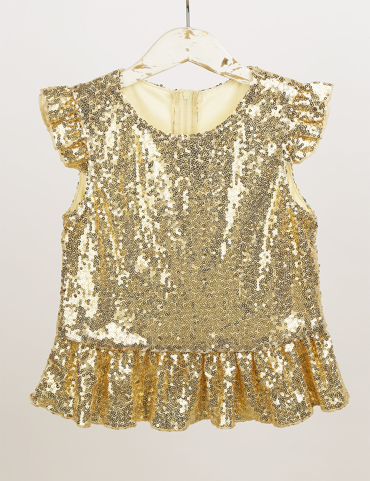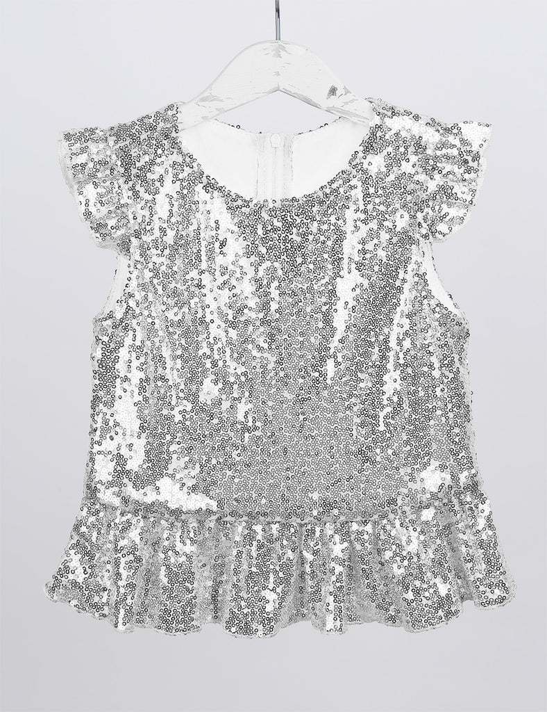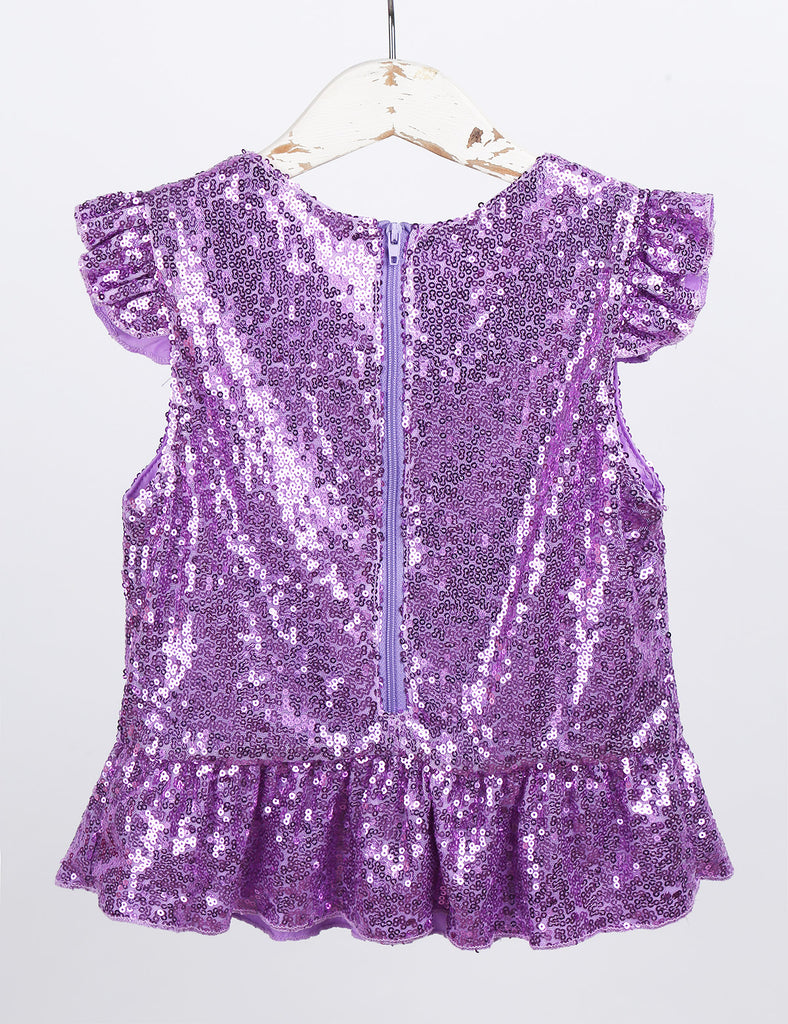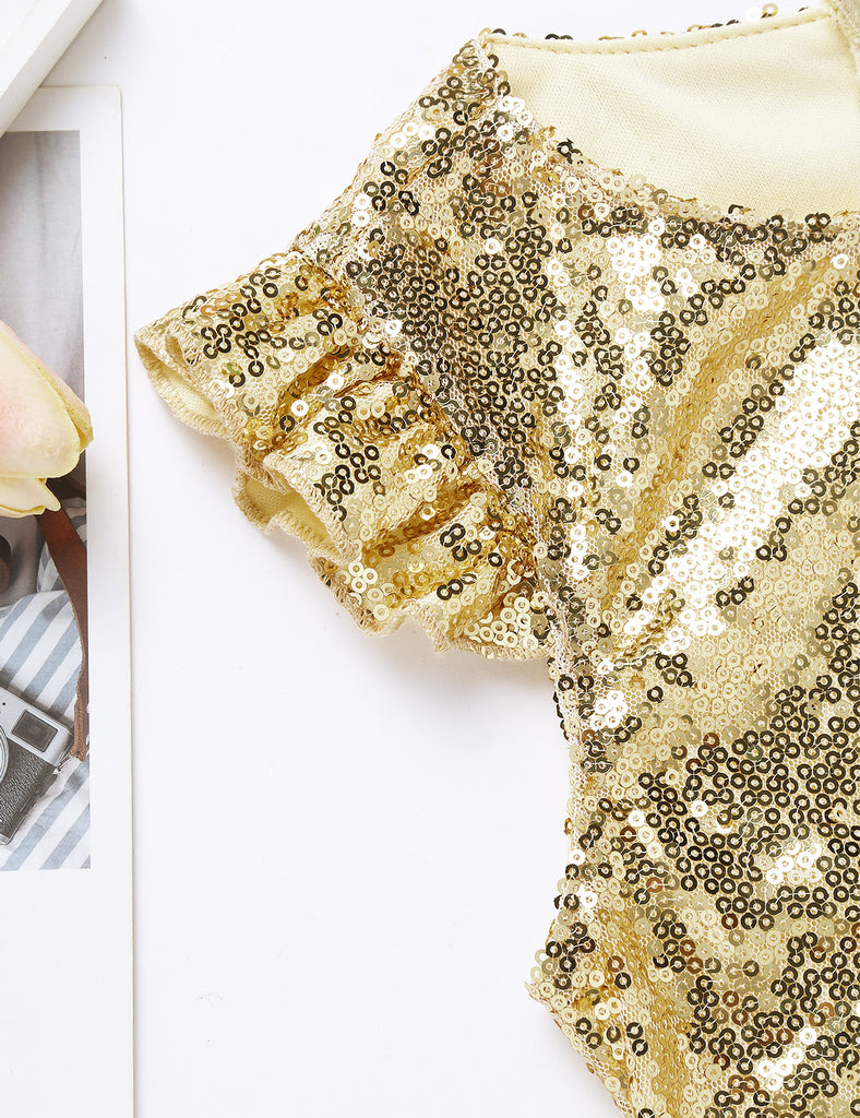 Girls Mermaid Sparkly Sequins Short Flutter Cap Sleeves Ruffle T-shirts Dance Performance Party Tops