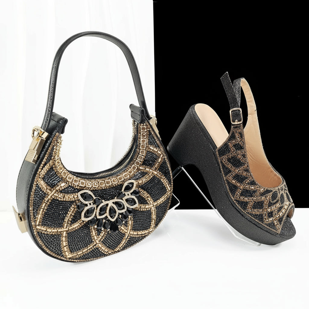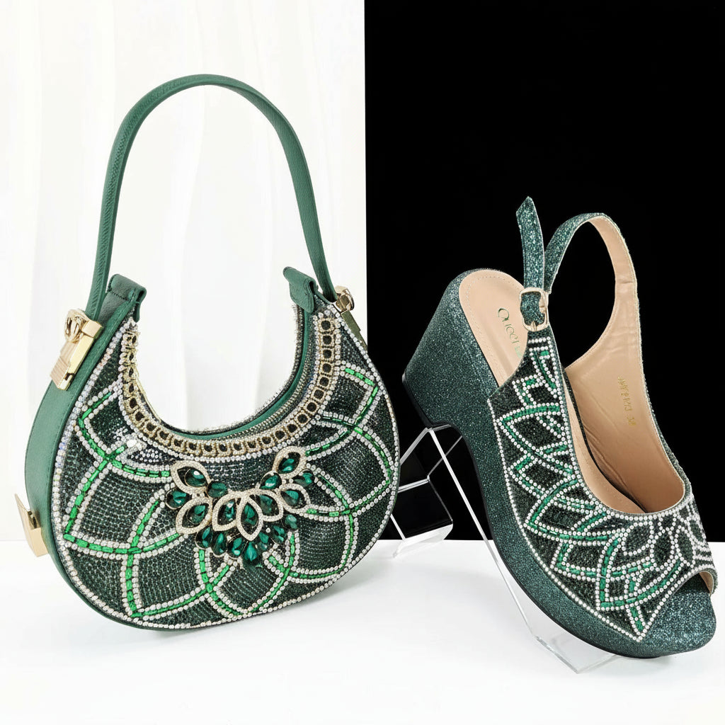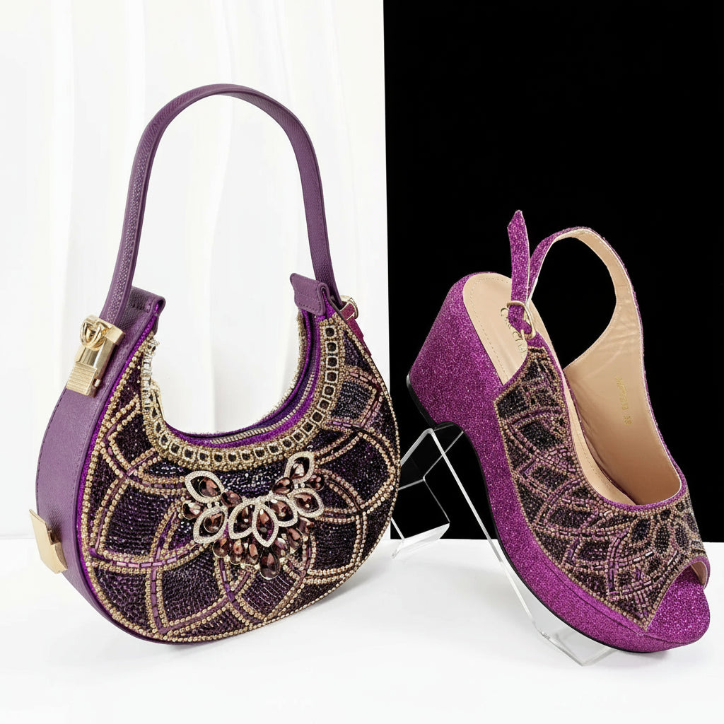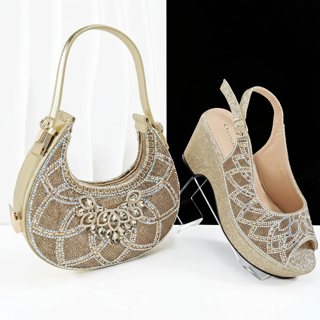 Patty's Peep Toe Shoes and Matching Bag Comfortable Party Shoes Platform Flats