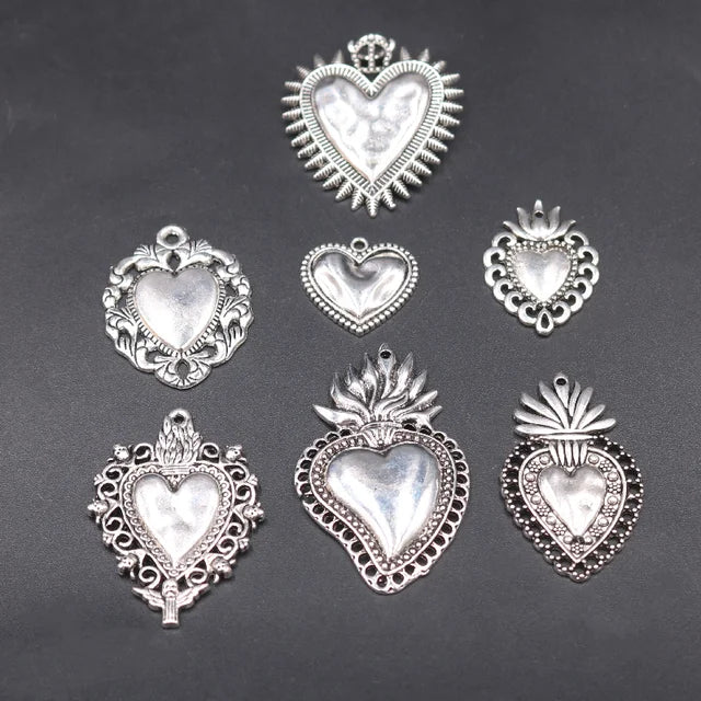 7pcs Mix Large Sacred Heart Amulet Pendants DIY Jewellery Making