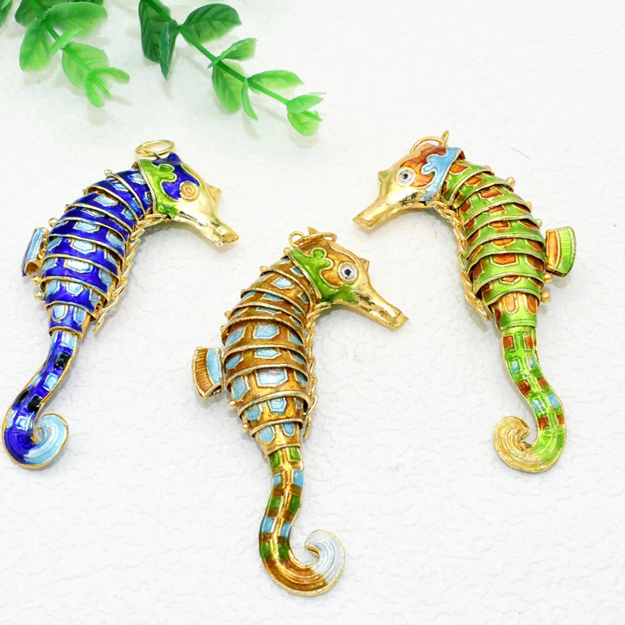 One Big 10cm Seahorse Cloisonné Enamel Movable Joint Pendant Charm DIY Jewellery Making