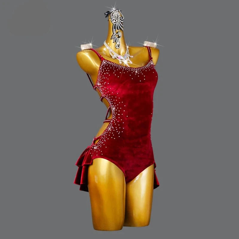 Red Velvet Latin Dance Dress Professional Cha-Cha Line Suit