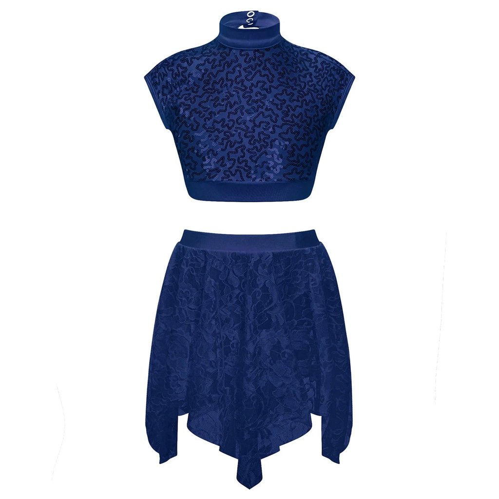Girls Dance One Shoulder Crop Top Wrap Tutu Skirt Set