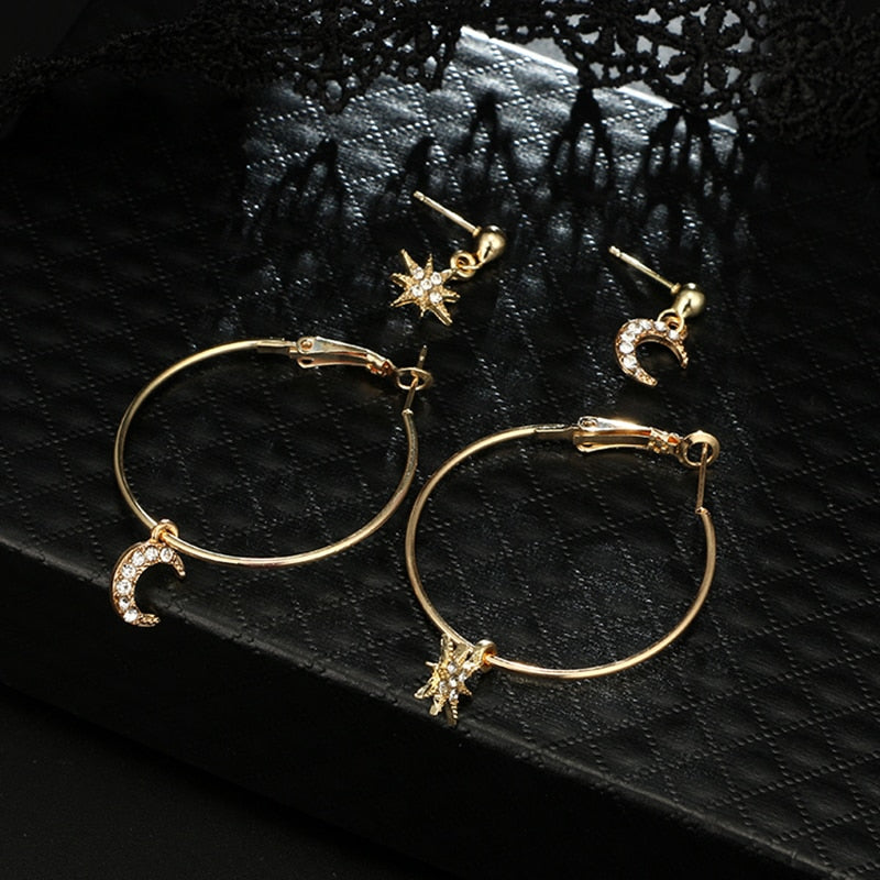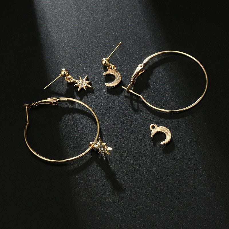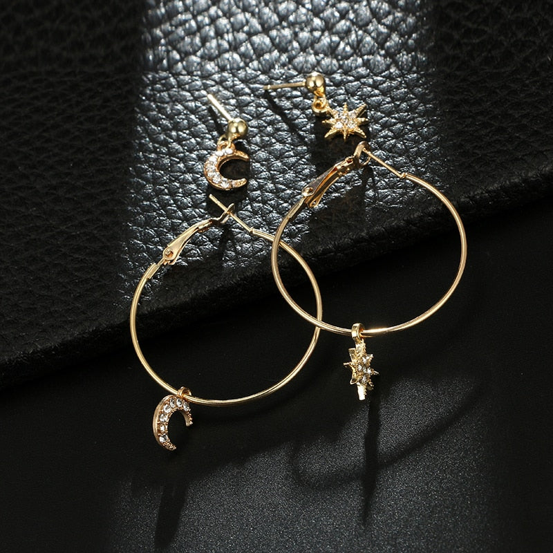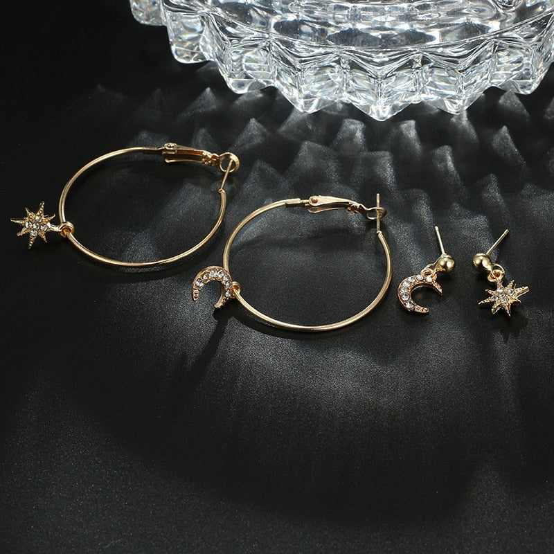 Set of Four Earrings - 2 Hoops, 2 Studs.