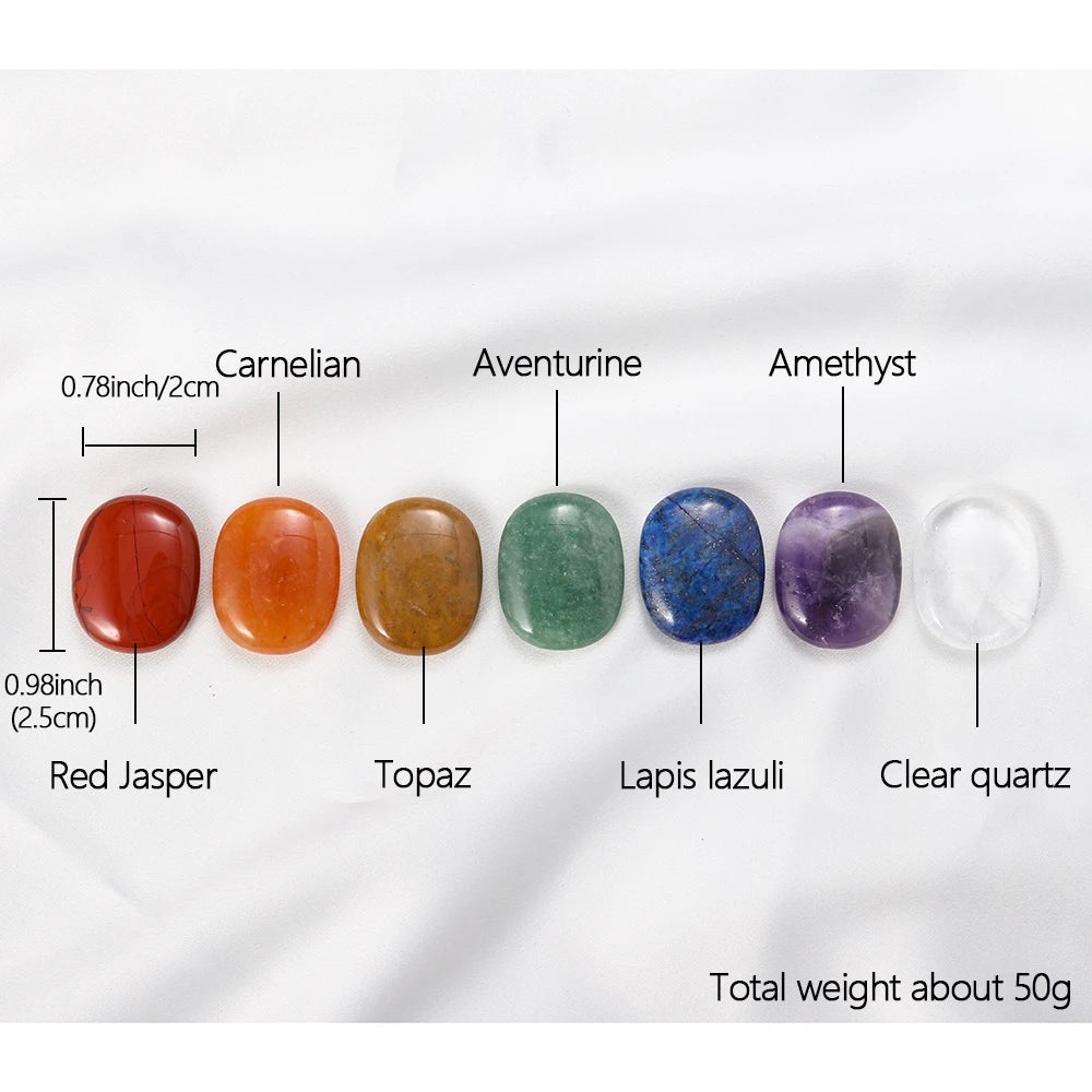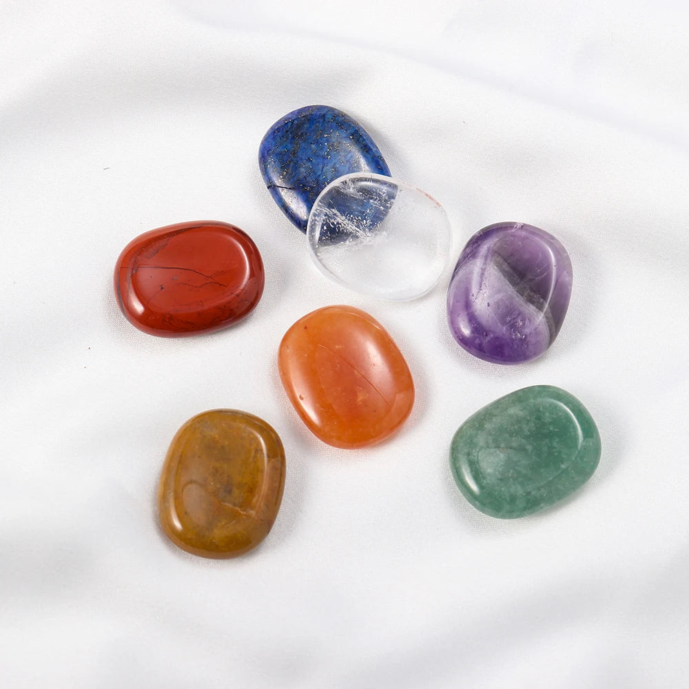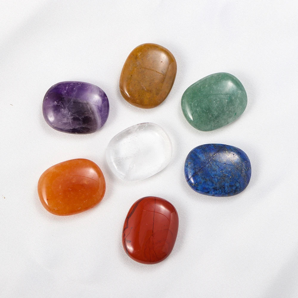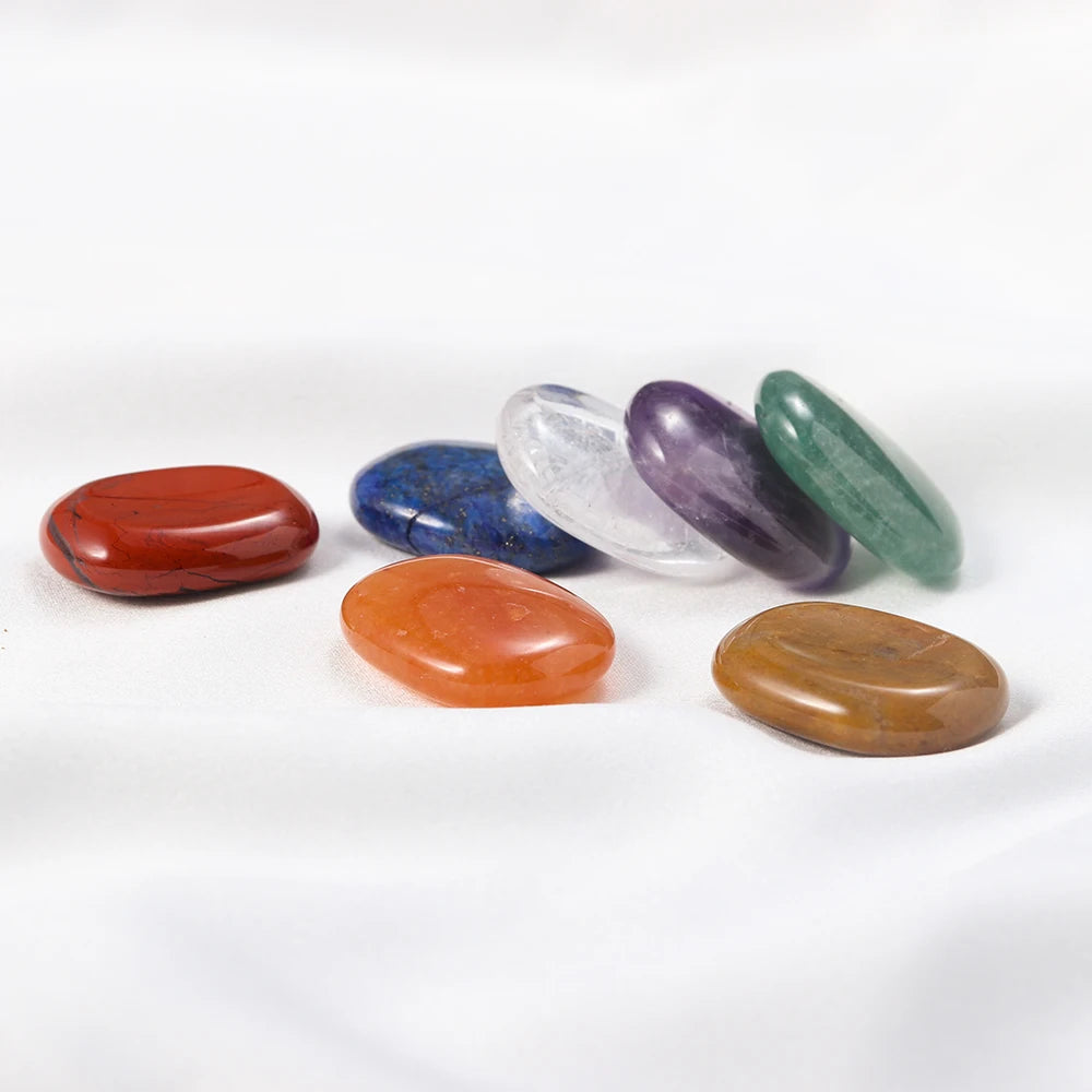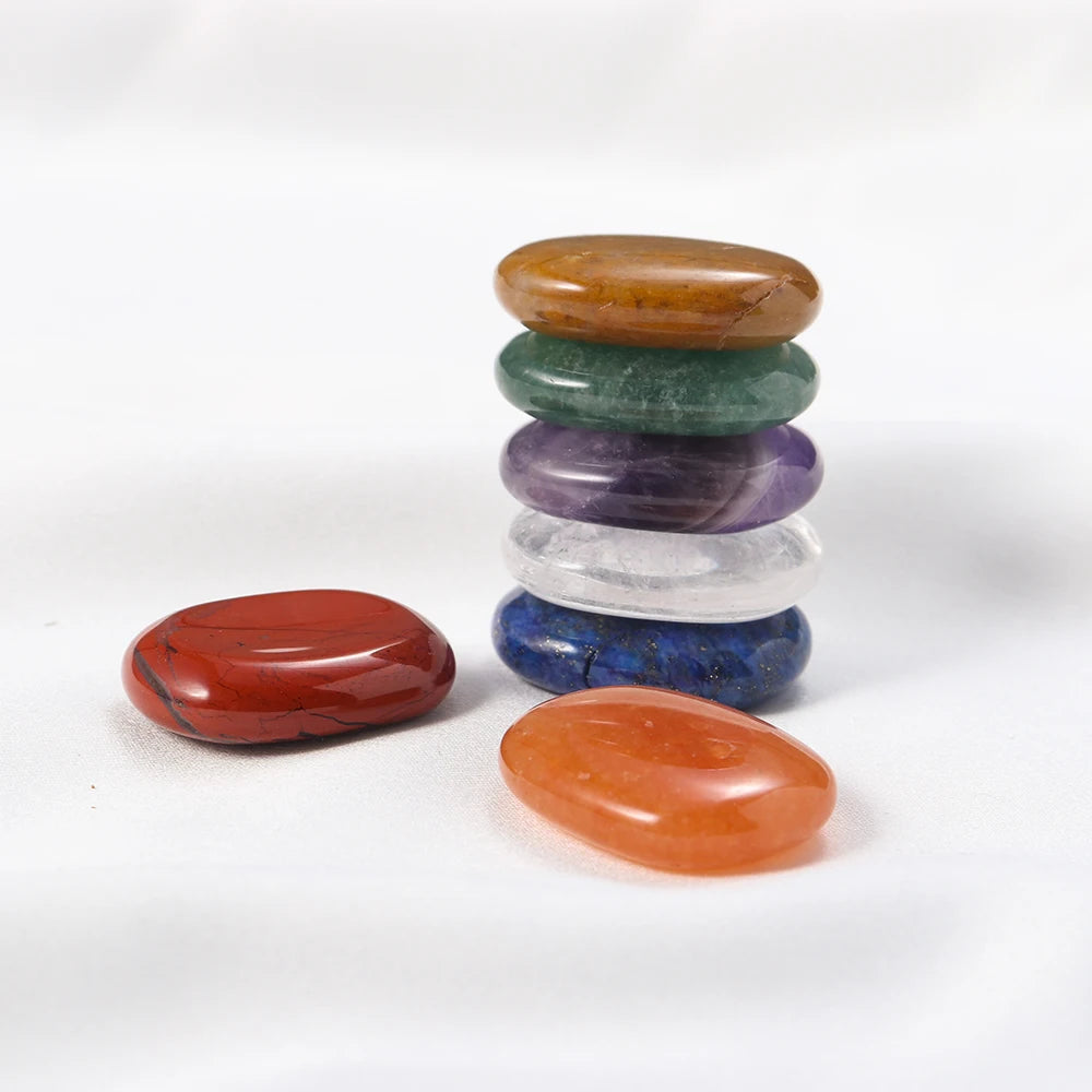 Natural Worry Stone Seven Chakra Thumb Crystal Set |