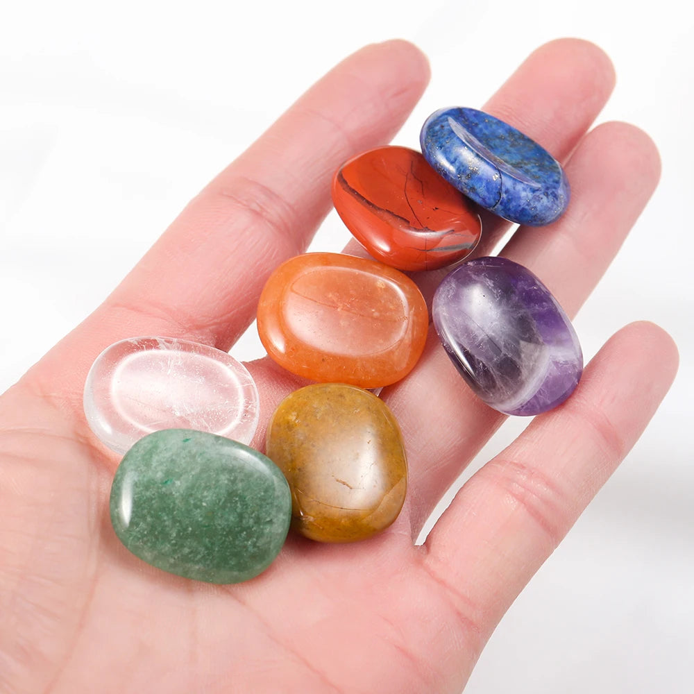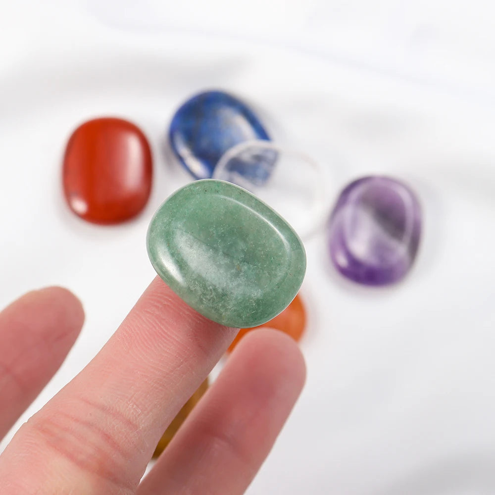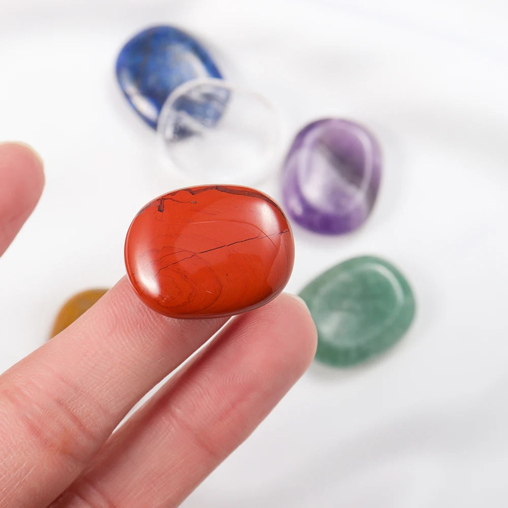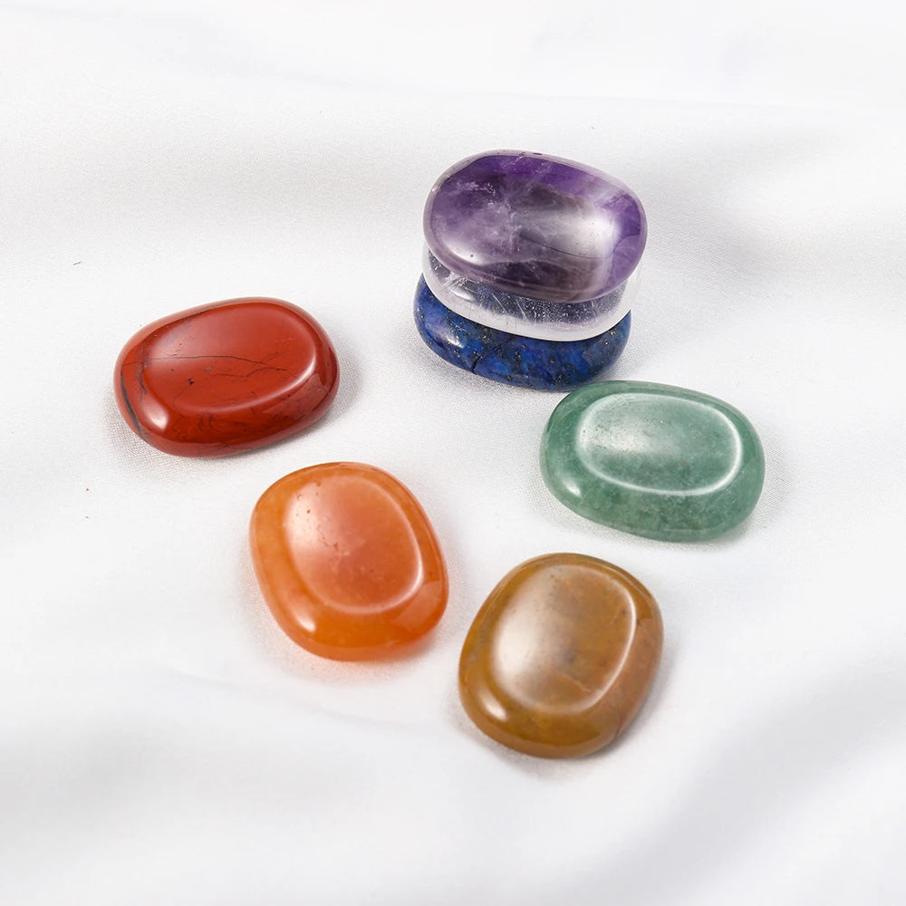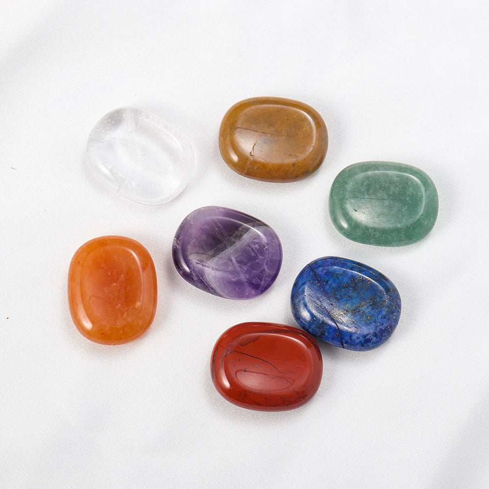 Natural Worry Stone Seven Chakra Thumb Crystal Set |