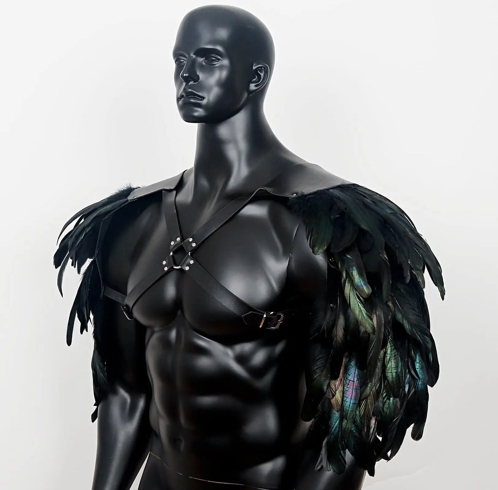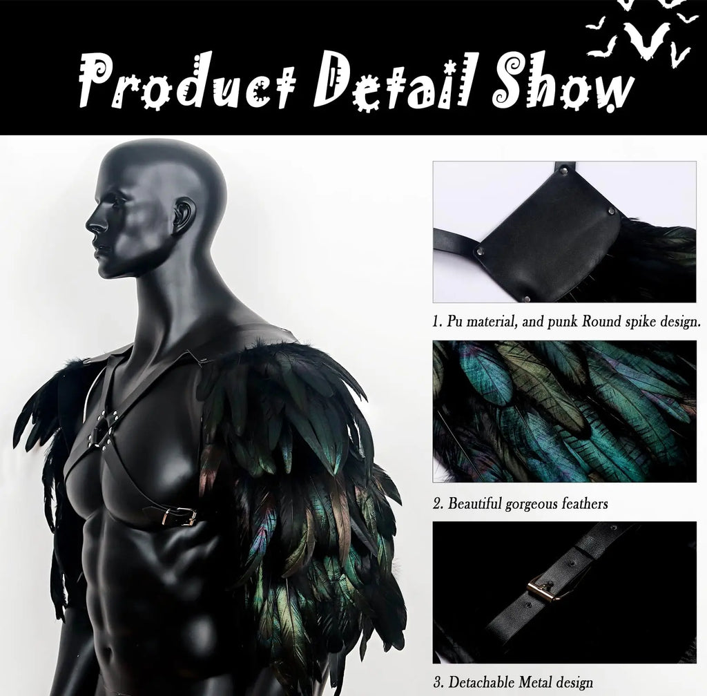 Feather Double Shoulder Armours Costume Guard Harness Halloween Cosplay
