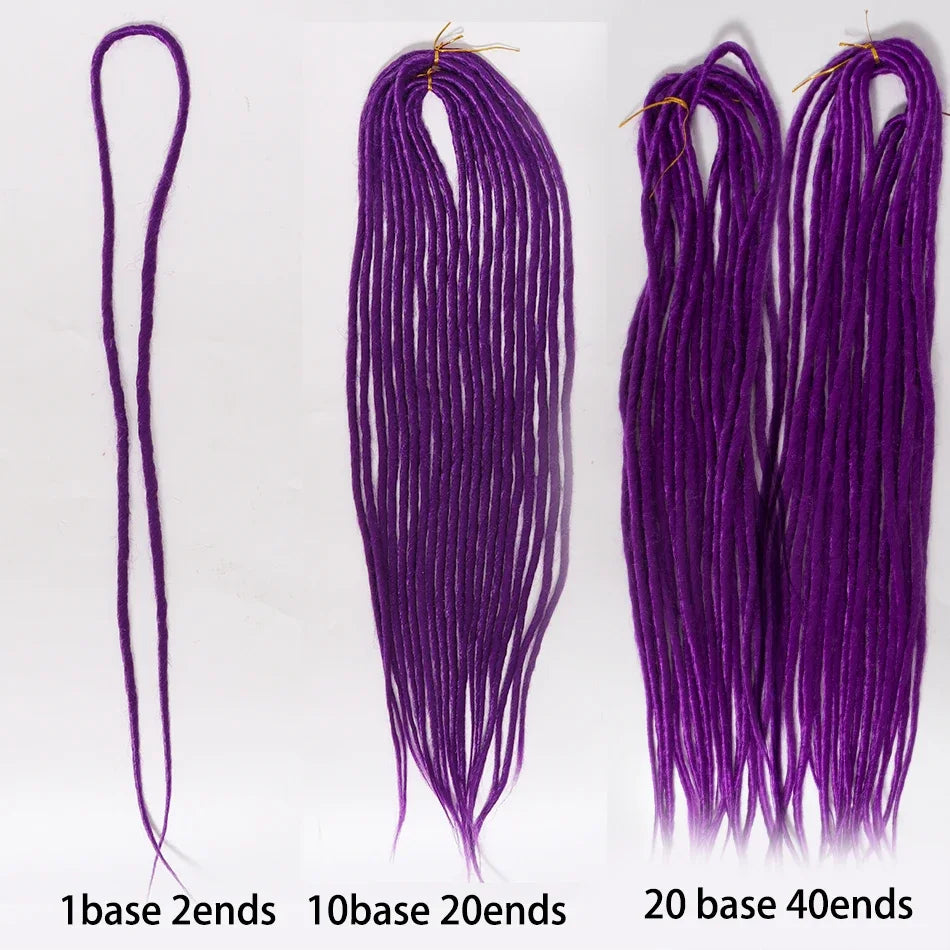 • 10x 11.5 inch double ended dreads is the same as 20x 23 inch single ended dreads.  The double ended just means it's folded over and you join it at the head in the middle, instead of one end.  The ends on these are not looped.