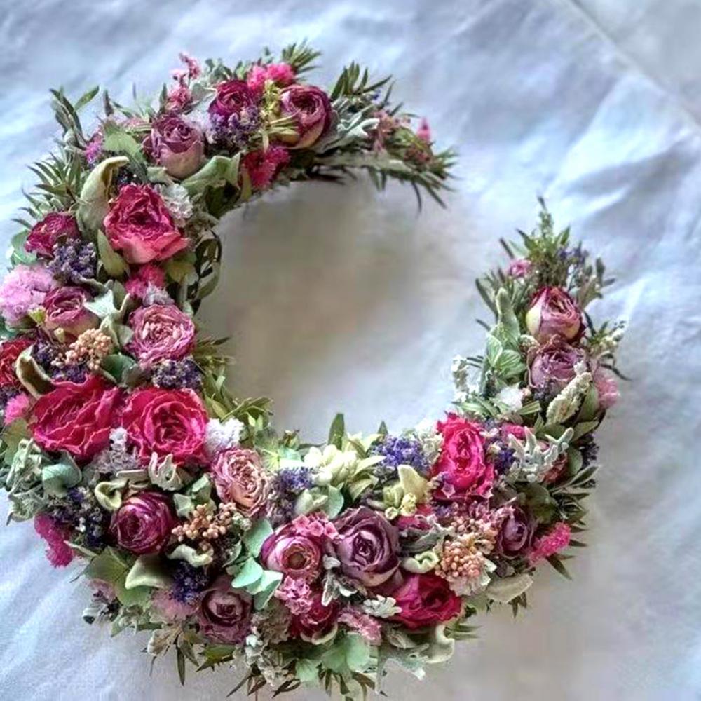Decorate your own crescent moon wreath. These are the rattan bases only. You can find faux plants and flowers here to add, or use fresh foliage and flowers or other decorative bits.